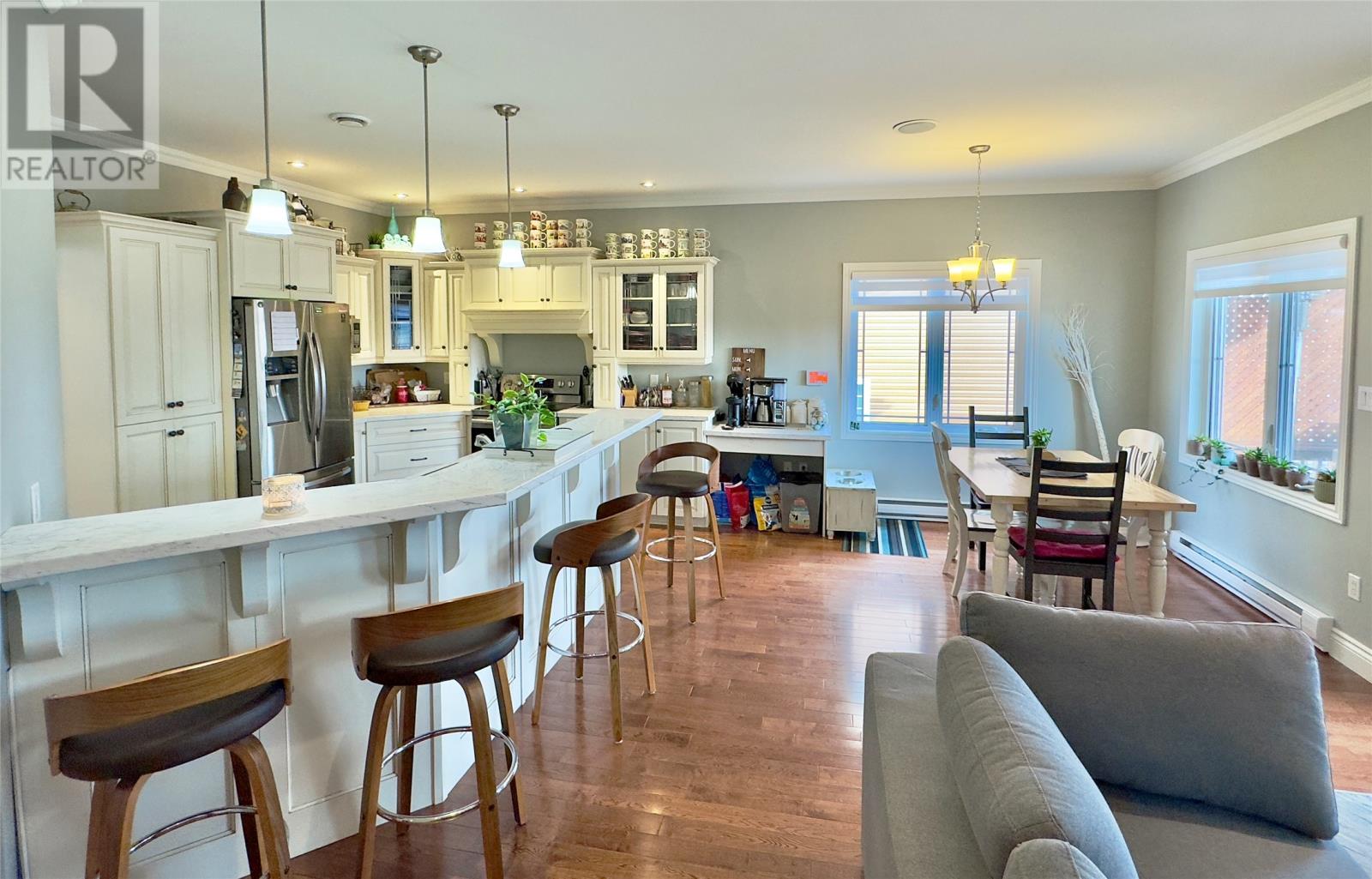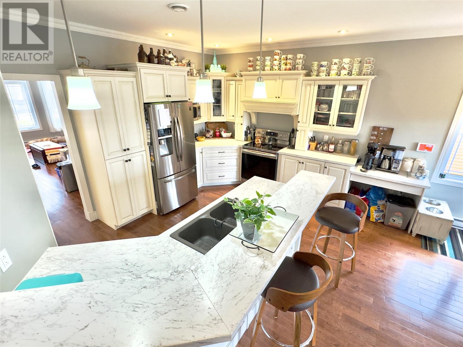 SPACIOUS EXECUTIVE STYLE HOME! Located in a highly sought-after area of Clarenville and just a few minutes’ walk to Clarenville High & Middle Schools, soccer field, stadium, and next door to all amenities! This home offers a double attached garage & partially covered back deck. The amazing layout leaves you wanting nothing as you enter through the impressive foyer, you will find a living/dining room combo to your left, move further along and you encounter the open concept kitchen, nook & family room with propane fireplace (access to back elevated deck). The kitchen features contemporary white cabinets, stainless steel appliances plus an eat up peninsula. The oversized primary bedroom boasts a great 4-piece ensuite & walk in closet while the remainder of the main floor consists of two other large bedrooms, main bathroom plus laundry/mud room. Do not forget the fully developed walk-out basement with its enormous rec room (fantastic for entertaining - room for pool or ping pong table), wet bar & sitting area (rec room also has a pellet stove). Throughout the remainder of the basement, you will find endless space and options - 2 additional bedrooms, a full bathroom, office (great for working from home), cold storage area and a number of utility/hobby/playrooms. Believe me, when I say this house has everything you would need and should be seen to be appreciated PLUS the bonus of a newly installed mini split system on the main floor! JUST ADDED - VENDOR OFFERS $10,000 DECORATING BONUS ON CLOSING (Can be used for painting, flooring, etc.). (id:9704)