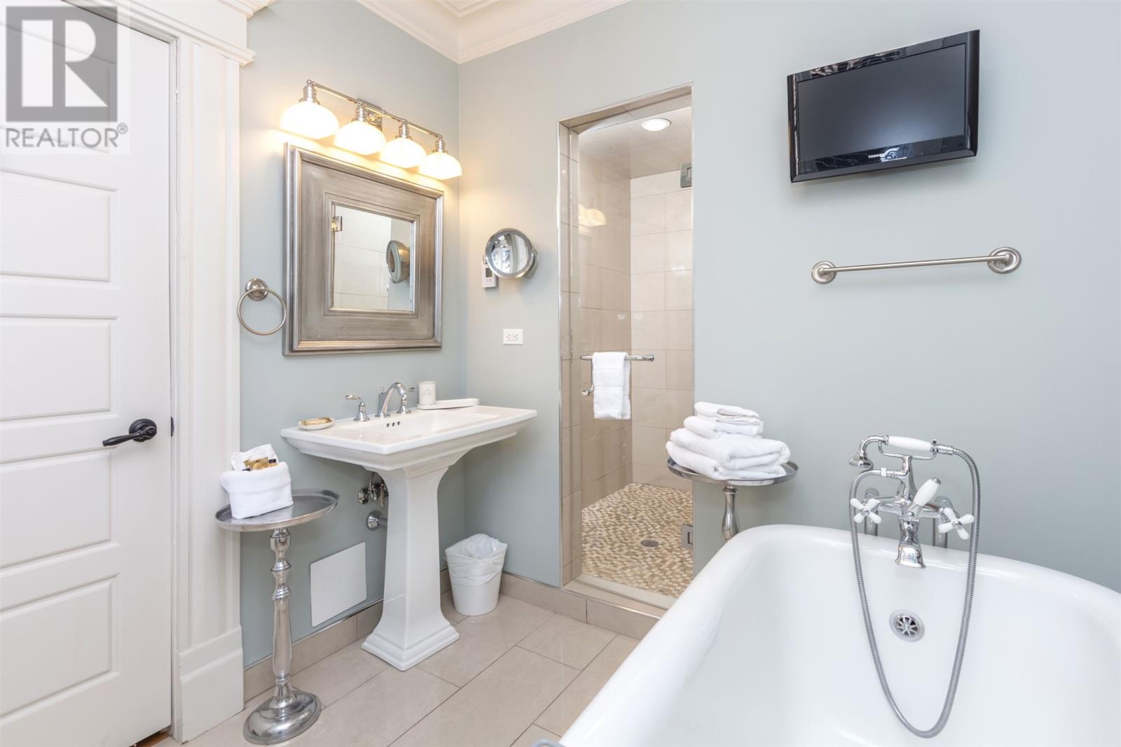 Steeped in history and elegance, 23 Rennies Mill Road is a rare gem in the heart of St. John’s, offering a blend of old-world charm and modern luxury. Nestled in the prestigious Rennies Mill Road historic district, this exquisite property is known for its architectural beauty, grand presence, and significant historical connections. King Charles once stayed here during his visit to Newfoundland, a testament to the home’s distinguished reputation. The property is currently being operated as Bannerman Park Suites, a boutique 8-suite guest house that was awarded the coveted 5-star Canada Select Rating in 2015 (one of the highest honours a Canadian Accommodation provider can receive). The property boasts spacious, meticulously designed executive suites that exude warmth and sophistication. Features include high ceilings, decorative fireplaces, spa-like bathrooms with heated marble floors, beautiful soaking tubs, large walk-in showers, and high-end kitchenettes. On-site laundry facilities are also available. Perfectly situated just steps from the scenic Bannerman Park’s outdoor public swimming pool and walking gardens, the property enjoys a serene setting while being mere moments from downtown St. John’s, where fine dining, galleries, boutique shopping, meeting venues, and cultural landmarks await. Guests and residents can take in the breathtaking views from Signal Hill, explore the historic streets, or visit attractions such as The Rooms or the Johnson GEO Centre. Whether envisioned as a continued luxury hospitality business or transformed into a grand private residence, this property offers an extraordinary opportunity to own a piece of Newfoundland’s rich heritage. Its combination of history, elegance, and prime location makes it one of the most sought-after addresses in the city. With its striking curb appeal, historical significance, and unmatched potential, 23 Rennies Mill Road is a legacy waiting to be embraced. (id:58149)