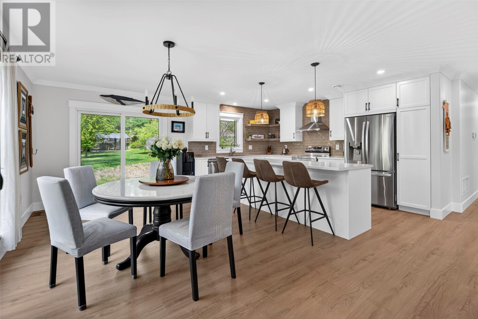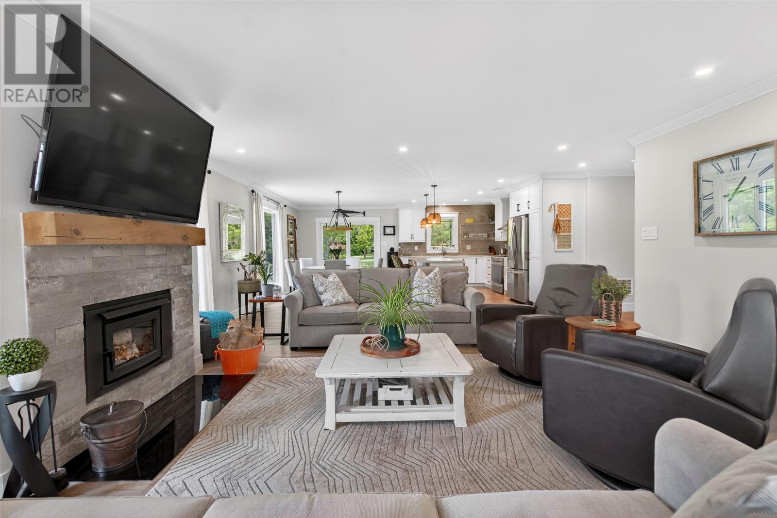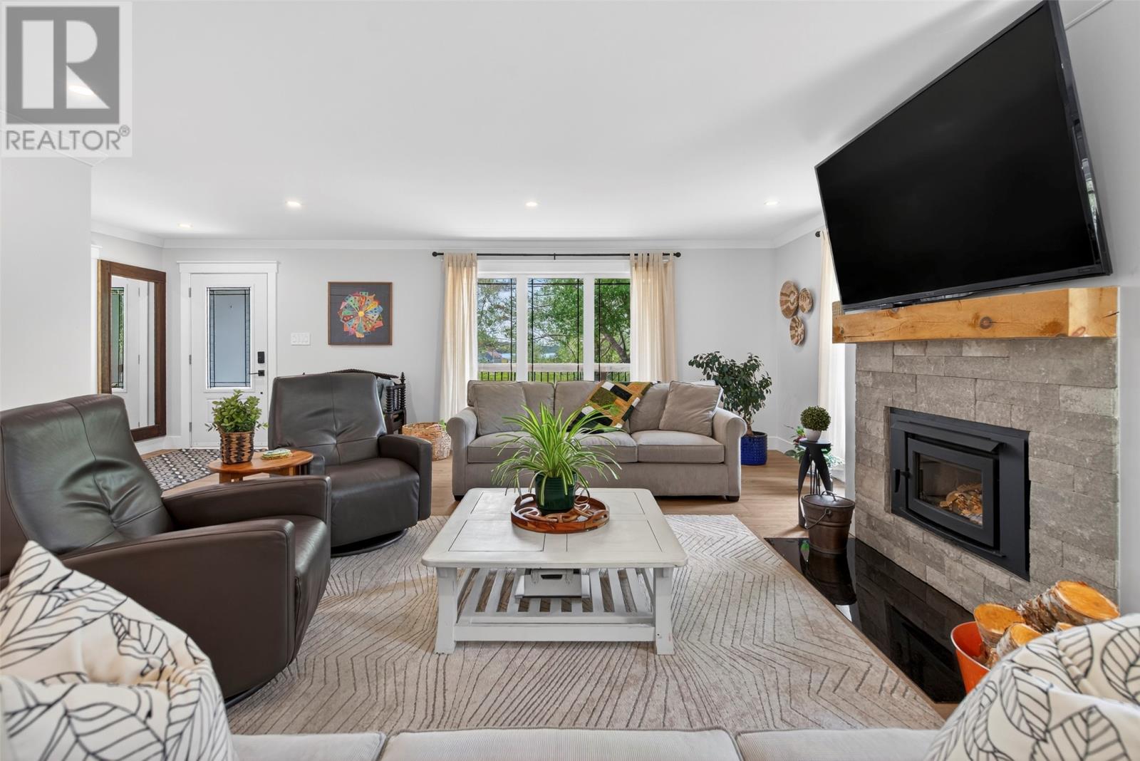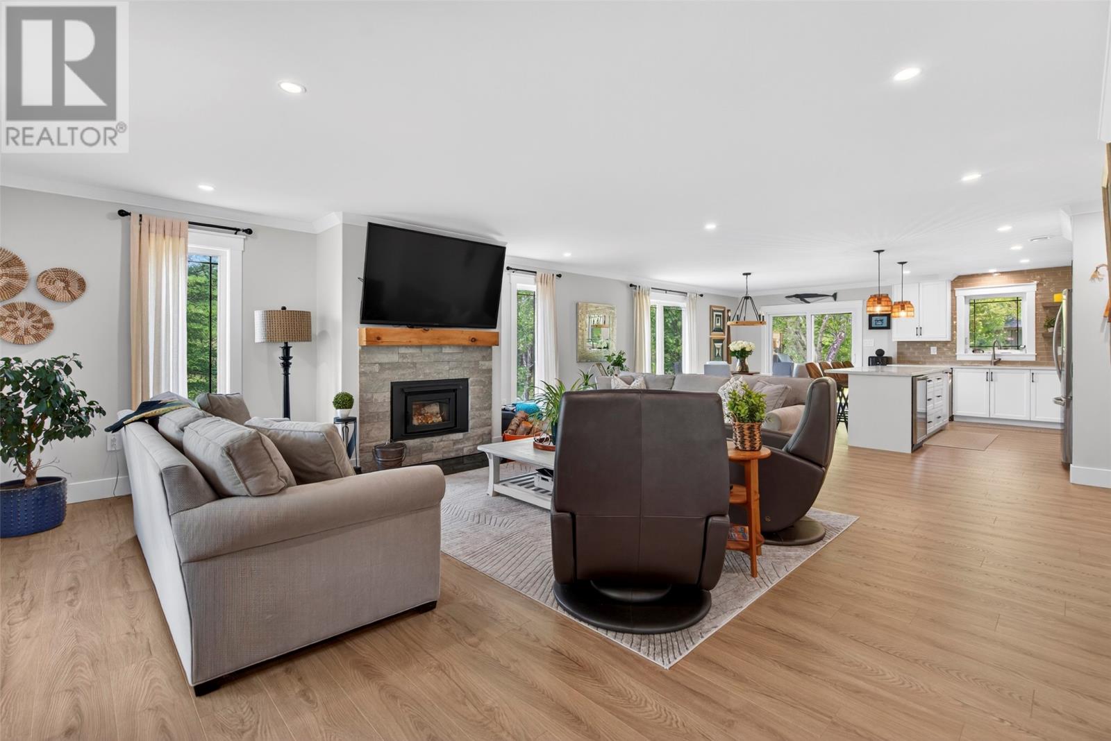 Nestled in a peaceful, park-like setting, this stunning three-bedroom bungalow blends modern design with comfortable, open-concept living. The spacious layout conveniently offers everything on one level, including a cozy living room with a wood burning fireplace and a stylish kitchen that flows effortlessly into the main living areas. The large primary suite is a true retreat, featuring private access to the back patio, a perfect place to relax as you sip your morning coffee, or to unwind at the end of the day. Enjoy outdoor living year-round with covered patios on both the front and rear of the home, while the attached garage ensures easy accessibility no matter the weather. This home is designed for comfort and convenience, featuring modern laminate flooring throughout for a sleek and stylish touch. A central heat pump provides efficient year-round climate control, keeping the space cozy in winter and cool in summer. The house is wired for a generator if you wish to add one in the future. For gardening enthusiasts, this property is a dream! It features two garden sheds for extra storage and a greenhouse perfect for nurturing plants year-round. Whether you`re tending to flowers or growing fresh produce, you`ll have the space and tools to bring your garden to life. For outdoor enthusiasts, nearby ATV trails offer endless opportunities for adventure, allowing you to explore the natural surroundings with ease. Plus, its prime location ensures you`re close to all amenities, making daily life effortless and enjoyable. (id:9704)