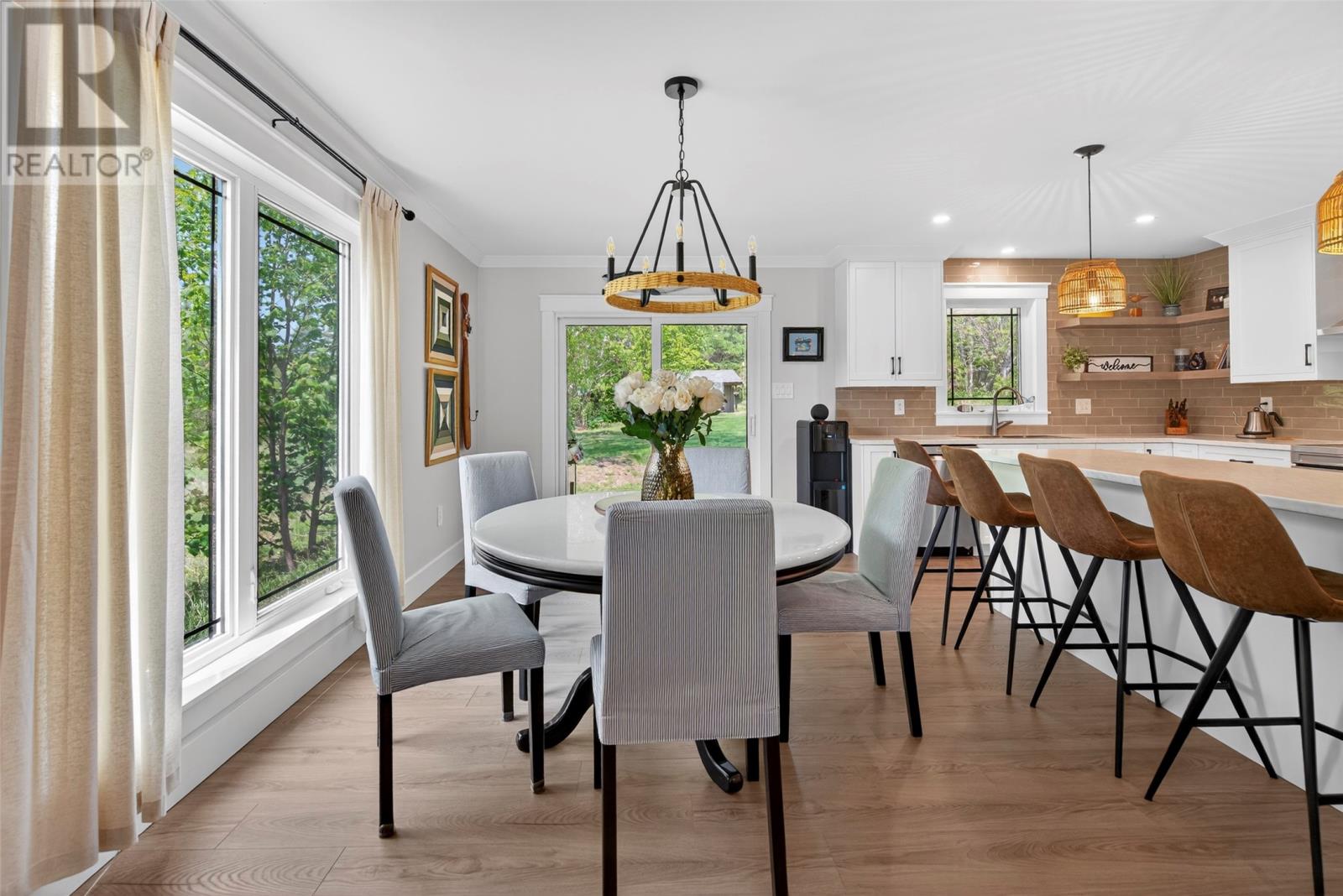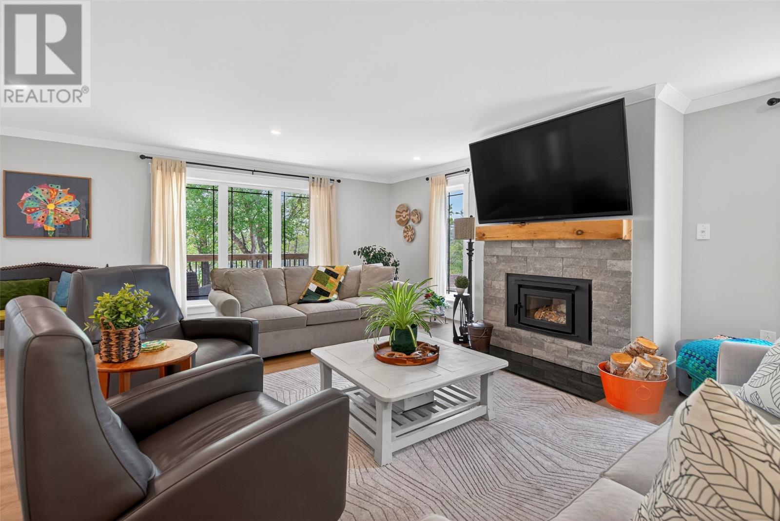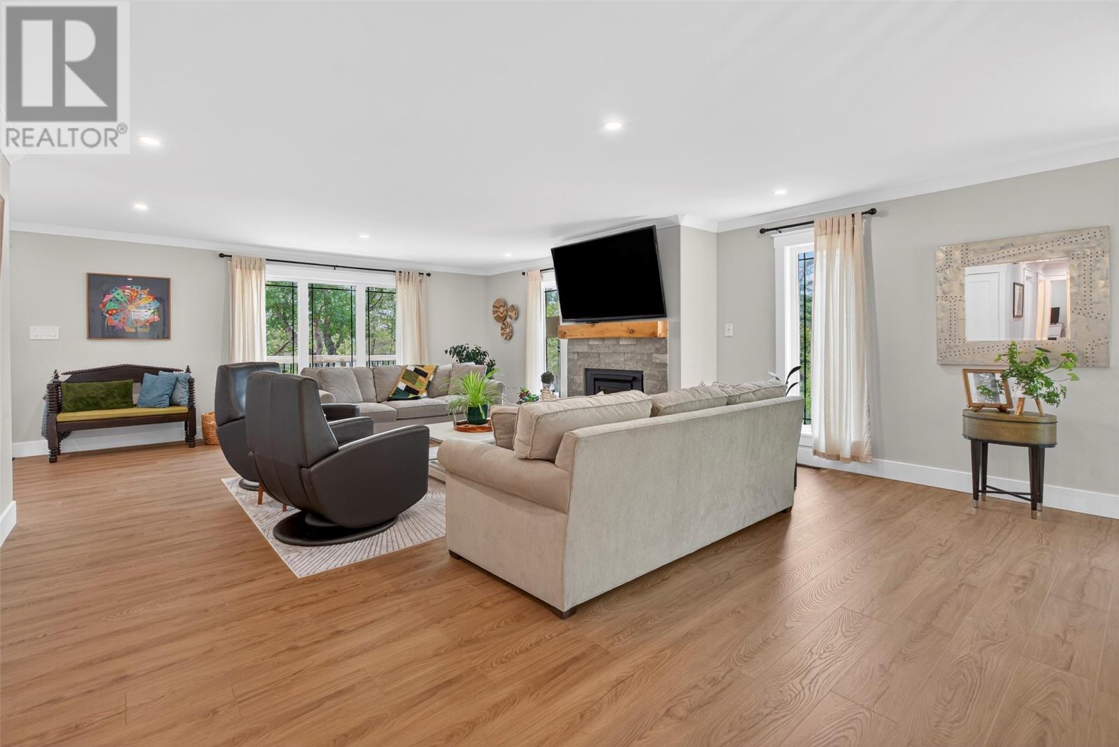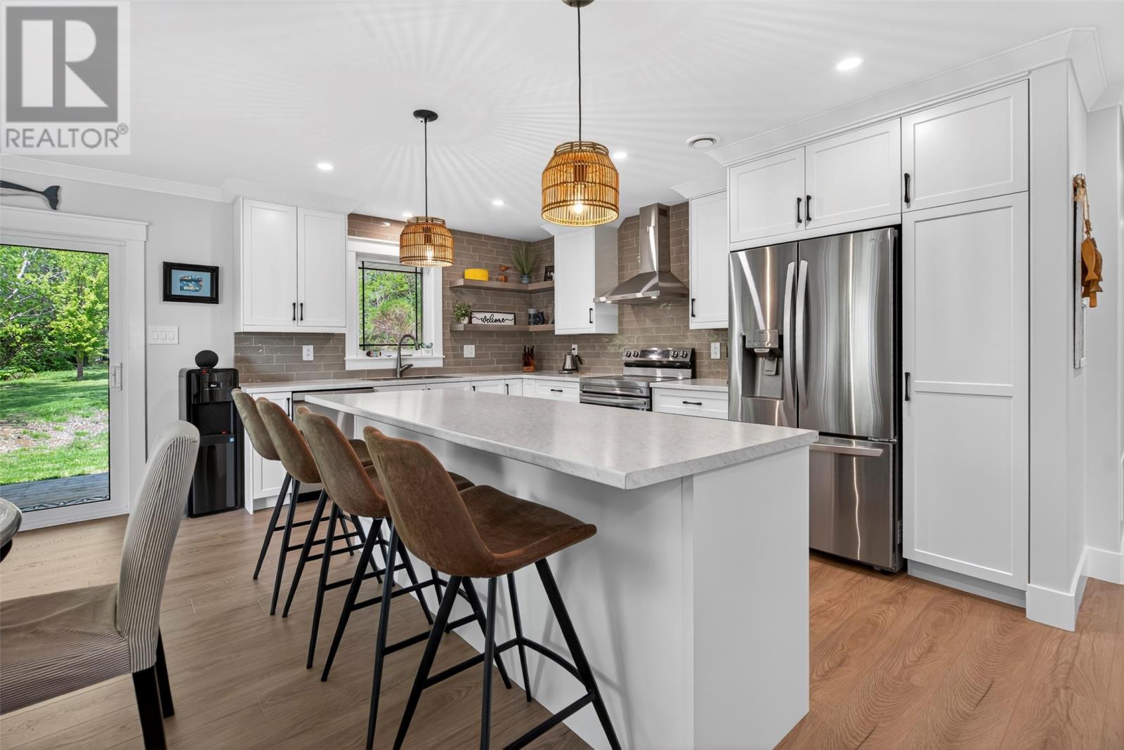 Nestled in a peaceful, park-like setting, this stunning three-bedroom bungalow blends modern design with comfortable, open-concept living. The spacious layout conveniently offers everything on one level, including a cozy living room with a wood burning fireplace and a stylish kitchen that flows effortlessly into the main living areas. The large primary suite is a true retreat, featuring private access to the back patio, a perfect place to relax as you sip your morning coffee, or to unwind at the end of the day. Enjoy outdoor living year-round with covered patios on both the front and rear of the home, while the attached garage ensures easy accessibility no matter the weather. This home is designed for comfort and convenience, featuring modern laminate flooring throughout for a sleek and stylish touch. A central heat pump provides efficient year-round climate control, keeping the space cozy in winter and cool in summer. The house is wired for a generator if you wish to add one in the future. For gardening enthusiasts, this property is a dream! It features two garden sheds for extra storage and a greenhouse perfect for nurturing plants year-round. Whether you`re tending to flowers or growing fresh produce, you`ll have the space and tools to bring your garden to life. For outdoor enthusiasts, nearby ATV trails offer endless opportunities for adventure, allowing you to explore the natural surroundings with ease. Plus, its prime location ensures you`re close to all amenities, making daily life effortless and enjoyable. (id:9704)