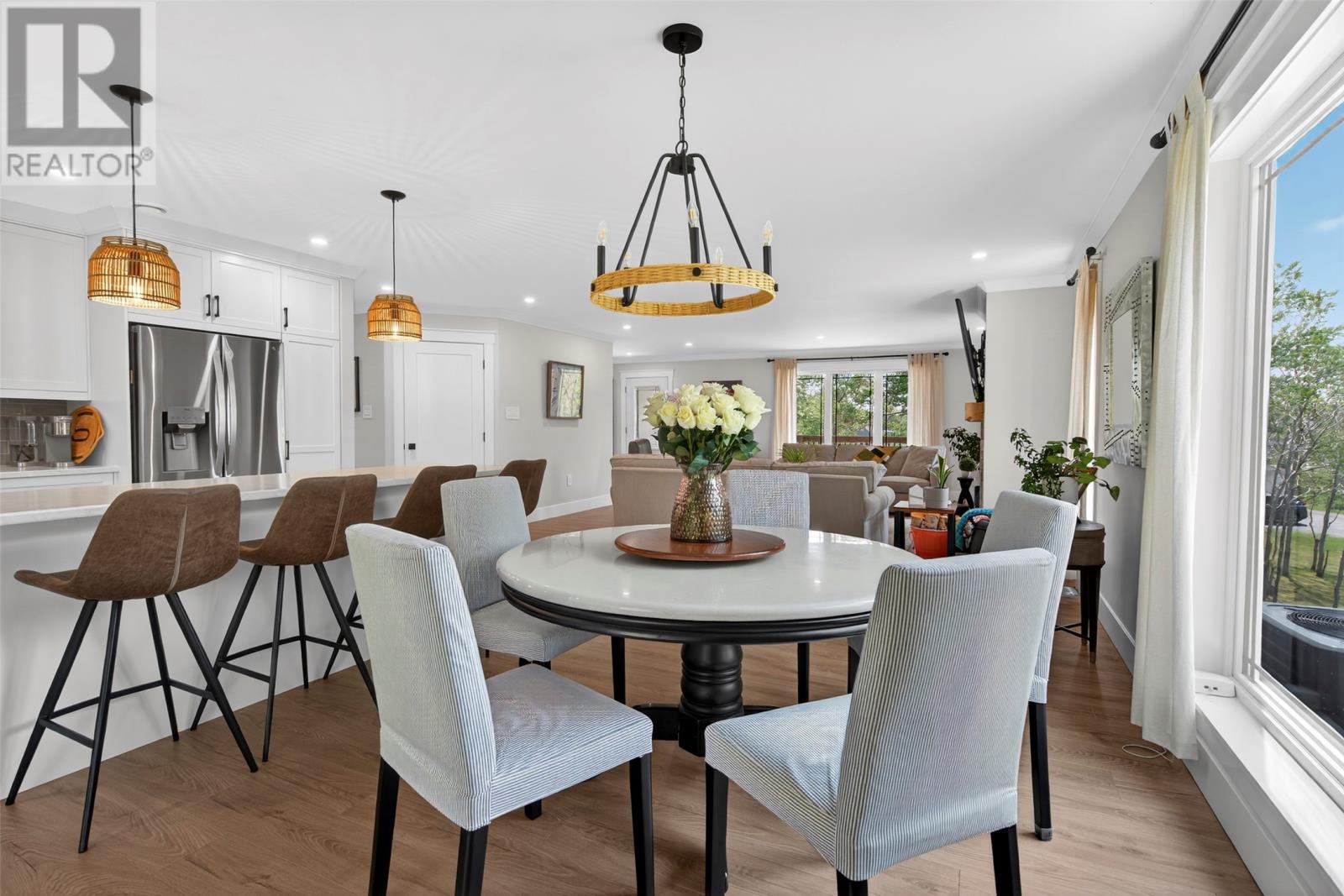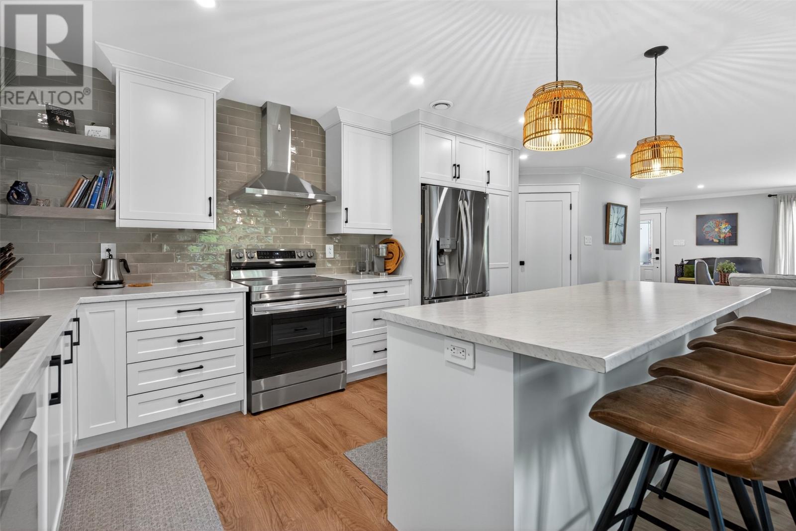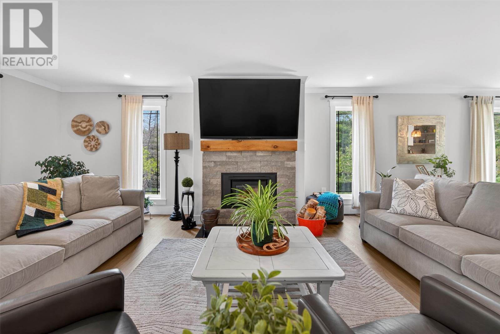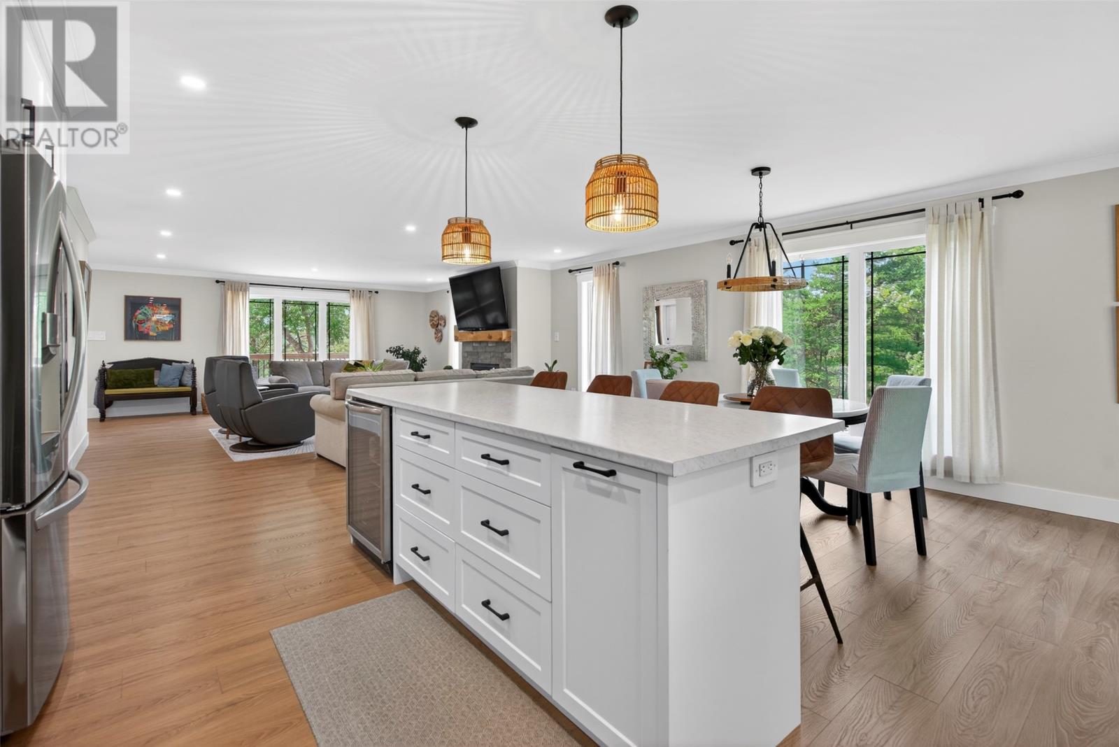 Nestled in a peaceful, park-like setting, this stunning three-bedroom bungalow blends modern design with comfortable, open-concept living. The spacious layout conveniently offers everything on one level, including a cozy living room with a wood burning fireplace and a stylish kitchen that flows effortlessly into the main living areas. The large primary suite is a true retreat, featuring private access to the back patio, a perfect place to relax as you sip your morning coffee, or to unwind at the end of the day. Enjoy outdoor living year-round with covered patios on both the front and rear of the home, while the attached garage ensures easy accessibility no matter the weather. This home is designed for comfort and convenience, featuring modern laminate flooring throughout for a sleek and stylish touch. A central heat pump provides efficient year-round climate control, keeping the space cozy in winter and cool in summer. The house is wired for a generator if you wish to add one in the future. For gardening enthusiasts, this property is a dream! It features two garden sheds for extra storage and a greenhouse perfect for nurturing plants year-round. Whether you`re tending to flowers or growing fresh produce, you`ll have the space and tools to bring your garden to life. For outdoor enthusiasts, nearby ATV trails offer endless opportunities for adventure, allowing you to explore the natural surroundings with ease. Plus, its prime location ensures you`re close to all amenities, making daily life effortless and enjoyable. (id:9704)