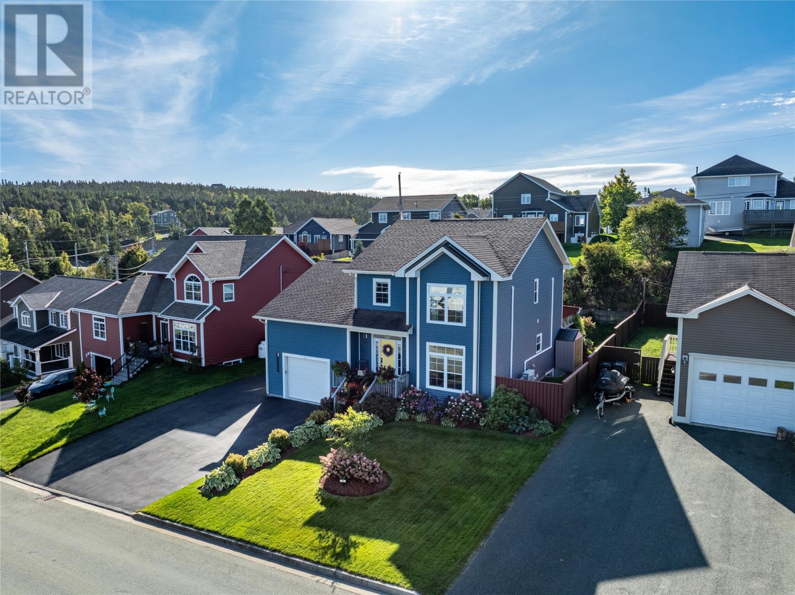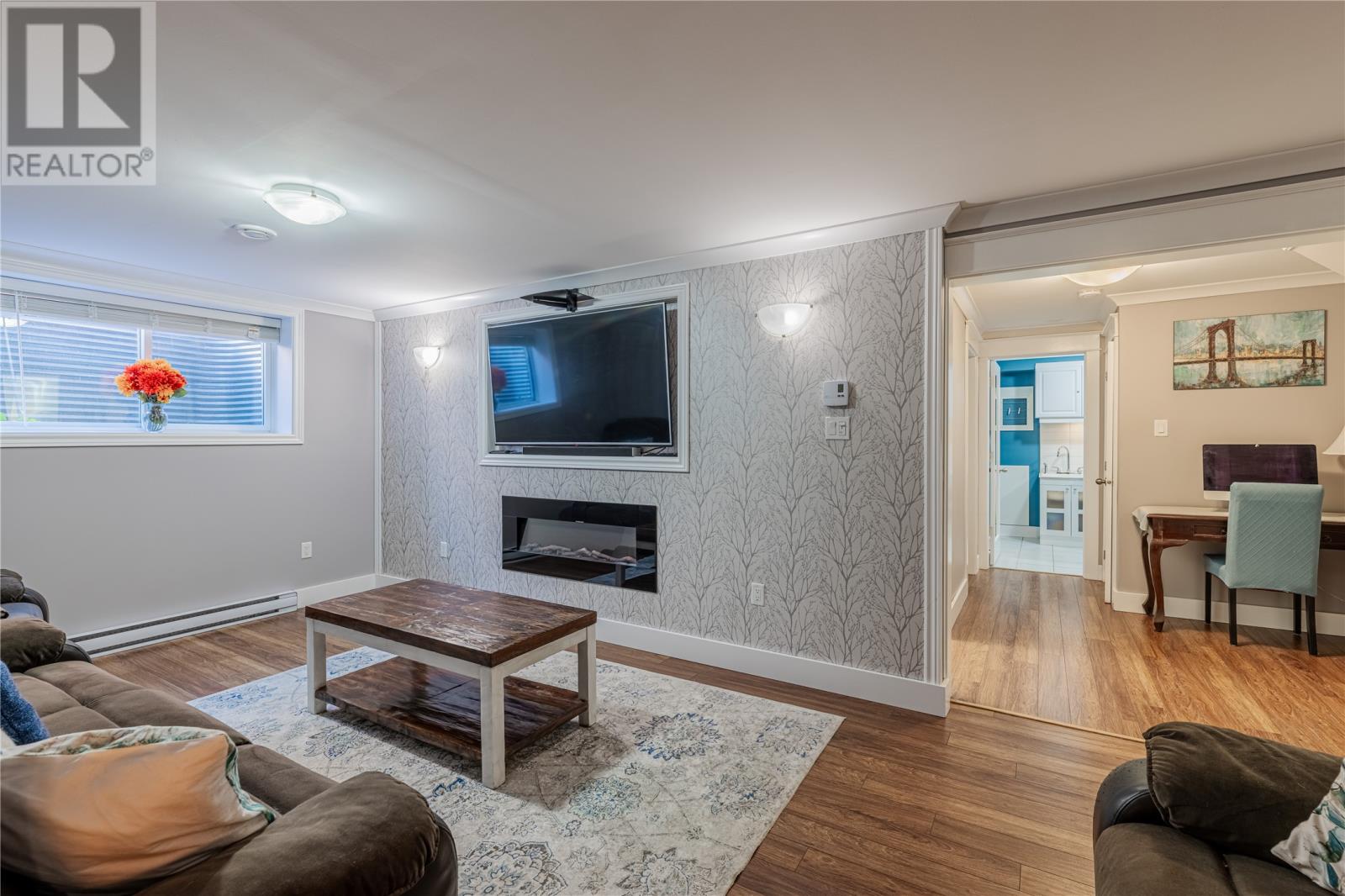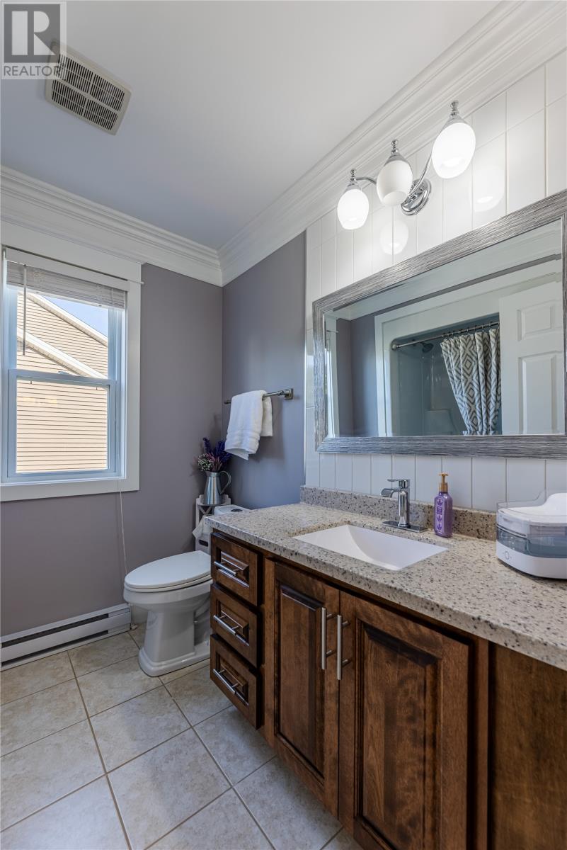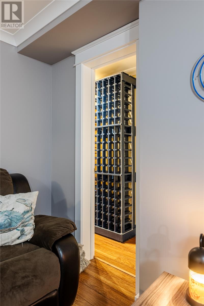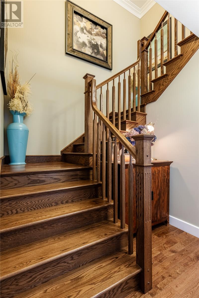 Pride of Ownership in Topsail â This beautifully maintained 5-bedroom, 3.5-bath home sits on a landscaped lot with plenty of curb appeal. The main floor features 9 ft ceilings, a welcoming porch, spacious dining room, half bath, and an open-concept kitchen with pantry (plus bar fridge), eating area, and living room with propane fireplace and custom shelving. Upstairs youâll find two large bedrooms, a main bath, and a bright primary suite with walk-in closet and ensuite.18 x 20 attached garage with fully developed basement with family room with electric fireplace, laundry, full bath, and two additional bedrooms. Extras include hardwood stairs, custom cove mouldings, wine cellar, and 3 mini-splits. The fenced backyard is a showstopper with two enclosed patio areas (one with hot tub), storage shed, and a large paved driveway for extra parking. Don`t miss out on this one! (id:9704)