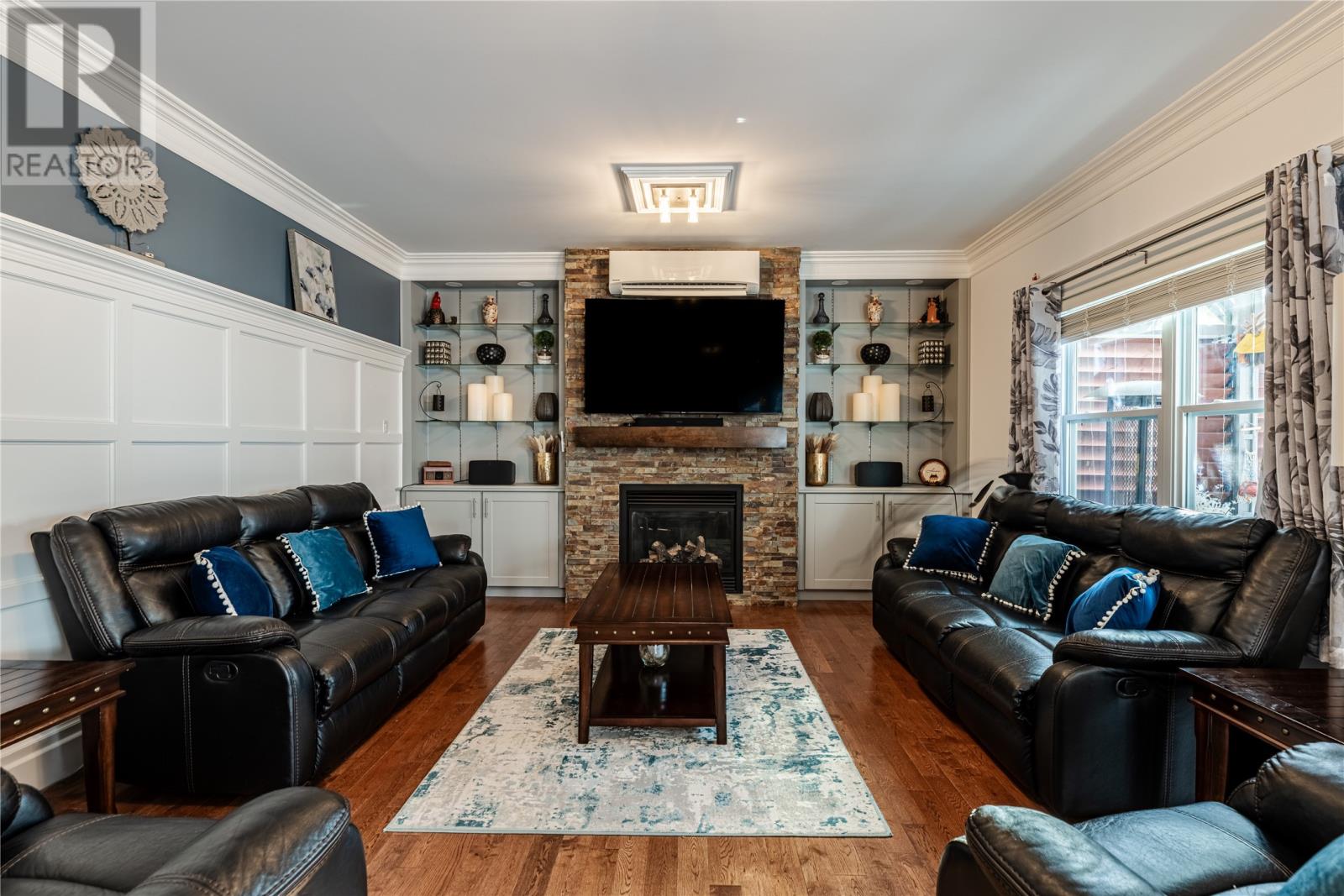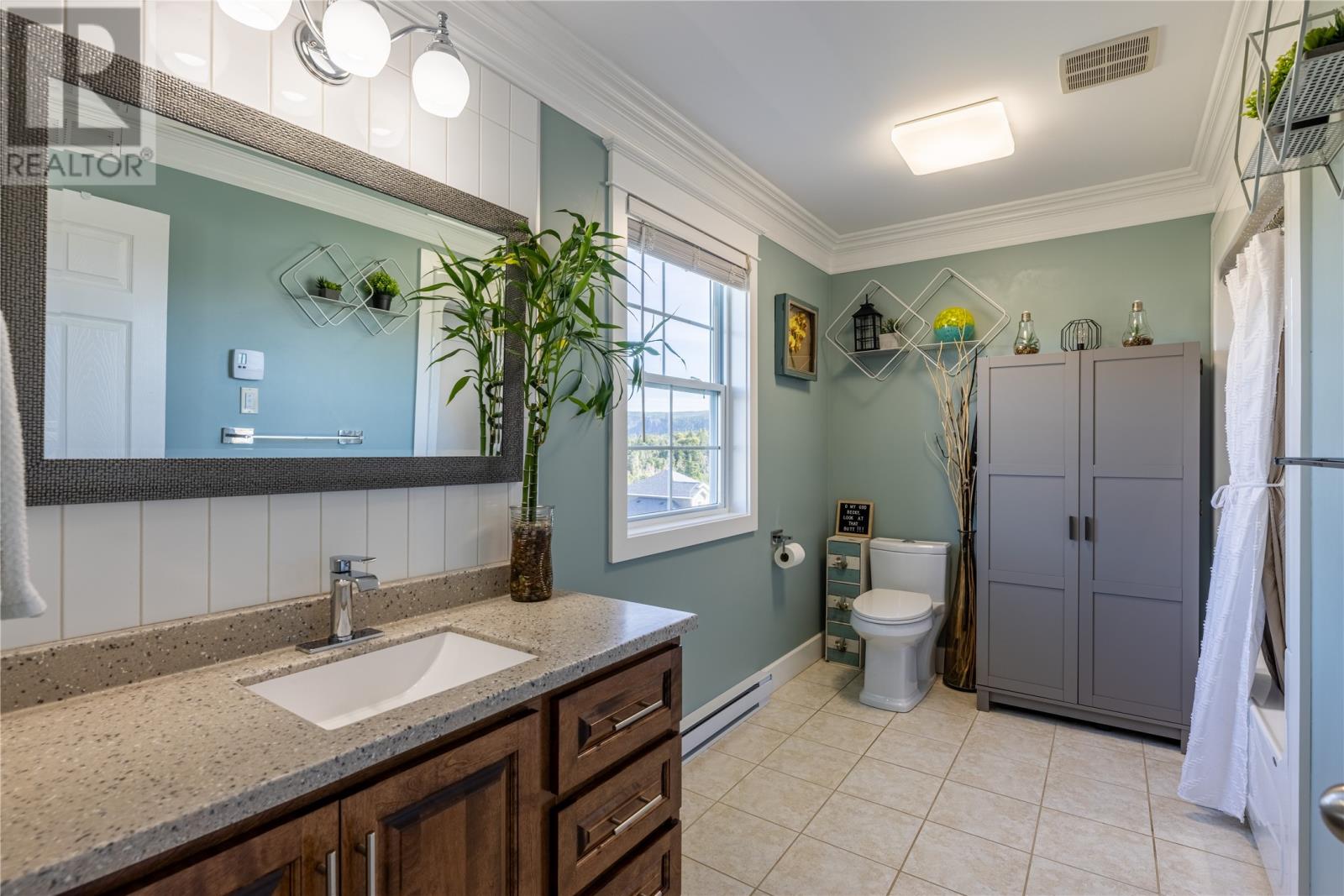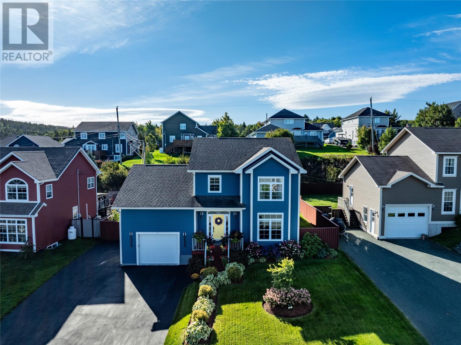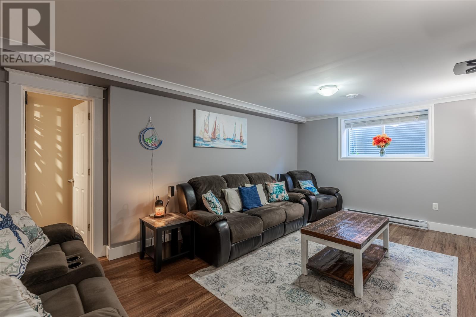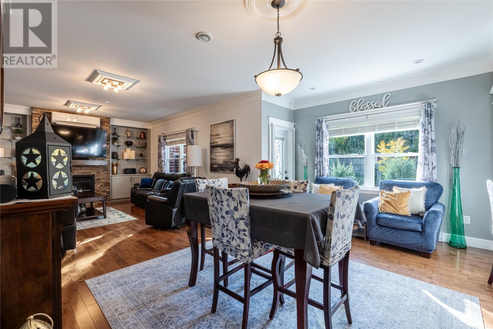 Pride of Ownership in Topsail â This beautifully maintained 5-bedroom, 3.5-bath home sits on a landscaped lot with plenty of curb appeal. The main floor features 9 ft ceilings, a welcoming porch, spacious dining room, half bath, and an open-concept kitchen with pantry (plus bar fridge), eating area, and living room with propane fireplace and custom shelving. Upstairs youâll find two large bedrooms, a main bath, and a bright primary suite with walk-in closet and ensuite.18 x 20 attached garage with fully developed basement with family room with electric fireplace, laundry, full bath, and two additional bedrooms. Extras include hardwood stairs, custom cove mouldings, wine cellar, and 3 mini-splits. The fenced backyard is a showstopper with two enclosed patio areas (one with hot tub), storage shed, and a large paved driveway for extra parking. Don`t miss out on this one! (id:9704)