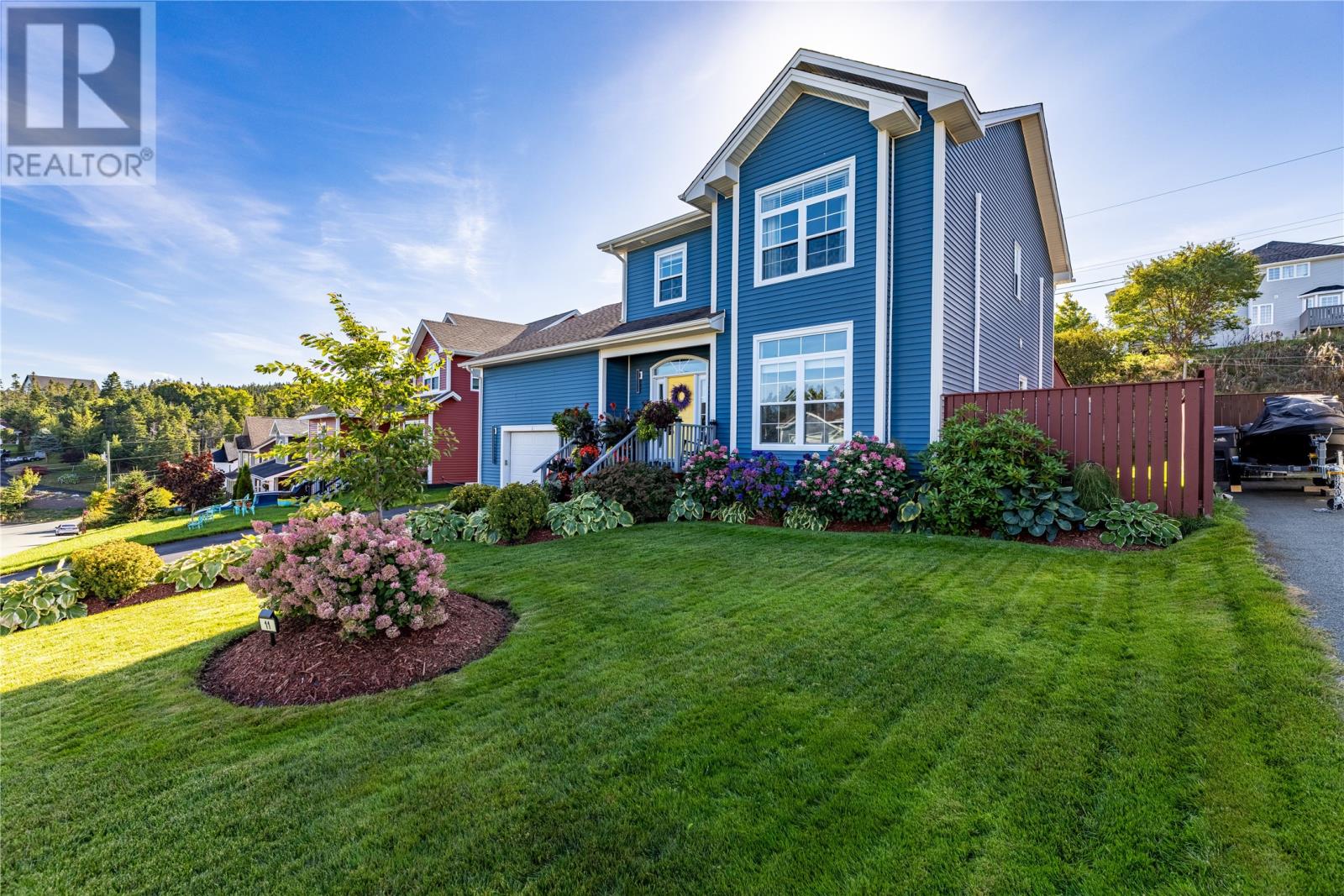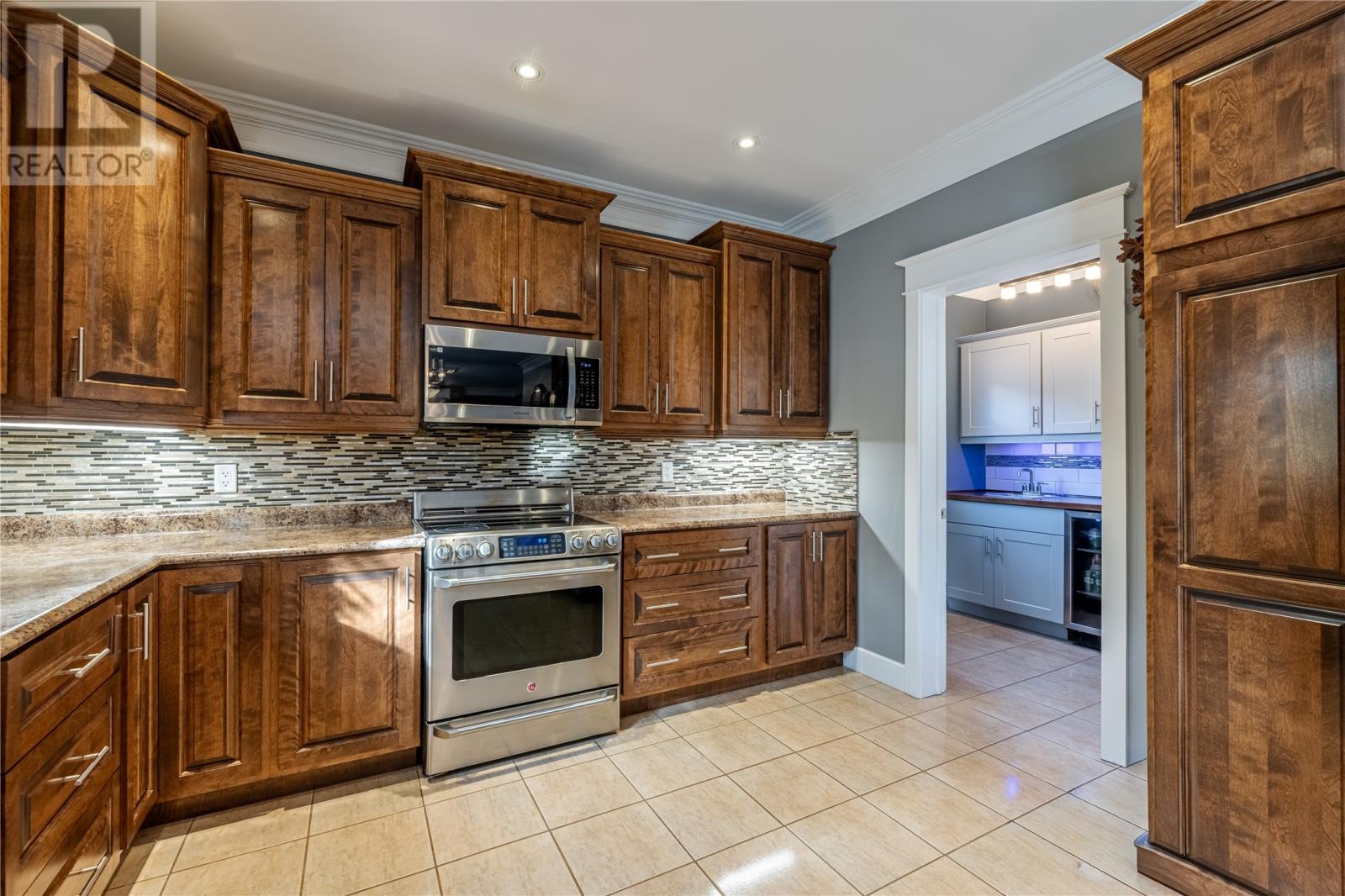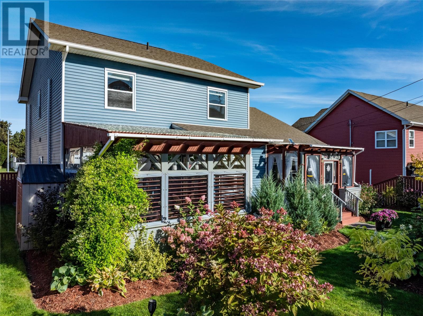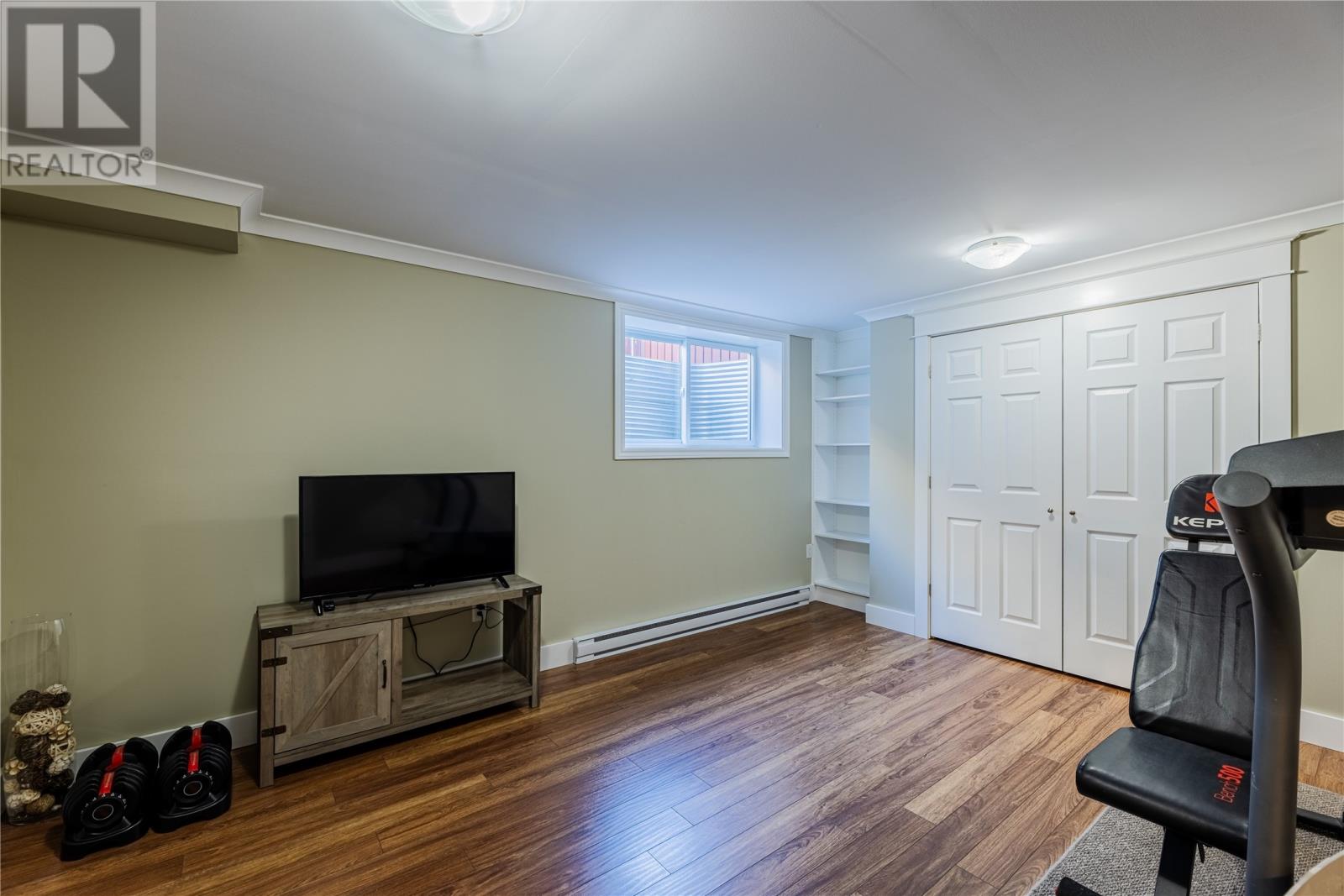 Pride of Ownership in Topsail â This beautifully maintained 5-bedroom, 3.5-bath home sits on a landscaped lot with plenty of curb appeal. The main floor features 9 ft ceilings, a welcoming porch, spacious dining room, half bath, and an open-concept kitchen with pantry (plus bar fridge), eating area, and living room with propane fireplace and custom shelving. Upstairs youâll find two large bedrooms, a main bath, and a bright primary suite with walk-in closet and ensuite.18 x 20 attached garage with fully developed basement with family room with electric fireplace, laundry, full bath, and two additional bedrooms. Extras include hardwood stairs, custom cove mouldings, wine cellar, and 3 mini-splits. The fenced backyard is a showstopper with two enclosed patio areas (one with hot tub), storage shed, and a large paved driveway for extra parking. Don`t miss out on this one! (id:9704)