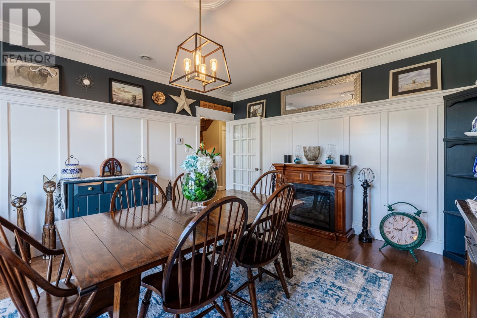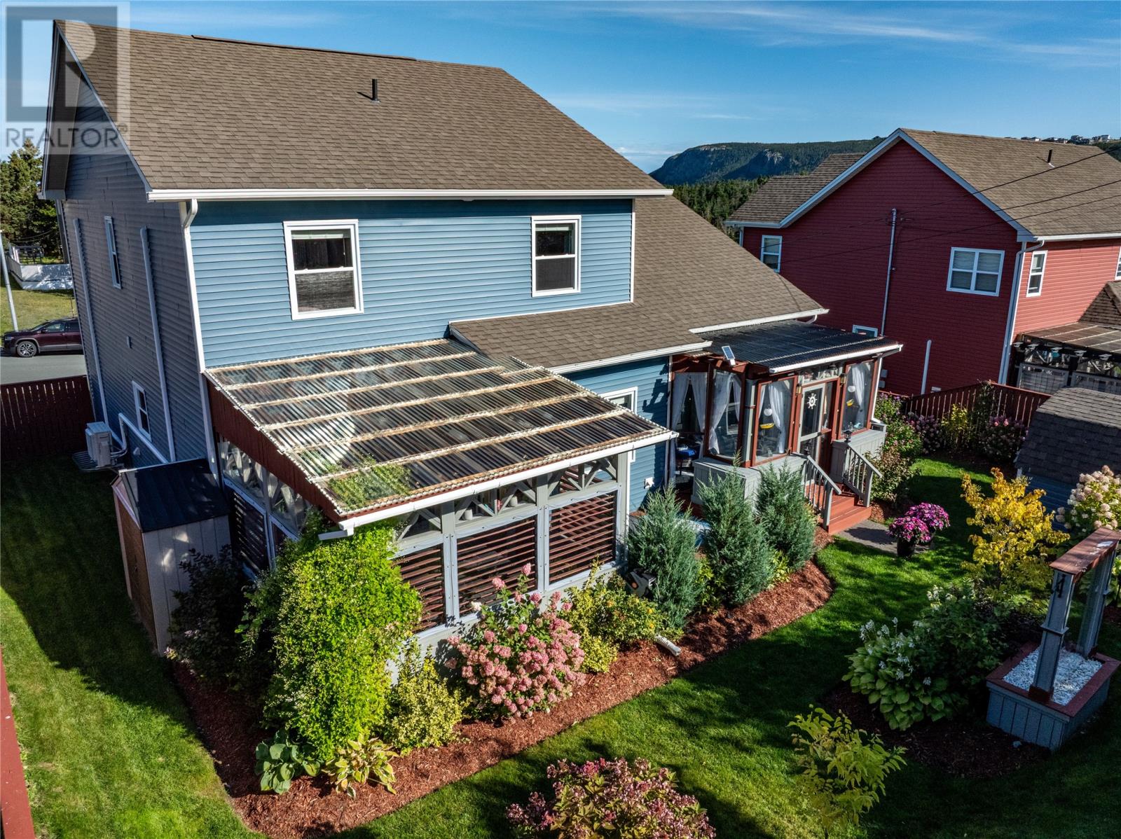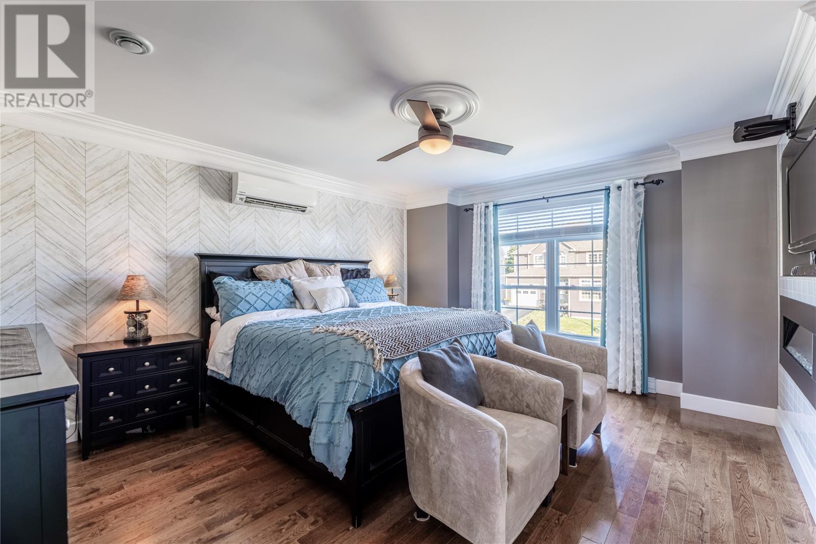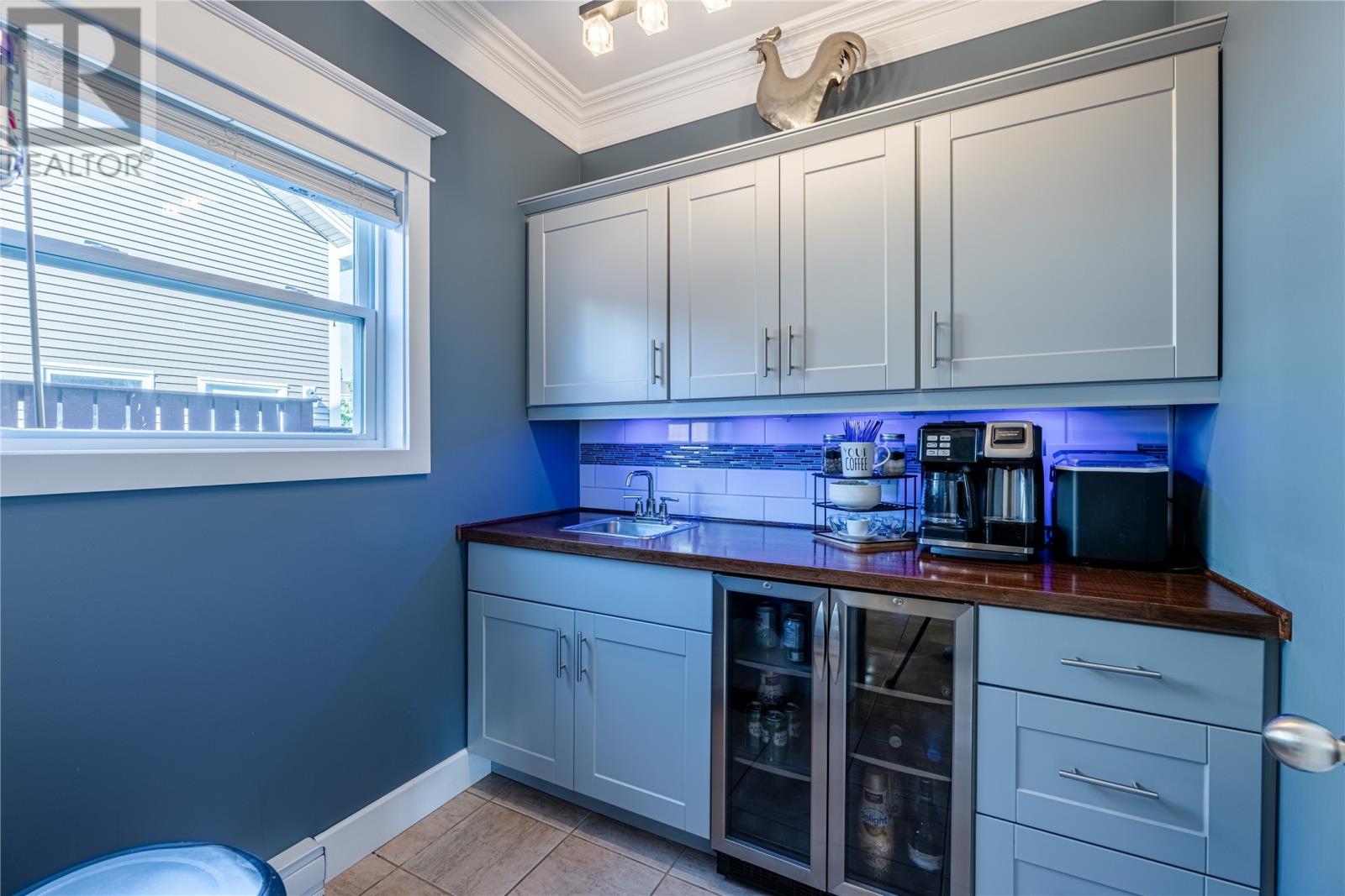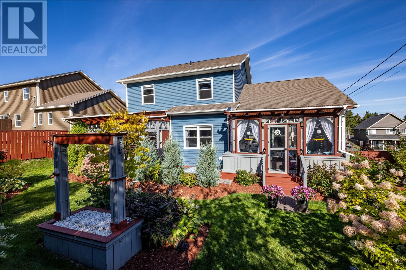 Pride of Ownership in Topsail â This beautifully maintained 5-bedroom, 3.5-bath home sits on a landscaped lot with plenty of curb appeal. The main floor features 9 ft ceilings, a welcoming porch, spacious dining room, half bath, and an open-concept kitchen with pantry (plus bar fridge), eating area, and living room with propane fireplace and custom shelving. Upstairs youâll find two large bedrooms, a main bath, and a bright primary suite with walk-in closet and ensuite.18 x 20 attached garage with fully developed basement with family room with electric fireplace, laundry, full bath, and two additional bedrooms. Extras include hardwood stairs, custom cove mouldings, wine cellar, and 3 mini-splits. The fenced backyard is a showstopper with two enclosed patio areas (one with hot tub), storage shed, and a large paved driveway for extra parking. Don`t miss out on this one! (id:9704)