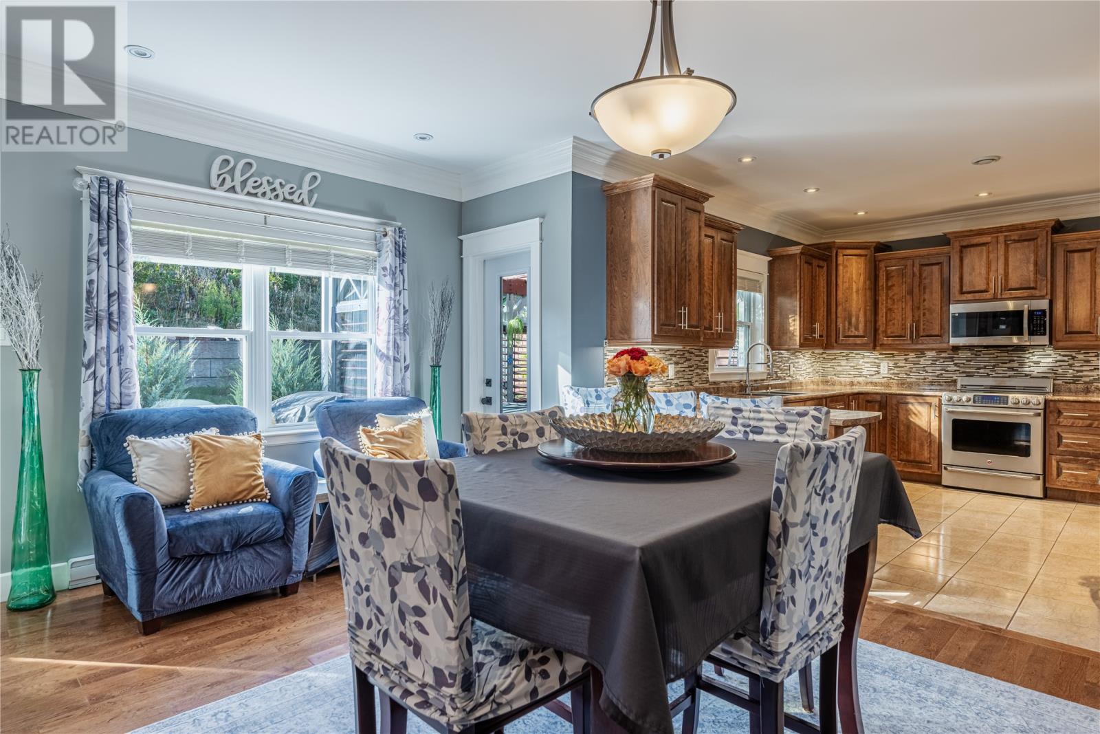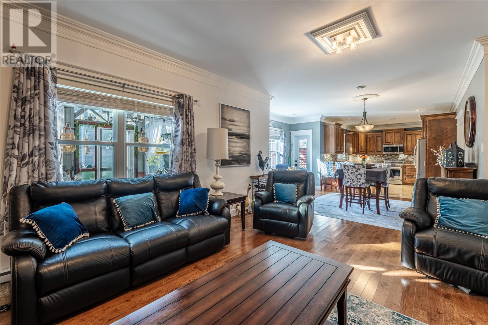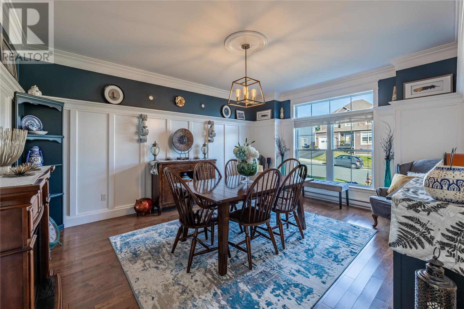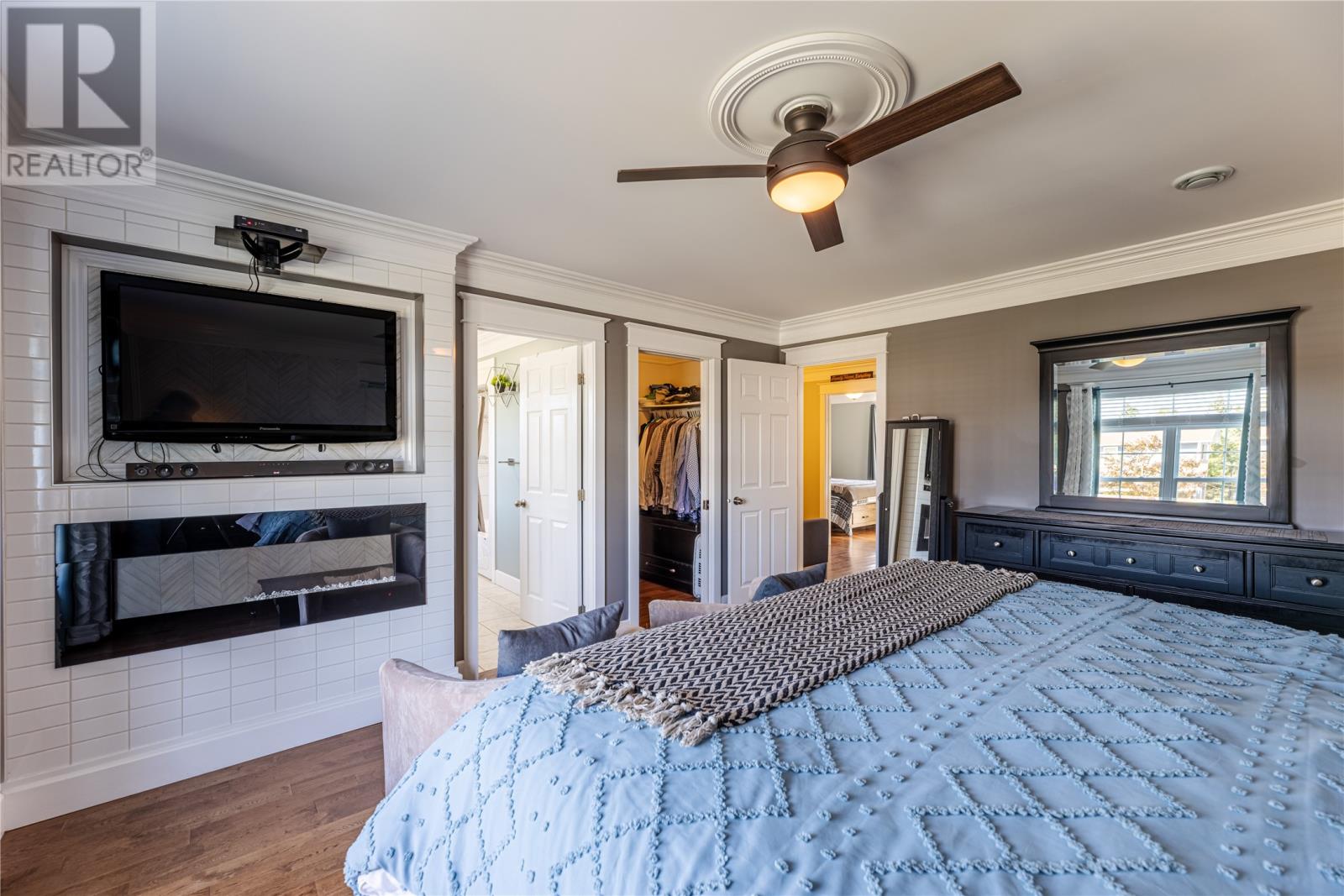 Pride of Ownership in Topsail â This beautifully maintained 5-bedroom, 3.5-bath home sits on a landscaped lot with plenty of curb appeal. The main floor features 9 ft ceilings, a welcoming porch, spacious dining room, half bath, and an open-concept kitchen with pantry (plus bar fridge), eating area, and living room with propane fireplace and custom shelving. Upstairs youâll find two large bedrooms, a main bath, and a bright primary suite with walk-in closet and ensuite.18 x 20 attached garage with fully developed basement with family room with electric fireplace, laundry, full bath, and two additional bedrooms. Extras include hardwood stairs, custom cove mouldings, wine cellar, and 3 mini-splits. The fenced backyard is a showstopper with two enclosed patio areas (one with hot tub), storage shed, and a large paved driveway for extra parking. Don`t miss out on this one! (id:9704)