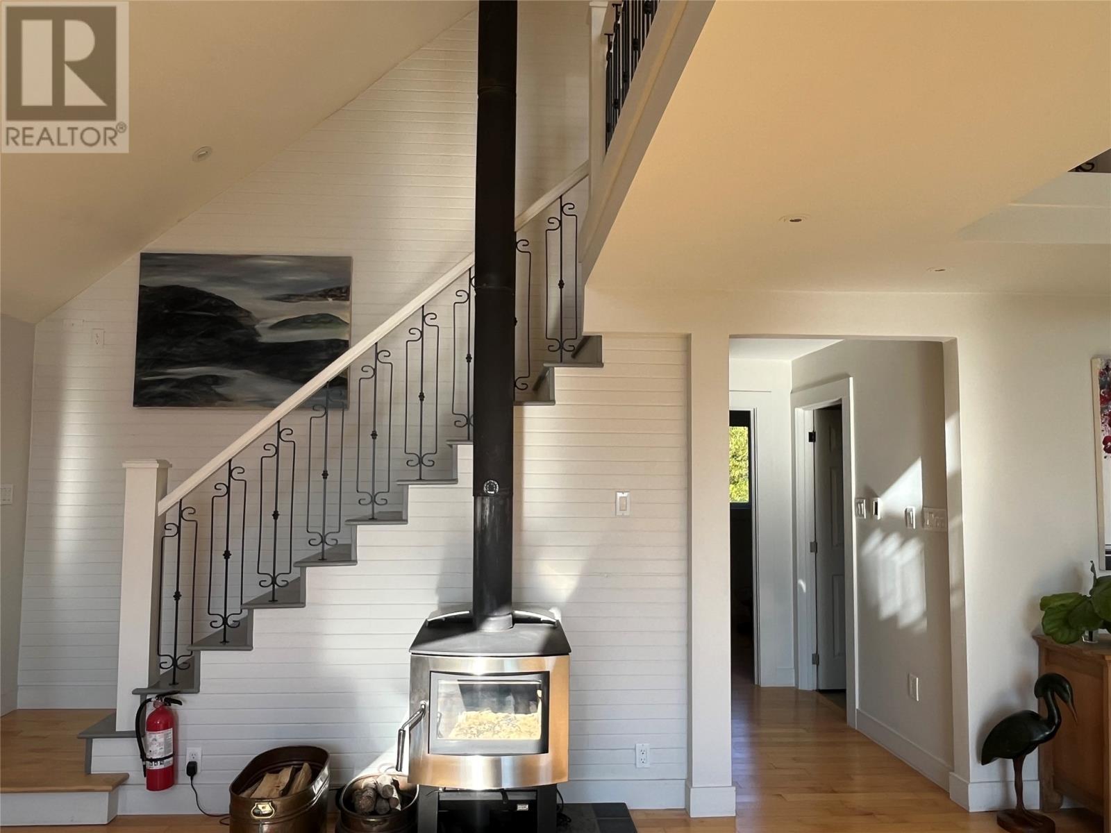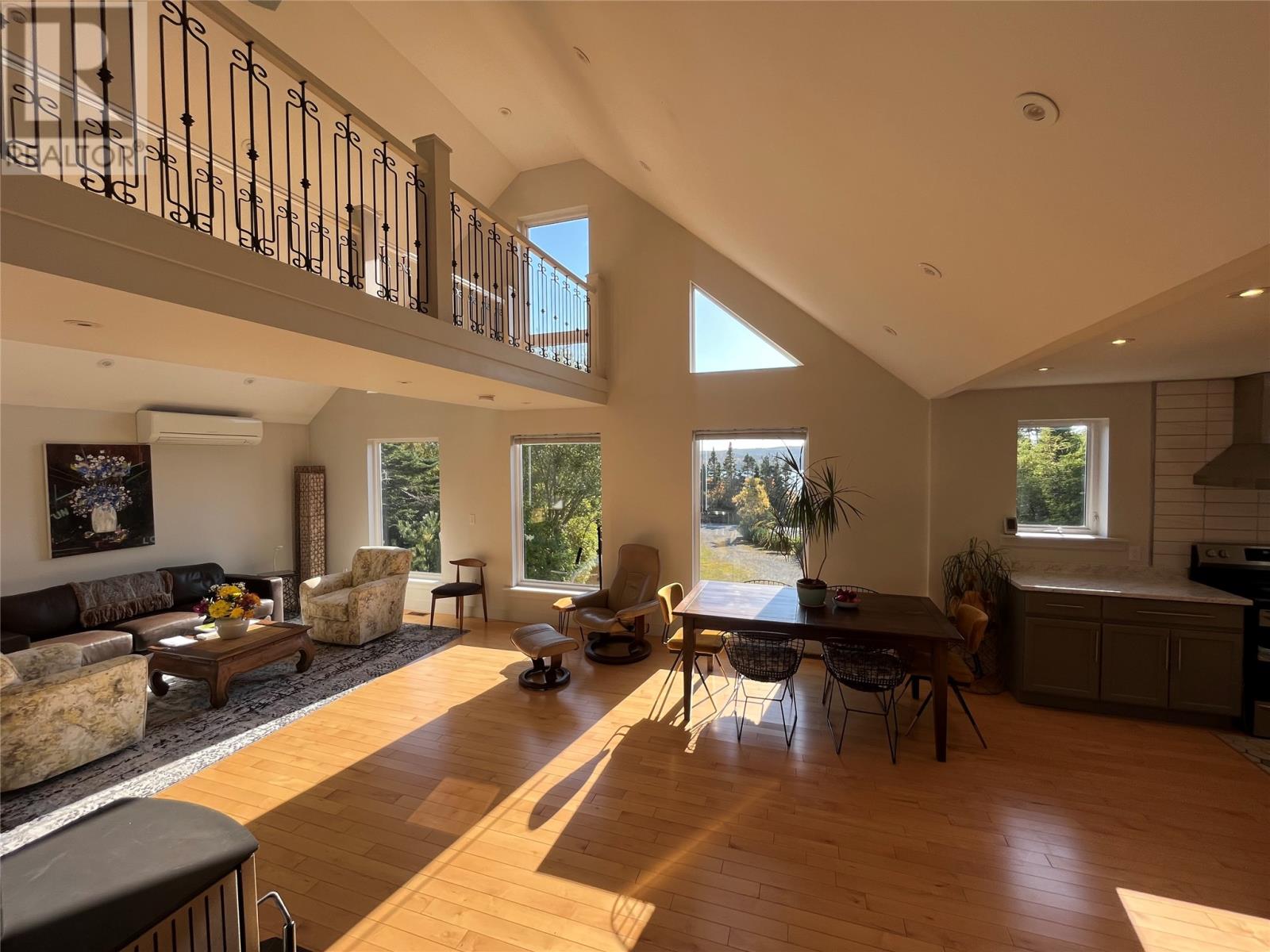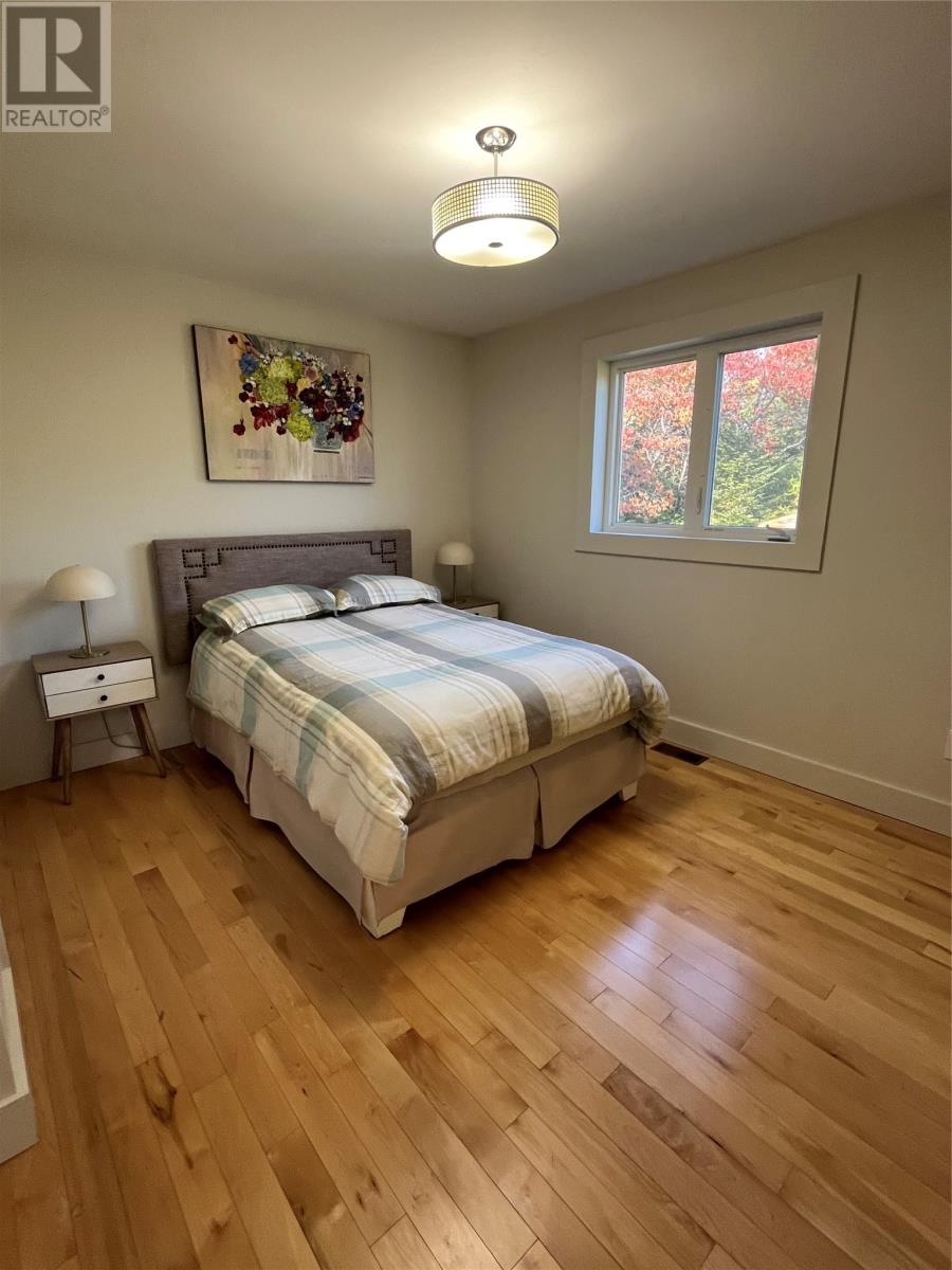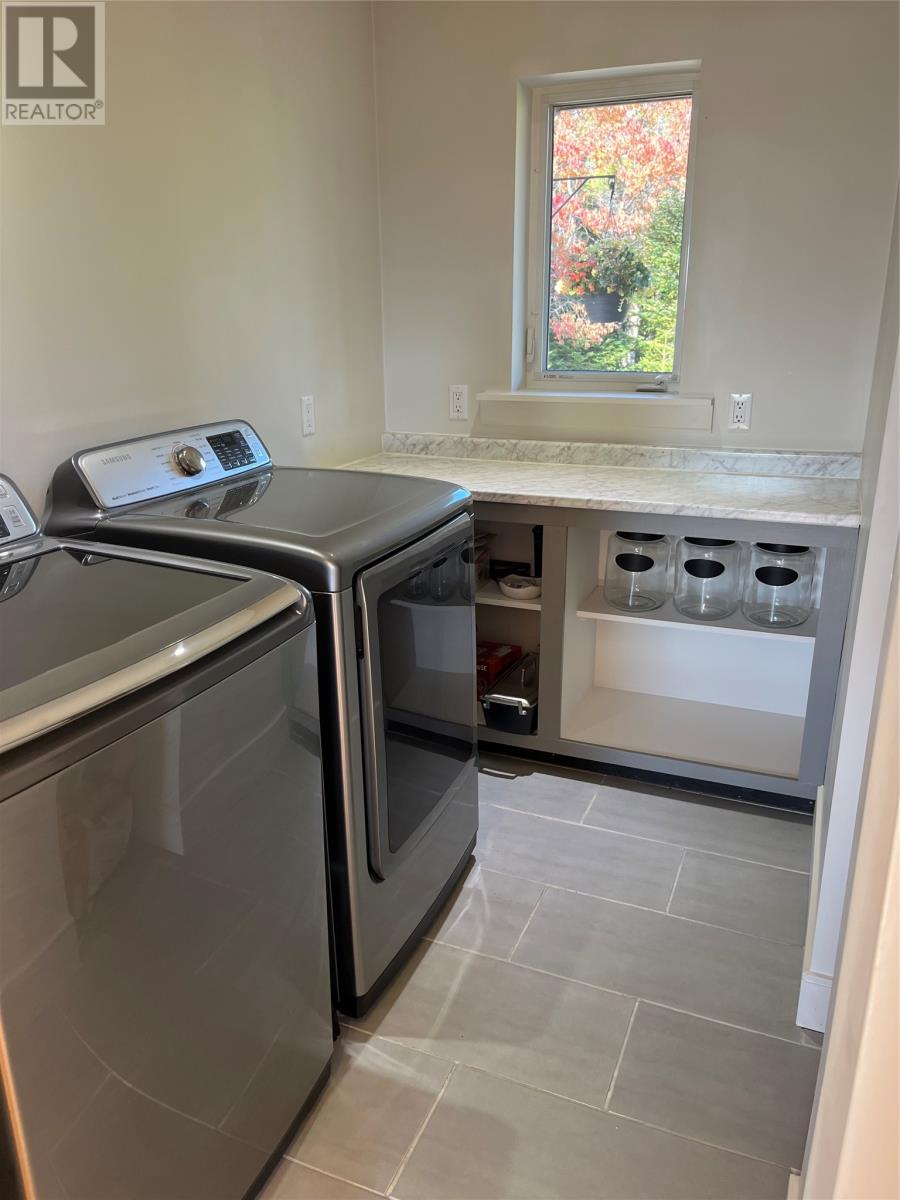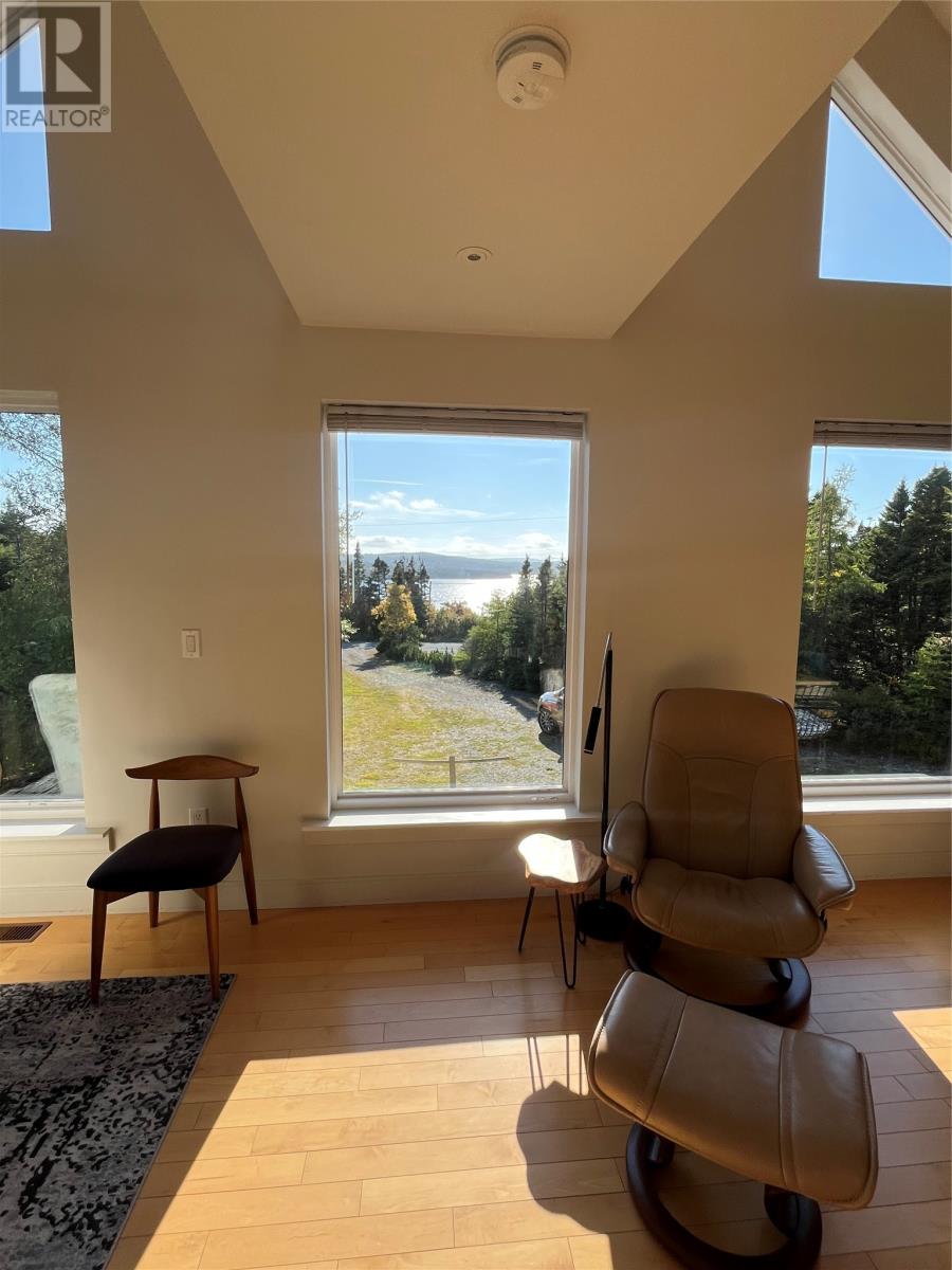 VIEW PROPERTY! PRIVACY GALORE! Spectacular views of Tors cove pond from this adorable A Frame home just 35 minutes from St Johns. This amazing home offers an open concept design main floor, kitchen, dining, and living room area with 16 ft vaulted ceilings and a cosy woodstove for great ambience. Delightful kitchen with modern decor cabinetry /center island, two average sized bedrooms with full bath, as well as main floor laundry. This property is cheerful and bright with an abundance of natural light shining through the oversized windows accentuating local pond views. On the second level, you will find the master bedroom complete with en suite /heated floor and double closets . The lower level has all aboveground windows with a walkout basement where you will find a TV room and a large family room as well as an in-house 13 x 26 garage for storing all those recreational toys or workshop area. This is a meticulously well cared for property with gleaming maple hardwood floors throughout. Lots of attention to detail. This property offers three sources of heat, mini split ,electric furnace as well as a woodstove. New hot water tank . Exterior is spruce clapboard stained with a 3/4 in cavity. New septic in recent years. Just a few minutes off route 10 in beautiful Tors Cove . (id:9704)