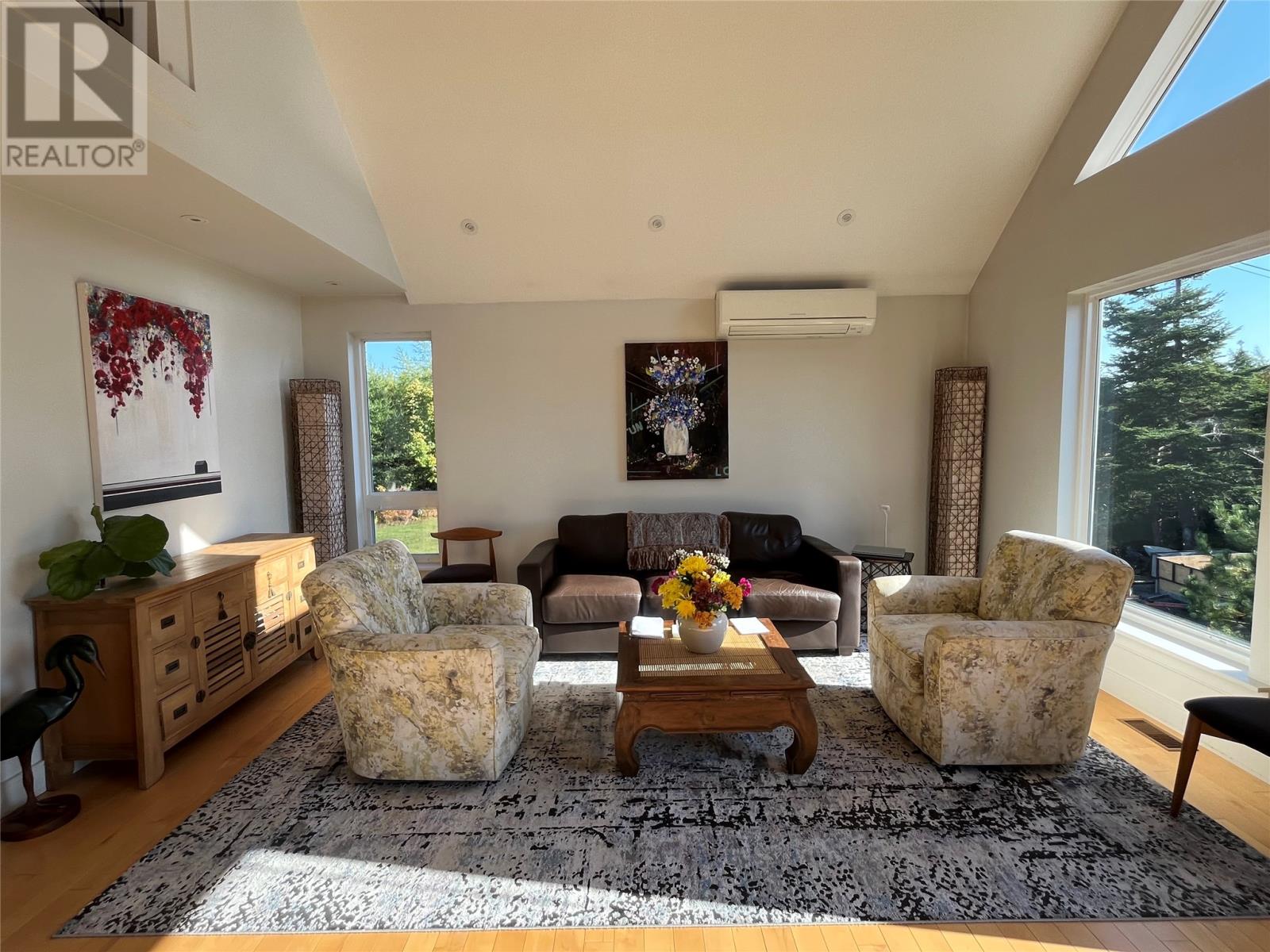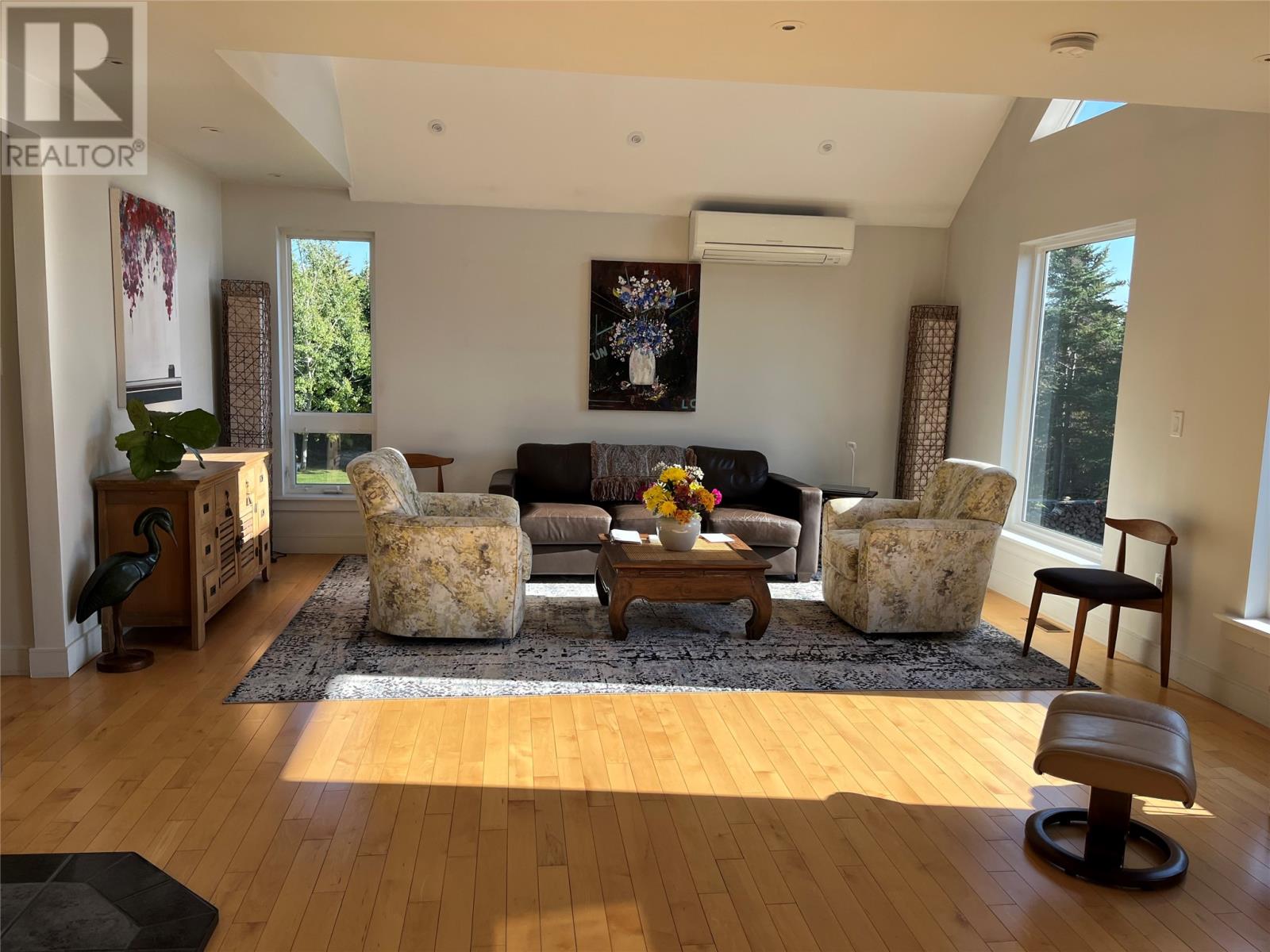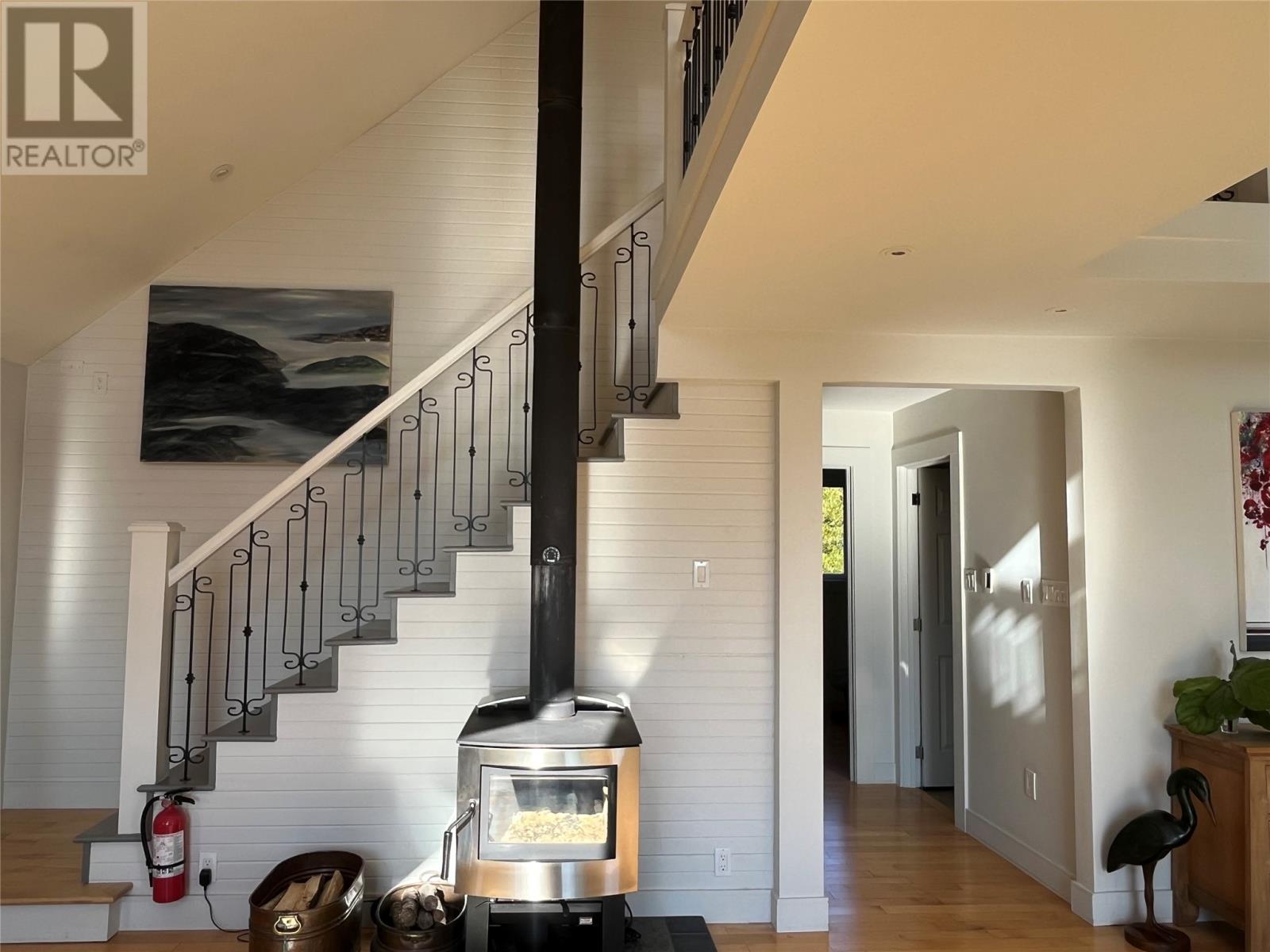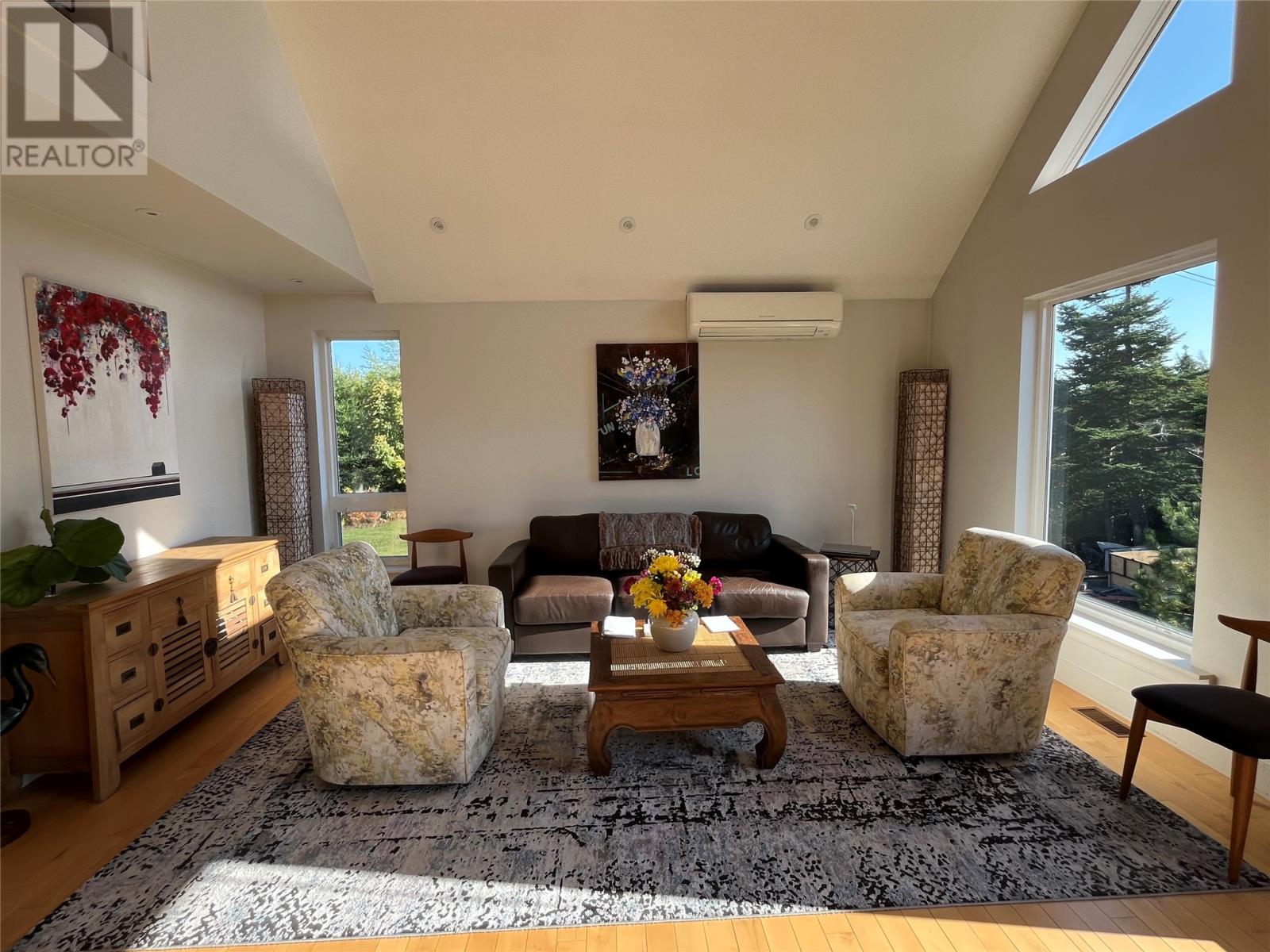 VIEW PROPERTY! PRIVACY GALORE! Spectacular views of Tors cove pond from this adorable A Frame home just 35 minutes from St Johns. This amazing home offers an open concept design main floor, kitchen, dining, and living room area with 16 ft vaulted ceilings and a cosy woodstove for great ambience. Delightful kitchen with modern decor cabinetry /center island, two average sized bedrooms with full bath, as well as main floor laundry. This property is cheerful and bright with an abundance of natural light shining through the oversized windows accentuating local pond views. On the second level, you will find the master bedroom complete with en suite /heated floor and double closets . The lower level has all aboveground windows with a walkout basement where you will find a TV room and a large family room as well as an in-house 13 x 26 garage for storing all those recreational toys or workshop area. This is a meticulously well cared for property with gleaming maple hardwood floors throughout. Lots of attention to detail. This property offers three sources of heat, mini split ,electric furnace as well as a woodstove. New hot water tank . Exterior is spruce clapboard stained with a 3/4 in cavity. New septic in recent years. Just a few minutes off route 10 in beautiful Tors Cove . (id:9704)