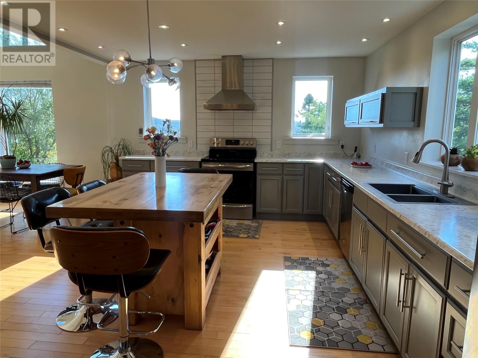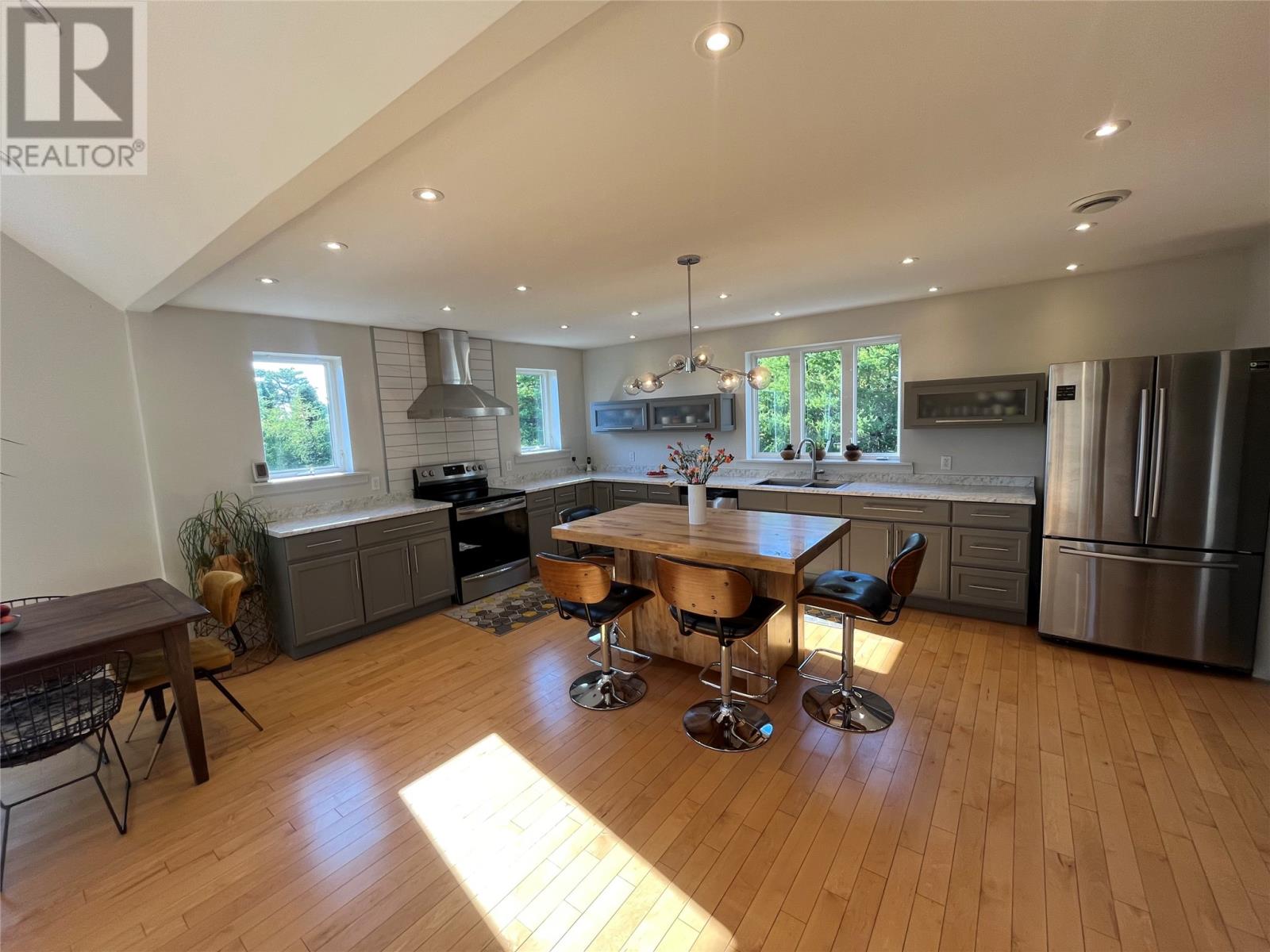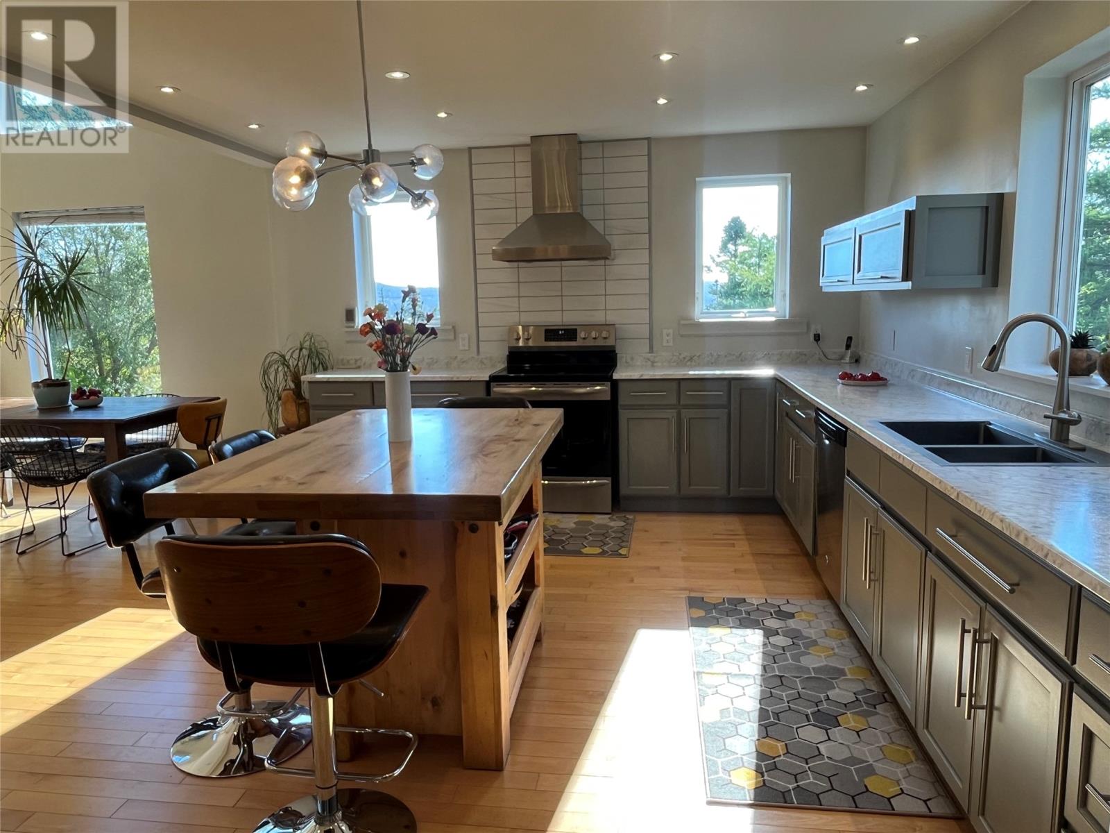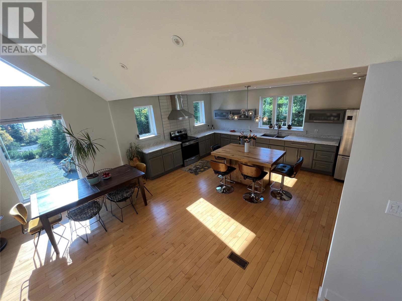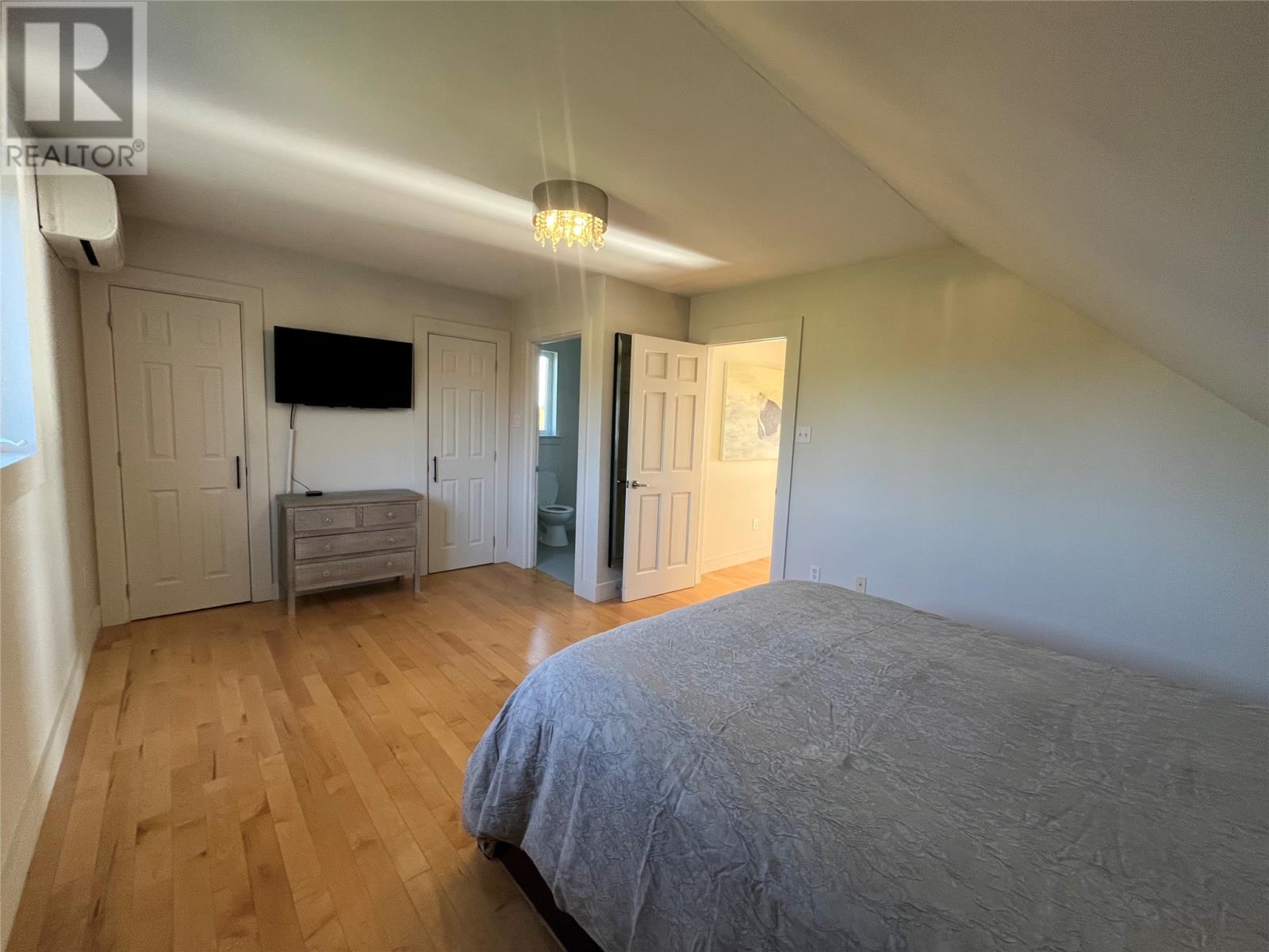 VIEW PROPERTY! PRIVACY GALORE! Spectacular views of Tors cove pond from this adorable A Frame home just 35 minutes from St Johns. This amazing home offers an open concept design main floor, kitchen, dining, and living room area with 16 ft vaulted ceilings and a cosy woodstove for great ambience. Delightful kitchen with modern decor cabinetry /center island, two average sized bedrooms with full bath, as well as main floor laundry. This property is cheerful and bright with an abundance of natural light shining through the oversized windows accentuating local pond views. On the second level, you will find the master bedroom complete with en suite /heated floor and double closets . The lower level has all aboveground windows with a walkout basement where you will find a TV room and a large family room as well as an in-house 13 x 26 garage for storing all those recreational toys or workshop area. This is a meticulously well cared for property with gleaming maple hardwood floors throughout. Lots of attention to detail. This property offers three sources of heat, mini split ,electric furnace as well as a woodstove. New hot water tank . Exterior is spruce clapboard stained with a 3/4 in cavity. New septic in recent years. Just a few minutes off route 10 in beautiful Tors Cove . (id:9704)