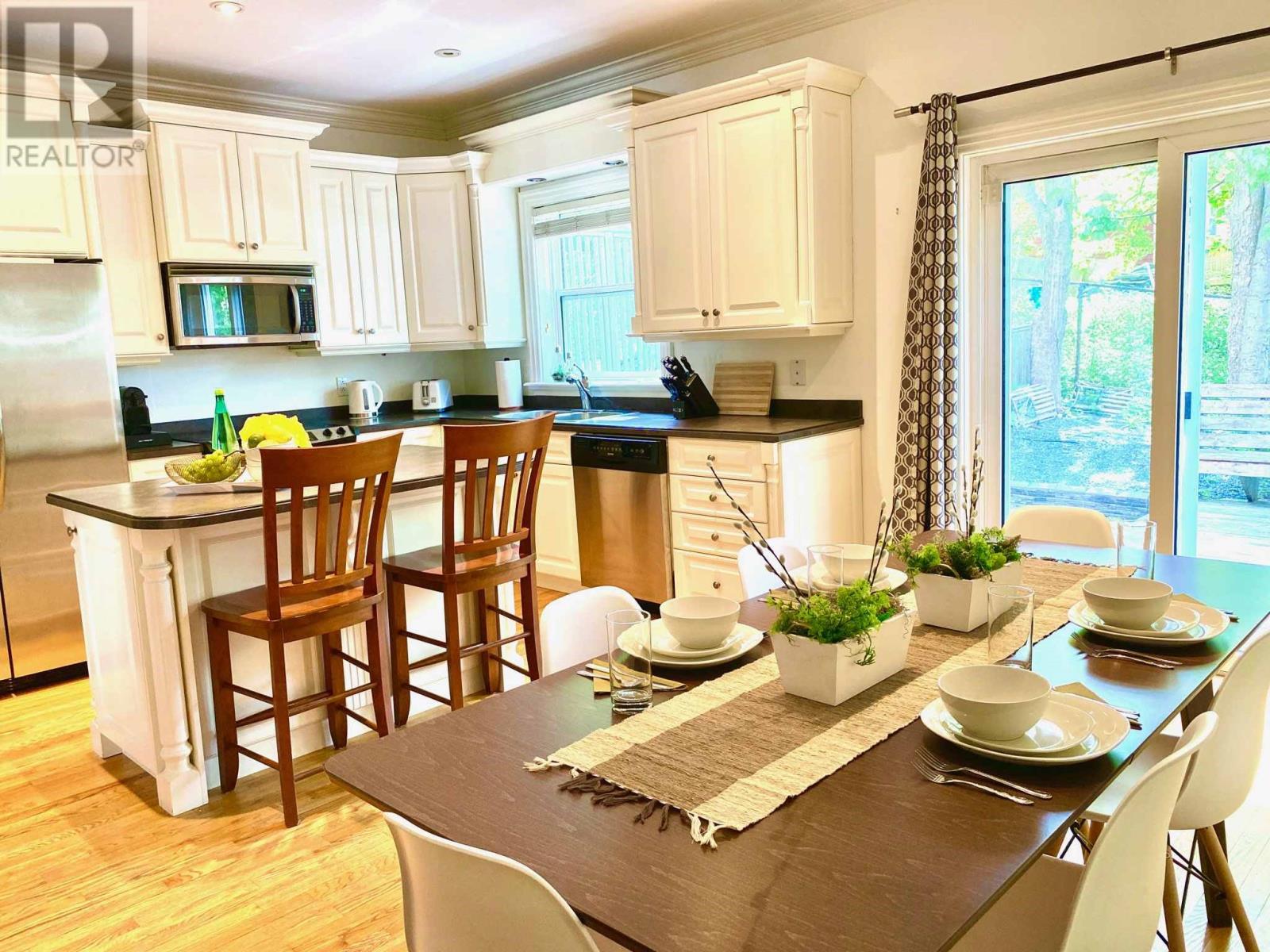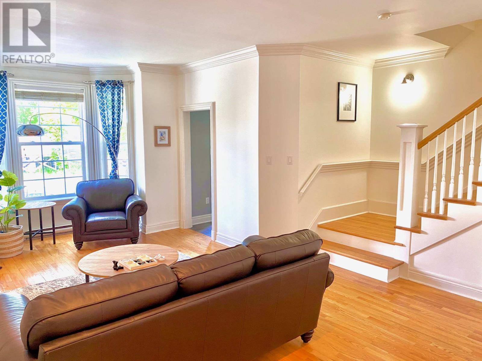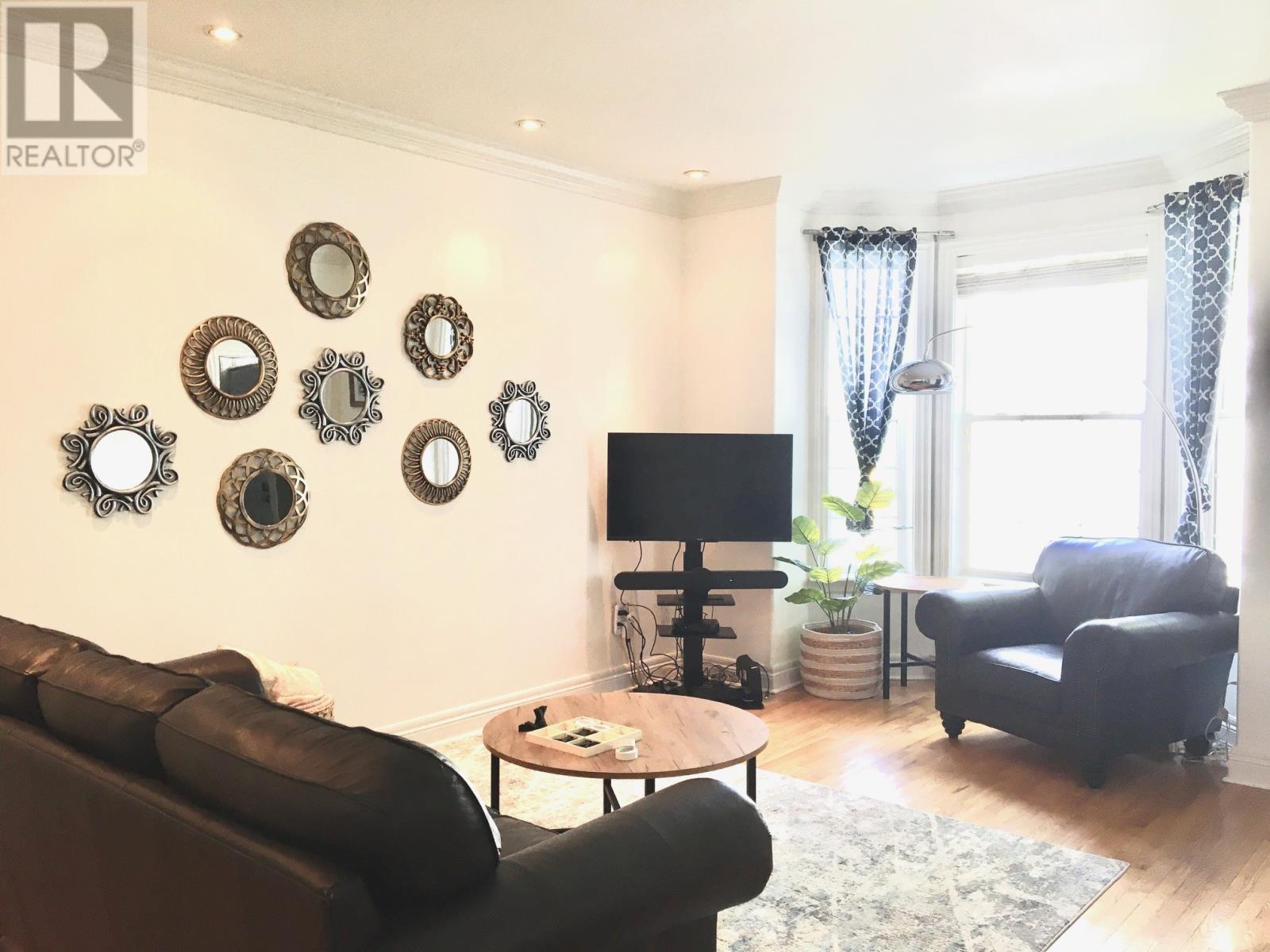 This fully furnished executive townhouse is ideally located in the heart of downtown St. Johnâsâjust a short walk to restaurants, cafes, bars, walking trails, and all major amenities. The main floor features 9-foot ceilings, crown moldings, recessed lighting, hardwood floors, and a spacious living area. The modern kitchen boasts white cabinetry, a center island, and a bright dining spaceâperfect for everyday living or entertaining. Upstairs offers a large primary bedroom with a walk-in closet and full ensuite including a tub with tile surround. Two additional well-sized bedrooms and a second full bathroom provide ample space, with the convenience of a top-floor laundry closet. The fully developed basement includes a large rec room and an office that can also function as a fourth bedroom, complete with a pull-out couch and a third full bathroomâideal for guests or flexible living needs. Enjoy outdoor space with a fully fenced backyard and a large deck. Off-street parking for one vehicle is included. No smokers, not pets. $3000 POU for a one year lease. Shorter lease periods maybe considered. (id:9704)