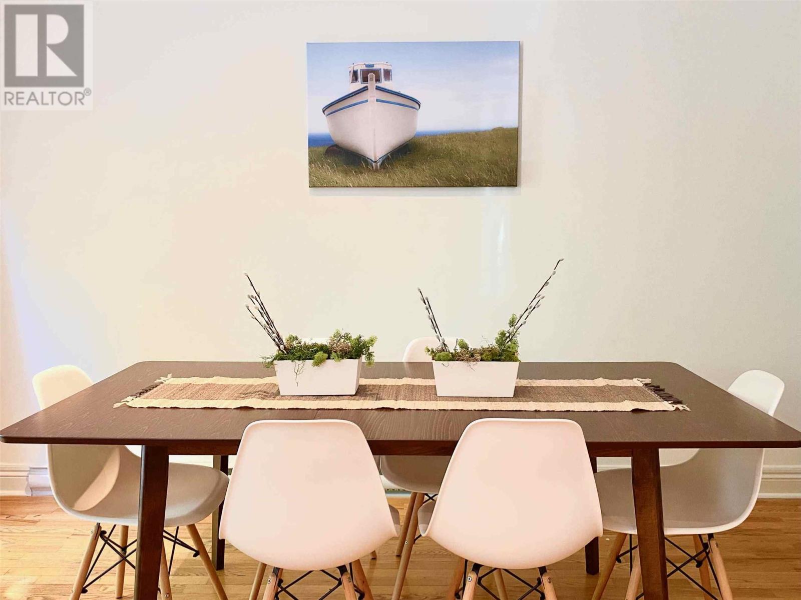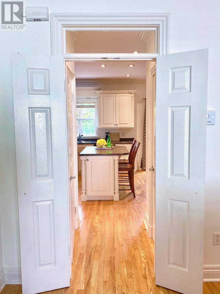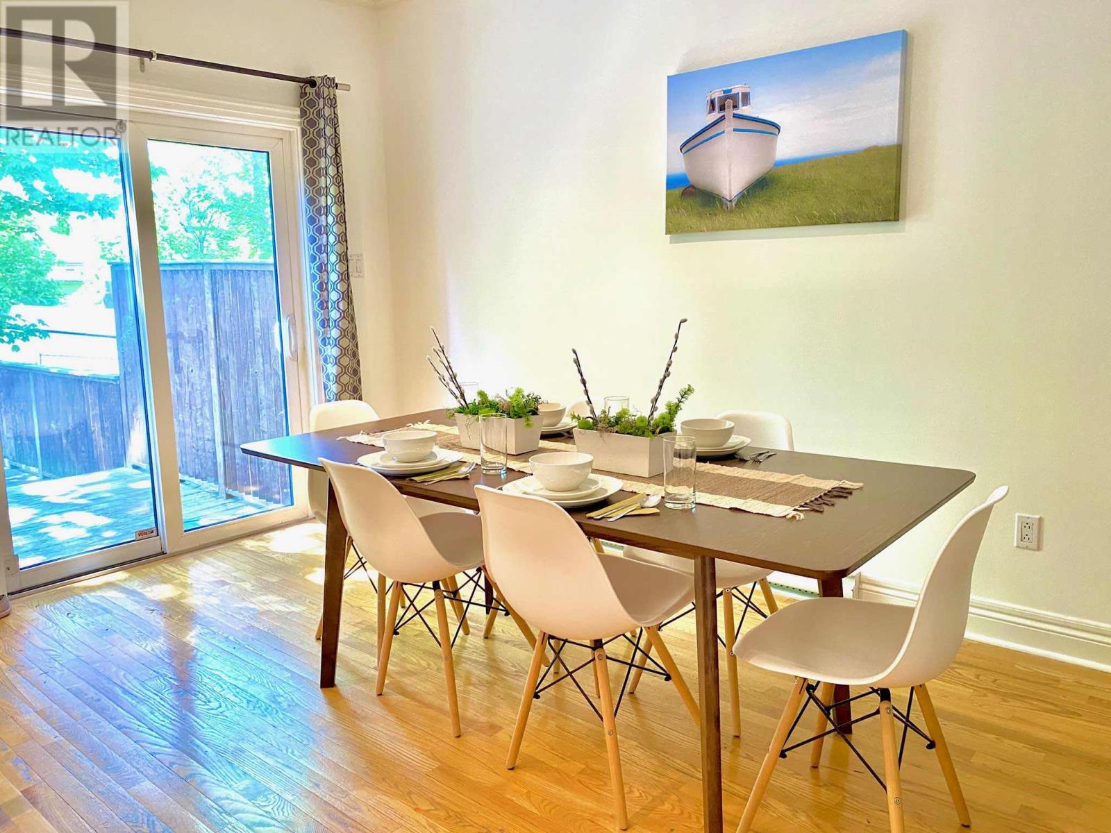 This fully furnished executive townhouse is ideally located in the heart of downtown St. Johnâsâjust a short walk to restaurants, cafes, bars, walking trails, and all major amenities. The main floor features 9-foot ceilings, crown moldings, recessed lighting, hardwood floors, and a spacious living area. The modern kitchen boasts white cabinetry, a center island, and a bright dining spaceâperfect for everyday living or entertaining. Upstairs offers a large primary bedroom with a walk-in closet and full ensuite including a tub with tile surround. Two additional well-sized bedrooms and a second full bathroom provide ample space, with the convenience of a top-floor laundry closet. The fully developed basement includes a large rec room and an office that can also function as a fourth bedroom, complete with a pull-out couch and a third full bathroomâideal for guests or flexible living needs. Enjoy outdoor space with a fully fenced backyard and a large deck. Off-street parking for one vehicle is included. No smokers, not pets. $3000 POU for a one year lease. Shorter lease periods maybe considered. (id:9704)