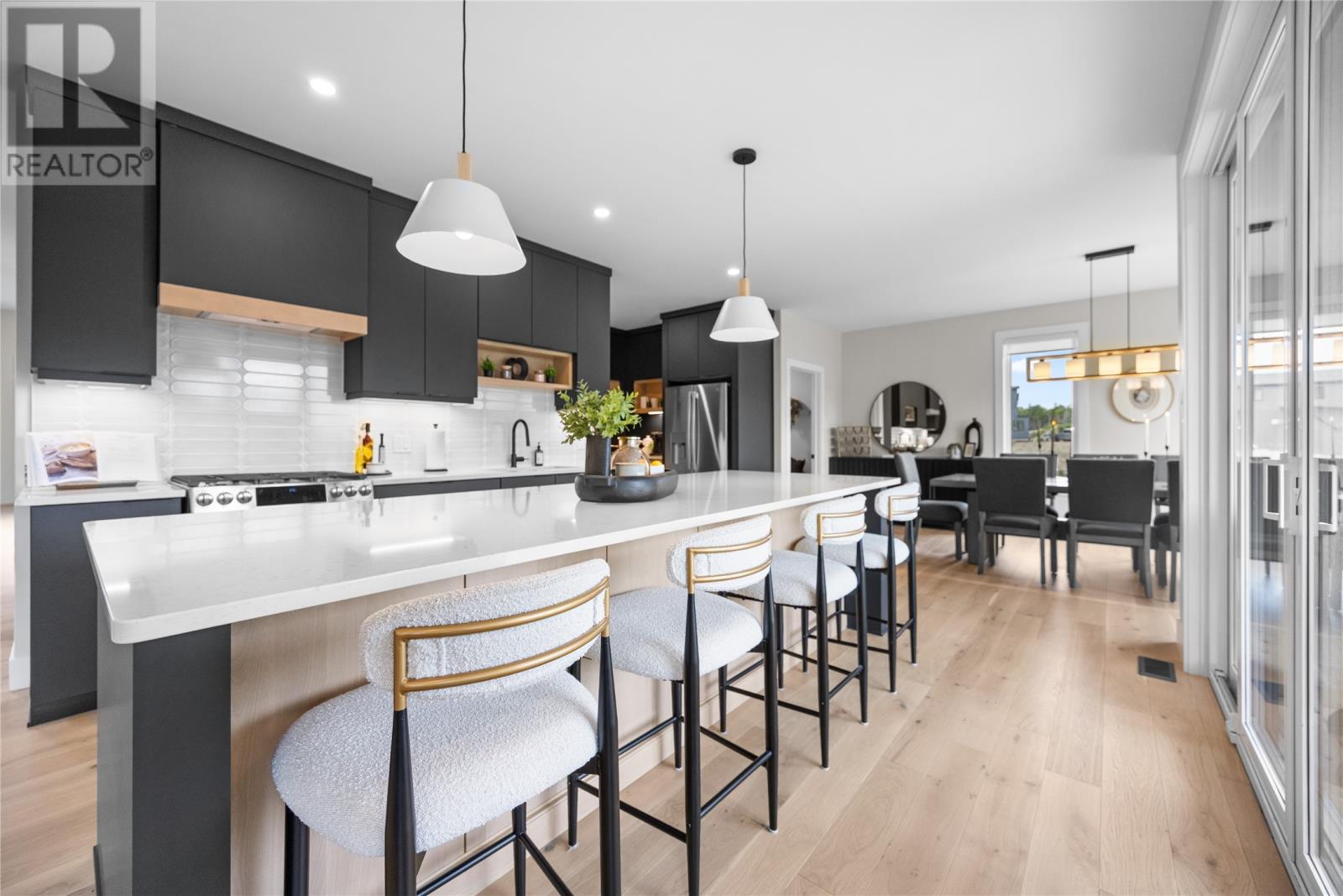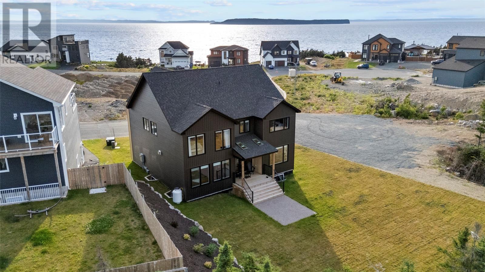 There are homes that impress you, and then there are homes that understand you. This Scandinavian-inspired show home in Kingfisher Estates is one of those rare designs that balance power and warmthâarchitecture that feels both modern and deeply human. Just six months new, this residence was built for those who value design as both art and function. Every line, material, and view has purpose. The entry sets the tone with a floating handcrafted staircase, while 9-foot ceilings and an 18-foot den heighten the sense of openness. Expansive glass captures sweeping views of Manuelâs River and Conception Bay Harbour, framing every room in light. At the heart of the home, a three-sided propane fireplace connects the sitting, living and marble-clad kitchen, which extends seamlessly into the pantry. A covered terrace invites year-round outdoor dining overlooking the river valley. Upstairs, the primary suite is a private sanctuary with floor-to-ceiling windows, heated floors, double vanity, walk-in shower, and soaker tub overlooking the greenbelt. Each bedroom has a walk-in closet, while the laundry room, with its harbour view, transforms the most ordinary task into a moment of quiet reflection. Downstairs, a Zen retreat awaits with sauna, yoga space, wet-bar rec room, and guest suite. A double in-house garage, ducted heat pump, and ENERGY STAR® certification delivers performance that matches beauty. Set in a quiet enclave between the Conception Harbour and Manuelâs River, this home captures modern design without pretense, luxury without excess, and comfort without compromise. For those who have achieved muchâand expect their home to do the sameâthis is where architecture and aspiration meet. (id:9704)