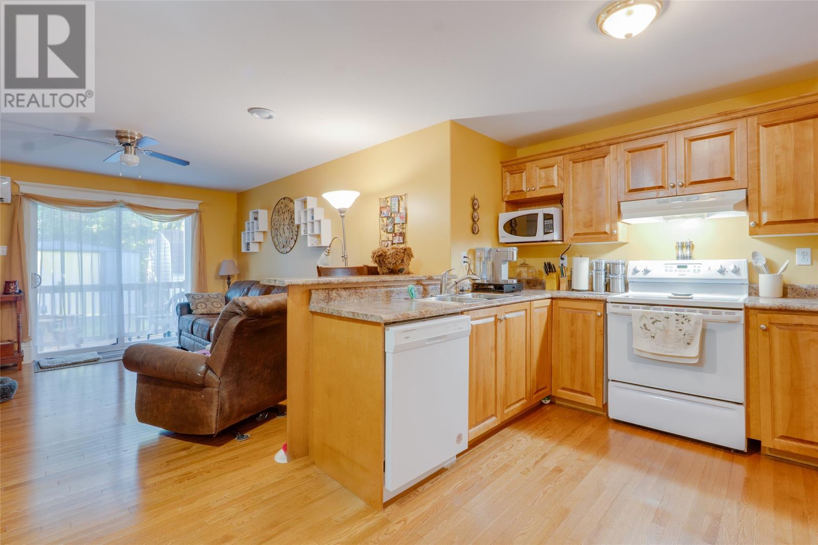 Looking to downsize without sacrificing too much space? Welcome to unit 13 Elliotts Place, Unit 108. Located in sunny CBS, this 50+ condo building features manicured grounds surrounded by mature trees and plenty of privacy. Inside, this unit is comprised of an enclosed porch leading to an open concept design boasting new gleaming hardwood floors. The spacious kitchen features maple cabinets, ample counter space, and a peninsula breakfast bar. Enjoy plenty of natural light in the living room from the expansive sliding doors which lead to the covered patio, the perfect place for morning coffee or evening barbecues. The remainder of this lovely condo includes 2 well appointed bedrooms and main bathroom. A mini split was also added for comfort & efficiency. This unit also includes a shed for all your storage needs & parking for one vehicle. Further updates include new flooring in the bathroom, PEX plumbing, and some new appliances. A stone`s throw from Manuels River walking trails, shopping, and convenient highway access, this is one you won`t want to miss. Arrange your viewing today! (id:9704)
