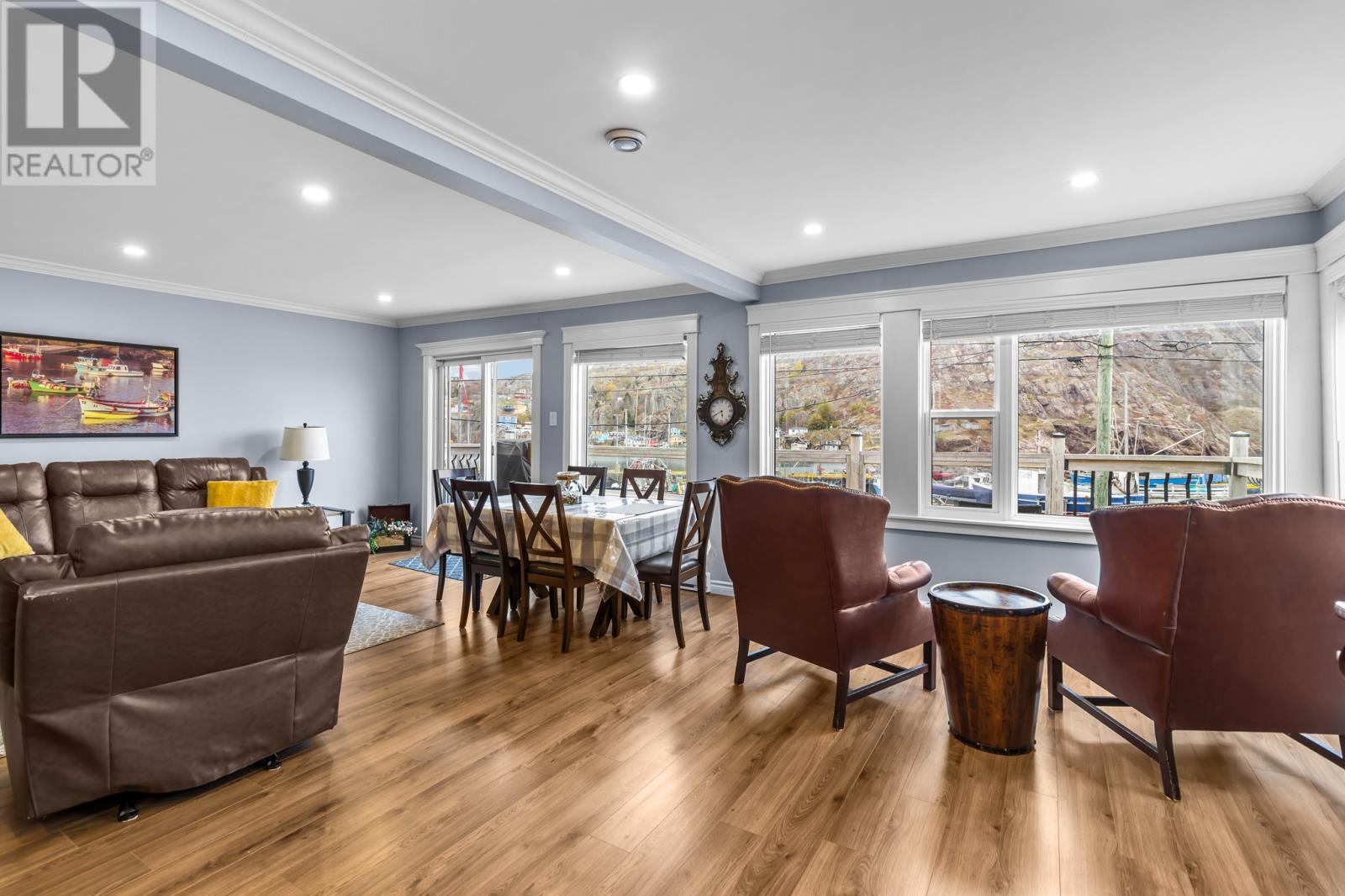Nestled in the Southside Hills of Fort Amherst, this one-of-a-kind three-bedroom, three-bath harbourfront home sits along the edge of historic St. Johnâsâthe oldest city in North America. Built in 1941 by a local fishing family, it blends timeless character with modern comfort, offering breathtaking panoramic views of the harbour and Signal Hill from its large front windows and upper deck. The spacious layout features three inviting bedrooms and three bathrooms, two of which include private ensuites, along with an open-concept kitchen, dining, and living area, plus convenient laundry facilities. Watch local fishermen at work in the nearby small-boat basin or enjoy the sight of majestic cruise ships gliding into port. Currently operated as a successful Airbnb, this home comes fully furnished with modern finishes, off-street parking, and keypad entry for easy access. With its blend of heritage charm, contemporary amenities, and unparalleled harbour views, this is truly a one-of-a-kind property offering one of the most distinctive coastal living experiences in St. Johnâs. (id:9704)