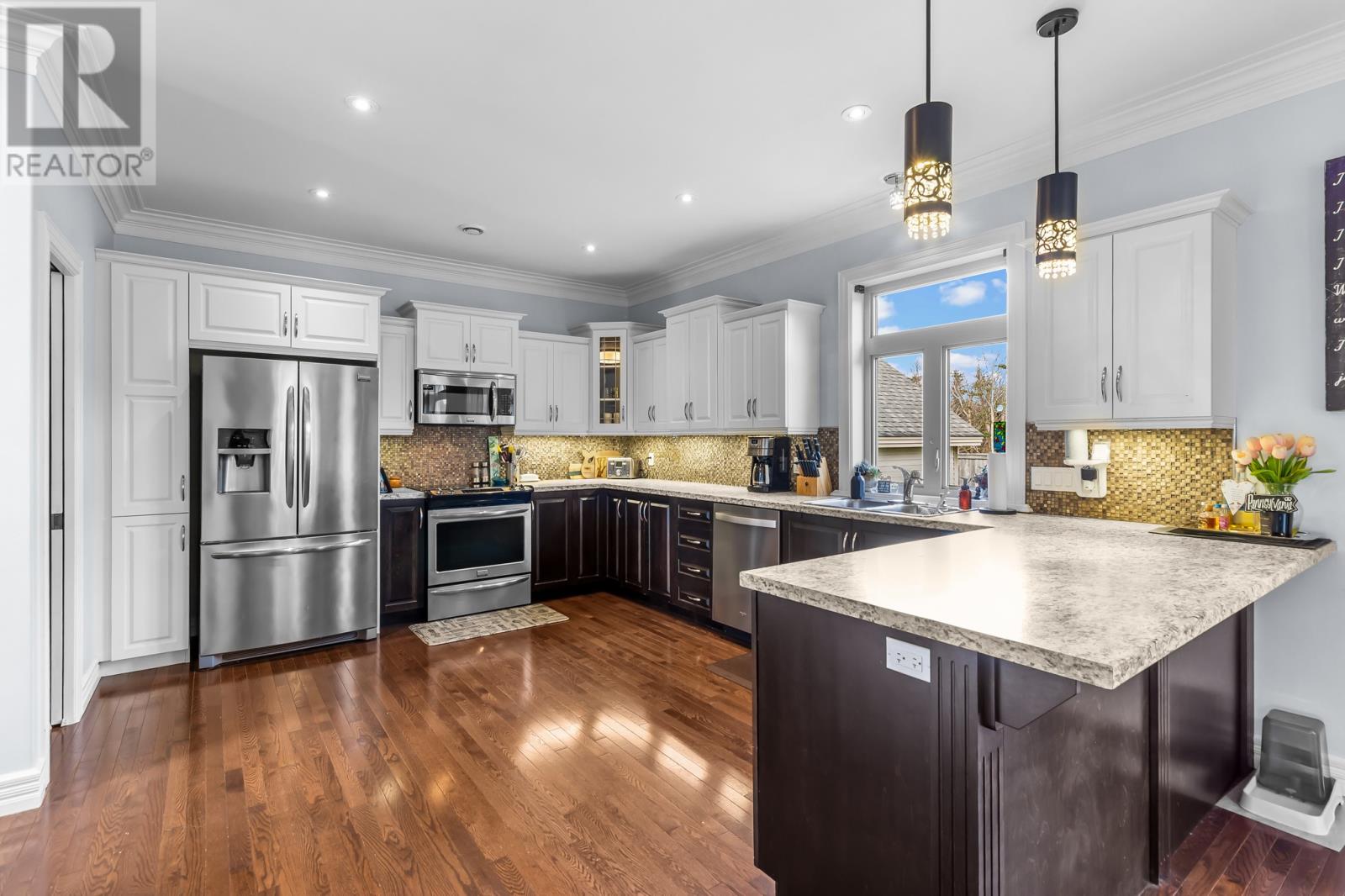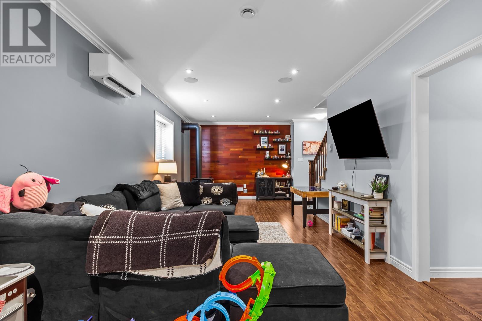 Located on a quiet and highly sought after street is this fully developed, perfect family home that boasts a ton of luxury and high end design. The covered front veranda gives ultra charming curb appeal immediately, and combined with modern exterior trim, and one look at the oversized driveway with access to a detached rear yard garage, you will instantly start loving this home. The bright open concept style main floor has 9-foot ceilings & tons of natural light. The kitchen, featuring custom cabinetry and sit up peninsula (And pantry!!), opens to the dining area & family room, with a gorgeous built-in electric fireplace. There is a den and also a powder room on this main level! The second floor does not stop impressing with a large master bedroom that is complete with vaulted ceilings, walk-in closet & ensuite with Jacuzzi tub & tiled shower. Second level also offers 3 additional bedrooms, a super convenient laundry room as well as a large main bathroom. The fully developed basement includes the large rec room/entertainment area, 5th bedroom, 3-piece bath & ample storage. This home is absolutely stunning with an abundance of custom trim & millwork, coffered ceiling, mini splits, fully fenced rear yard and even a wood stove! It is a pleasure to present and show, and you will love it when viewing it. (id:9704)