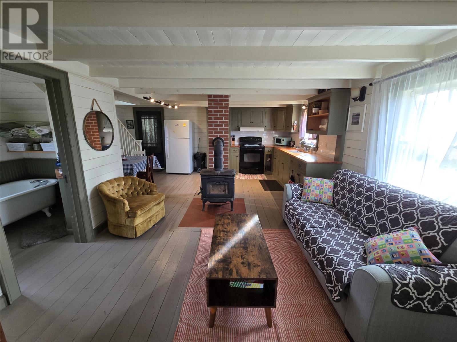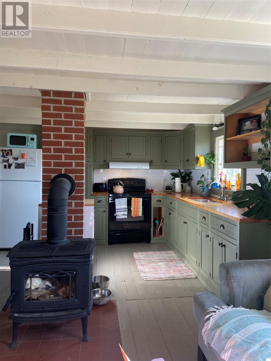 Professionally restored traditional saltbox home located directly across from the main beach in the picturesque town of Newman`s Cove on the historic Bonavista Peninsula. This 2+1 bed, 1 bath property was completely renovated with locally sourced materials and master craftspeople from Patterson Woodworking approximately 13 years ago. The main floor has painted softwood plank flooring and walls throughout, exposed beam ceilings, custom built kitchen with butcher block counters, cast iron wood stove, large side entry porch with laundry, cozy living room, eating area and 4 piece bath with claw-foot tub and corner shower. The second floor is also restored with all softwood floors, walls, doors and trim, has 2 good sized bedrooms plus a 3rd smaller bedroom that could be used as a home office or den, as well as a built-in storage and linen area. The exterior is all beautiful local clapboard, hand built custom heritage style wooden windows with new professionally restored storms, partially fenced lot, parking at the rear and amazing ocean views of the cove. Some of the most recent upgrades include new shingles ~8-9 years ago, new septic 5 years ago, and during the renovation all plumbing, electrical & insulation were updated. Formerly used as a successful Airbnb this property is being sold fully furnished and equipped as move-in ready as a full time or seasonal residence. Located within 3 hours to St. John`s, 1 hour to Clarenville and just 10 mins to bustling Bonavista. (id:9704)