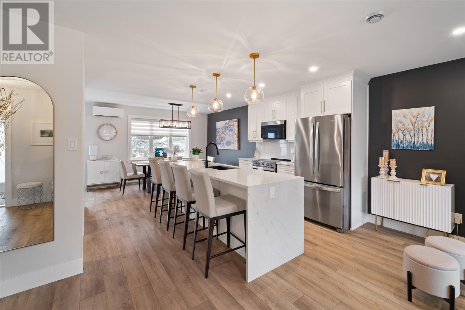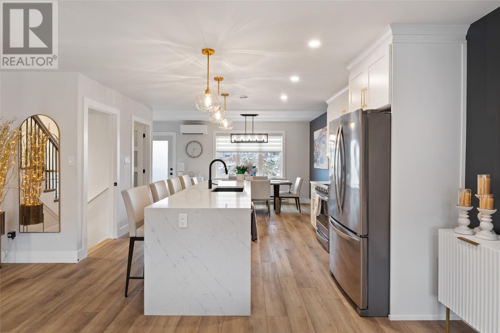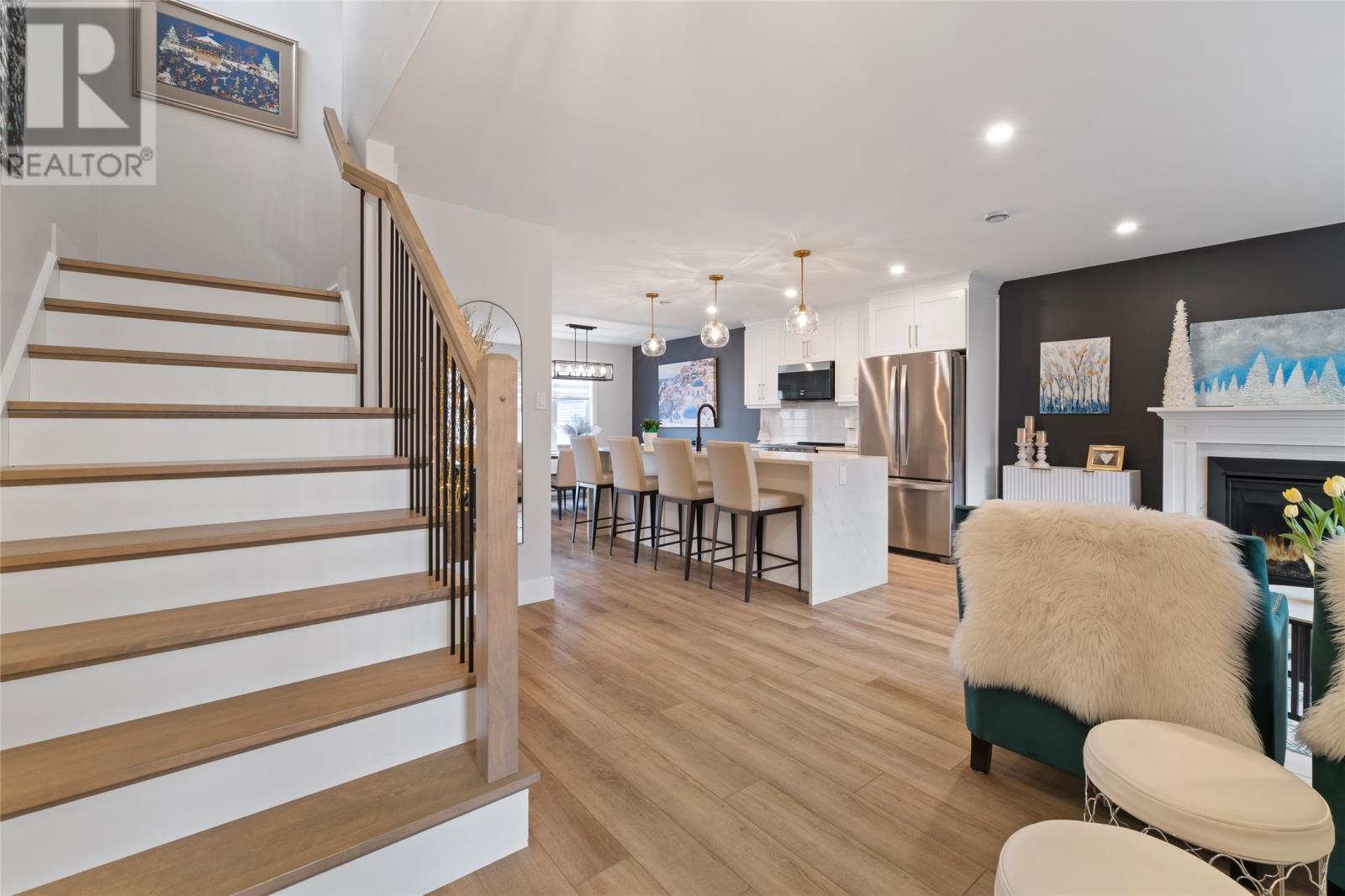 A piece of Paradise! Located in popular Adam’s Pond, this modern & upgraded 2-storey gem is a rare find… from Quartz waterfall counter tops in the kitchen to rear-yard access! This well cared for open concept has 3-bedrooms (primary with walk-in closet & ensuite with tiled shower) & 4-bathrooms plus a large rec-room with a wet bar. Some highlights/upgrades include: quartz counter tops in kitchen and bathrooms, propane fireplace, some electric blinds, lots of pot-lights (including front veranda), 2-mini split heat pumps (primary bedroom and main floor), large pantry in kitchen, wooden stairs and 2nd floor laundry. The basement (wired for a 3rd mini split) is developed with a cozy rec room, ½ bathroom, and has a fantastic area for extra storage. This home’s location is in the fast growing Town of Paradise, here you can enjoy walking trails and other recreational facilities, shopping, restaurants (like Cajones, Pur & Simple, Coffee Matters & CakeyHand dessert shop) and a craft beer (Banished Brewing). As per Sellers Direction, there will be no conveyance of offers prior to 1:00pm on Sunday – January 25, 2026. (id:58149)