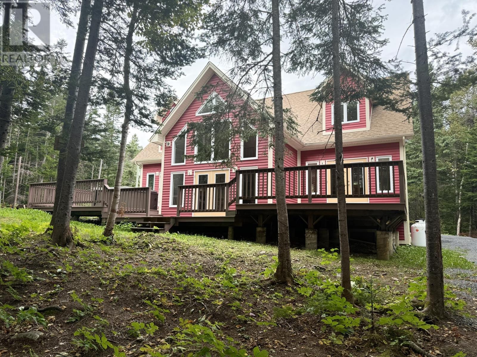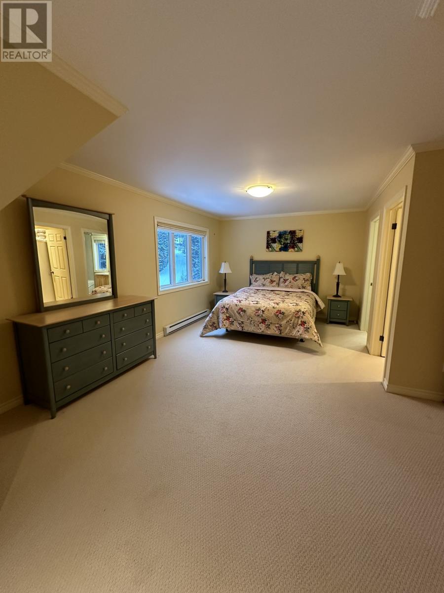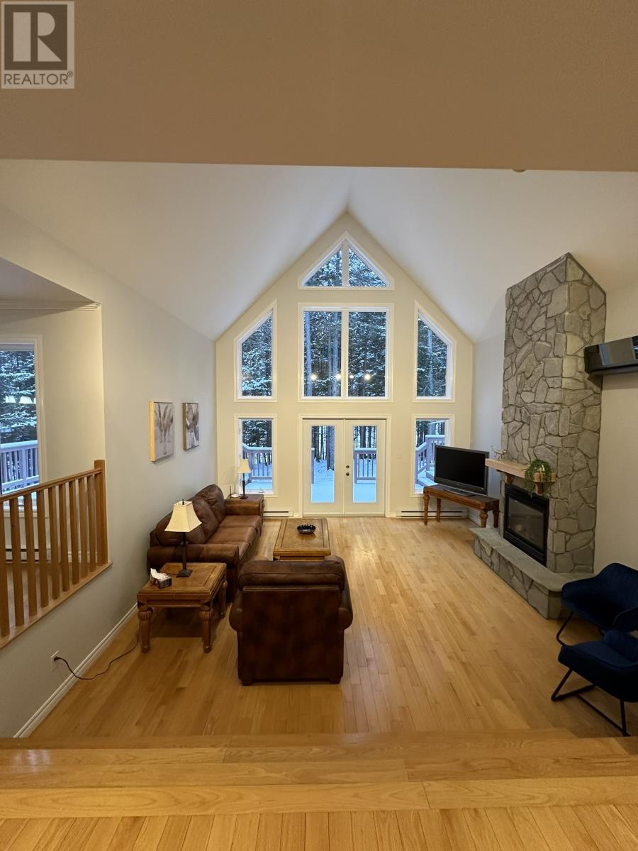 Nestled in the heart of Humber Valley Resort, this stunning 3-bedroom chalet awaits new owners. Surrounded by the lush beauty of the woods and facing the golf course, this property offers a serene escape. Entering the main door, you are greeted by a welcoming foyer that leads into the open-concept living area. The sunken living room, with a cozy propane fireplace, invites you to unwind and enjoy the warmth of the fire. The large kitchen (with new countertops and backsplash in 2023) and dining room provide ample space, making it an ideal setting for family gatherings or entertaining. The main floor master bedroom is a retreat in itself, featuring a walk-in closet and a ensuite. Indulge in relaxation with a Jacuzzi tub and a separate tile/glass shower, creating a spa-like atmosphere. Upstairs discover two large bedrooms, each with ensuite and spacious closets. The oversized windows allow natural light to flood these rooms, creating a bright and inviting ambiance. The full basement provides endless possibilities. Includes a half-bath, laundry facilities, and abundant storage space. Customize this area to suit your needs. Outside you`ll a detached garage for your recreational toys, such as quads & snowmobiles. Enjoy the tranquility of the surroundings from the comfort of a regularly maintained hot tub, perfect for unwinding under the stars. Modern amenities enhance the living experience, with a ductless heat pump installed in 2025, providing both heating and air conditioning. Additional updates include eavestrough installation in 2016, shingles replaced 2021, exterior painted 2022, main interior painted 2023, new carpet in main bedroom and stairs to basement 2023. This chalet is being sold furnished. Don`t miss the opportunity to make this beautiful, well-maintained property your own, where every detail has been considered for your comfort and enjoyment. Humber Valley Resort Restrictive Covenants and Agreements apply to the purchase of this property. (id:58149)