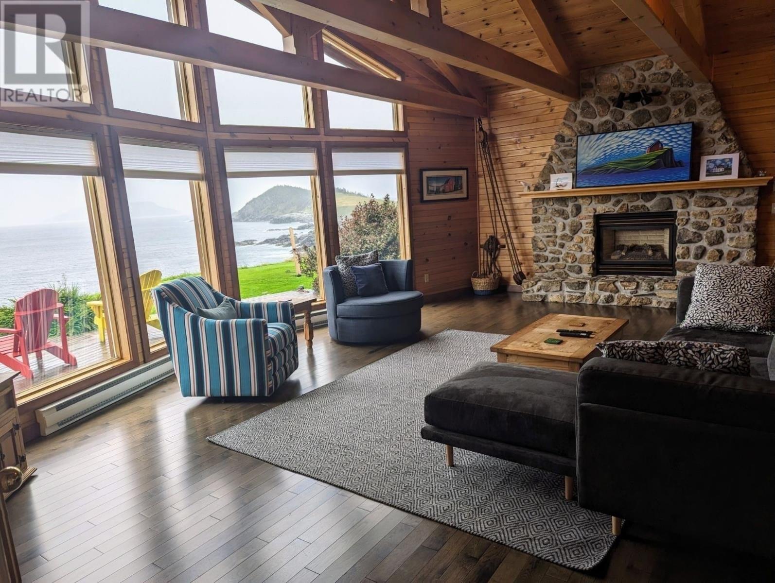 With 400 feet of ocean frontage and situated on nearly three acres of private property, about as far east as you can go in North America, this home is truly a rare gem. Relax on your front deck and take in sweeping ocean views or take a walk down to the oceans edge, in the world-renowned Cribbies area of Tors Cove which also makes up part of the East Coast Hiking Trail. With unobstructed views, abundant wildlife, seabirds, whales, and even passing icebergs, youâll feel like you were meant to be here. Step inside and your eyes are immediately drawn to the bright, open-concept living space, highlighted by a beautifully handcrafted stone propane fireplace. Vaulted ceilings and expansive windows frame the breathtaking ocean views, while the exposed wood beam construction showcase the homeâs warmth and craftsmanship. Thereâs no bad seat in the house. The home features a spacious, well-appointed bathroom complete with an accessible shower and convenient laundry. Two generously sized bedrooms offer peaceful retreats, where you can imagine waking each morning to the sound of waves crashing and seabirds going about their day. The property also has a 16x24 detached garage which, with a little effort, could potentially be converted into a bunkie-style space for guests. Built in 1998, this property has seen some upgrades in recent years, including: New septic tank (2022) New hot water tank; New shingles on home & garage; New stainless steel appliances, countertops, backsplash (2023) Most windows replaced (2024) Whether youâre looking for a coastal retreat or a once-in-a-lifetime view to call your own, this property delivers privacy, natural beauty, and modern updates in one unforgettable package. For anyone thinking about using this as an investment property, you`ll be happy to hear that it`s already proven to be a success. Check out the VRBO link, (https://rem.ax/Cribbies) With the right vision, additional cabins can be strategically placed to add to your investment! (id:58149)