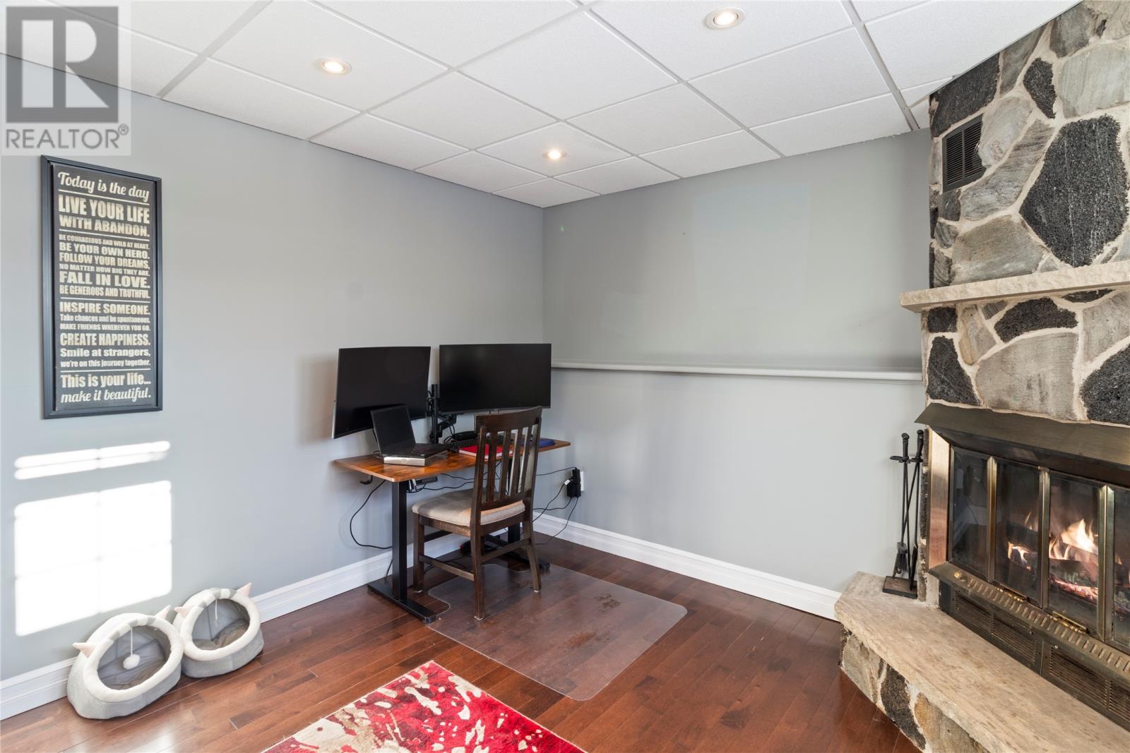 Step into executive living with this stunning home showcasing a tasteful painted brick exterior and timeless curb appeal. Designed with entertaining in mind, the heart of the home is a dramatic chefâs kitchen offering an abundance of cabinet space, expansive countertops, and convenient counter seating. Thereâs ample room for a grand dining table, making it the perfect space for hosting family gatherings or elegant dinner parties. Top-of-the-line appliances complete culinary space. The upper level living room boasts 9-foot ceilings, beautiful natural light, and high-end lighting accents that create a warm yet sophisticated atmosphere. The primary bedroom is plus-sized, featuring a walk-in closet and a luxurious ensuite complete with a soaker tub and stand-up shower. Two additional oversized bedrooms are located on the main level, offering comfort and flexibility for family or guests. A former bedroom has been converted into a convenient main floor laundry room but can easily be transformed back if desired. A well-appointed 4-piece bathroom completes this level. Downstairs, the rec room anchored by a newly inspected fireplace insert, providing both warmth and ambiance. The walkout basement leads to stamped concrete and a covered roof overhang, the ideal setting for outdoor BBQs and entertaining. A generous office space with its own fireplace creates a cozy and inspiring work-from-home retreat. This level also includes a half bath, a storage pantry, and a utility room with ample storage space. Outside, youâll find a 16 x 22 detached garage that is insulated and wired, perfect for hobbies, storage, or additional workspace. Significant upgrades include new shingles in 2023, new PEX plumbing, and two energy-efficient mini-split systems. This executive property blends elegance, function, and modern upgrades, a home designed to impress and built to enjoy. The seller directs that all offers are to remain open for acceptance until 5PM on the 27 day of February 2026. (id:58149)