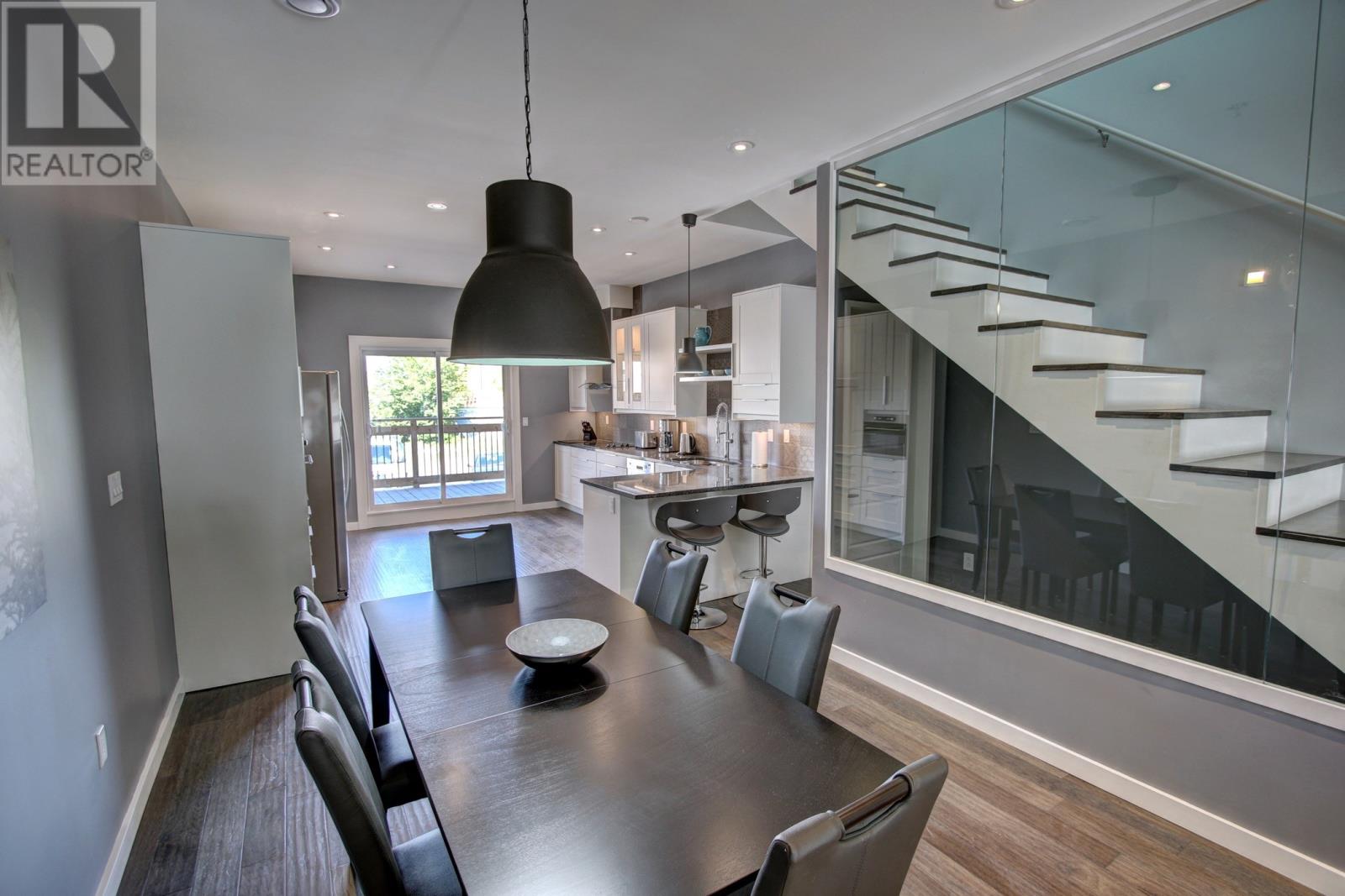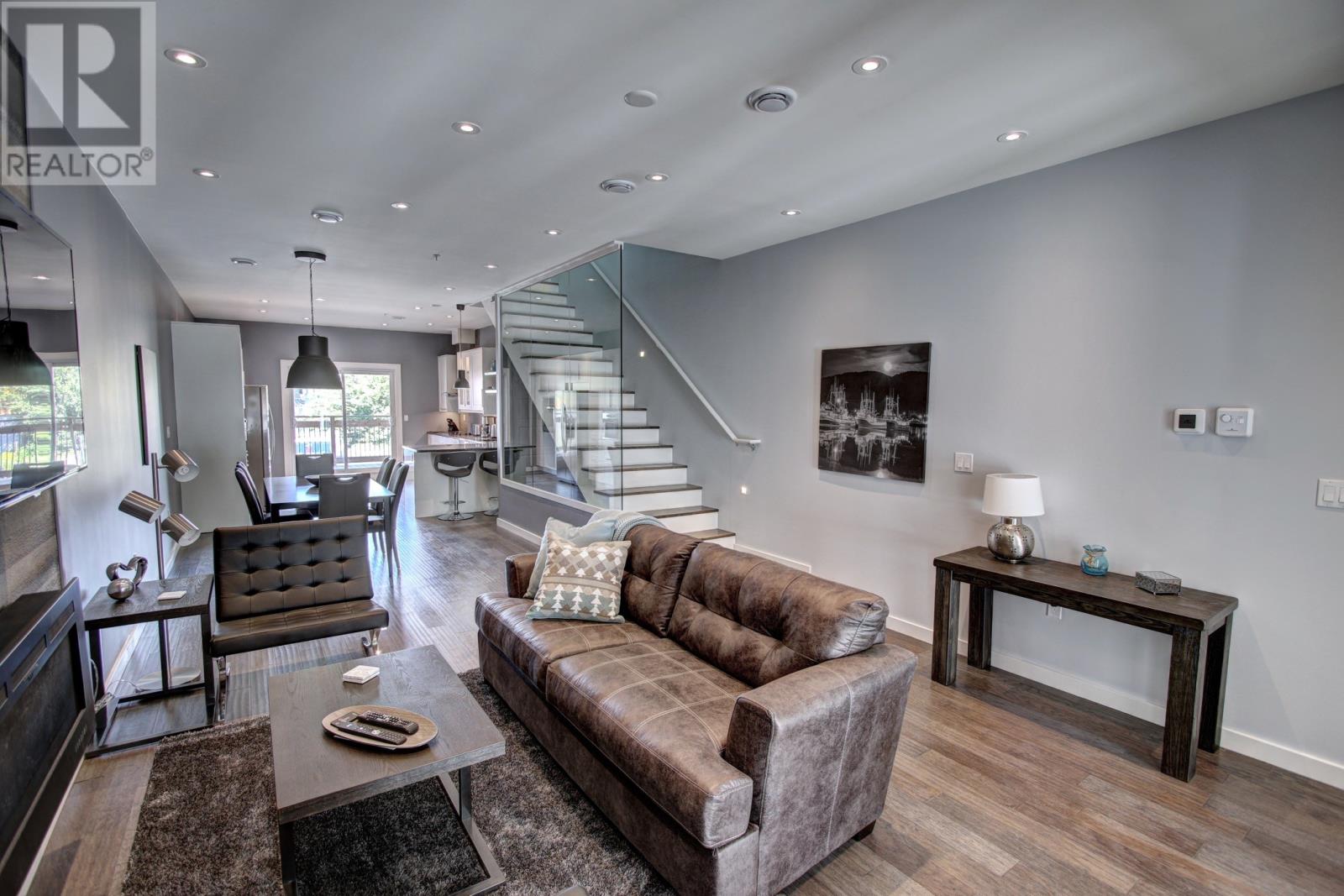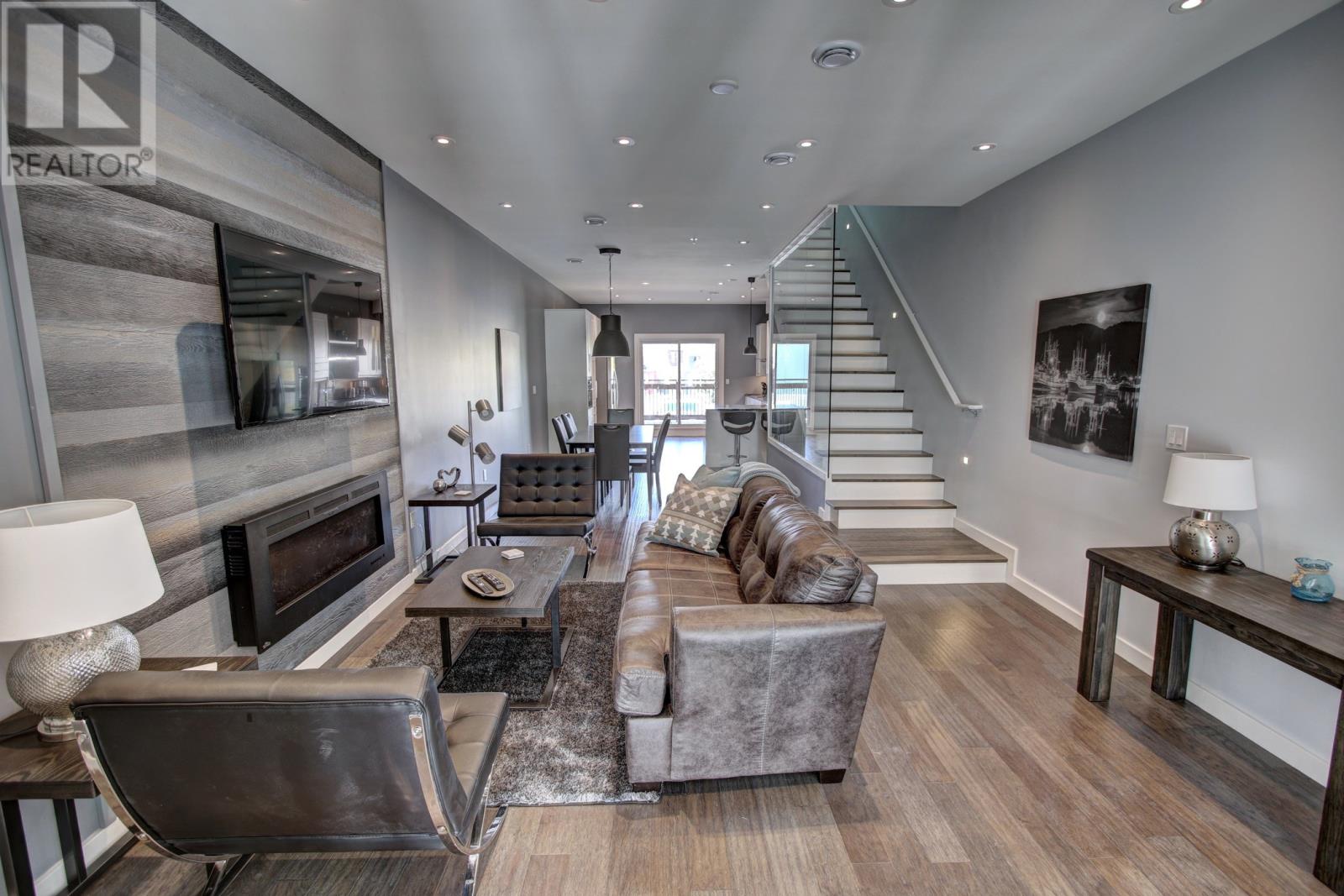 One of a kind, high end executive 2 bedroom, 2 and 1 half bath, self contained, open concept town homes located 5 minutes walk from the downtown core. Each unit has an in house garage and a private roof top deck. With high end finishes this home is perfect for the professional who wants that downtown quintessential living. Equipped with heat pump, air conditioning, security systems and outside cameras. Each bedroom has an en suite bath and their own deck. Main floor has a two piece bath for your guest`s convenience. With high ceilings throughout, this home has a spacious feeling. Finishes include hardwoods, ceramic and quartz. Perfect for entertaining and cozy living with a New York vibe. Renting completely furnished and equipped. Located close to shopping, restaurants, and recreation. Call today for your private viewing. This home has to be seen to be appreciated. . Listing agent is a co-owner of this property. (id:58149)