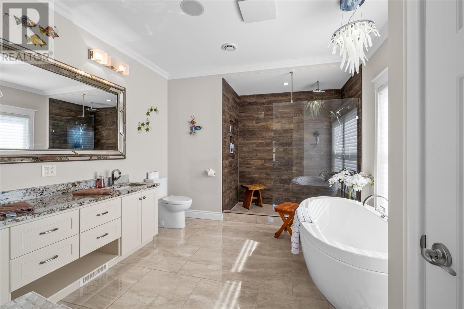 WOW! Unparalleled Views in Torbay! From every window, enjoy breathtaking panoramic viewsâoverlooking the Town of Torbay, sparkling ponds, the ocean, vibrant sunsets, and twinkling night lights. Watch fireworks across the region, planes and helicopters taking off from St. Johnâs International Airport, and even Cabot Tower in the distance. Youâll never run out of scenery to enjoy in this spectacular home. Offering over 6,000 sq. ft. of developed space, this property also includes a self-contained guest suite above the triple detached garage. ? Highlights & Features: 6 spacious bedrooms & 4 full bathrooms (some with granite countertops, tiled showers, and heated floors) Gourmet chefâs kitchen with granite countertops & top-of-the-line appliances with a breakfast bar. Media/theatre room & walkout basement with rec room, games area, and exterior hot tub (covered with outdoor speakers for privacy & year-round enjoyment) Primary suite with dream ensuite & huge walk-in closet Living room with sweeping views from every angle, propane fireplaces, study/family room for cozy evenings, and separate dining room (currently used as a bedroom) Garages galore: Double attached + Triple detached (detached separately metered, fully finished) â perfect for hobbyists, storage, or a private retreat Generac generator, outdoor fireplace, tons of paved parking High-end hardwood & porcelain tile flooring with some in-floor heating Covered patios to relax with your favorite beverage Energy efficient: Heat pumps, mini-splits, blown-in Spyder foam insulation, and 400 amp underground service Built with superior craftsmanship and packed with luxury finishes, this home delivers the ultimate blend of comfort, style, and jaw-dropping views. A must-see for anyone seeking the very best in coastal living. Comes complete with separate executive suite. Great for the growing teenager or young adult or parents. (id:58149)