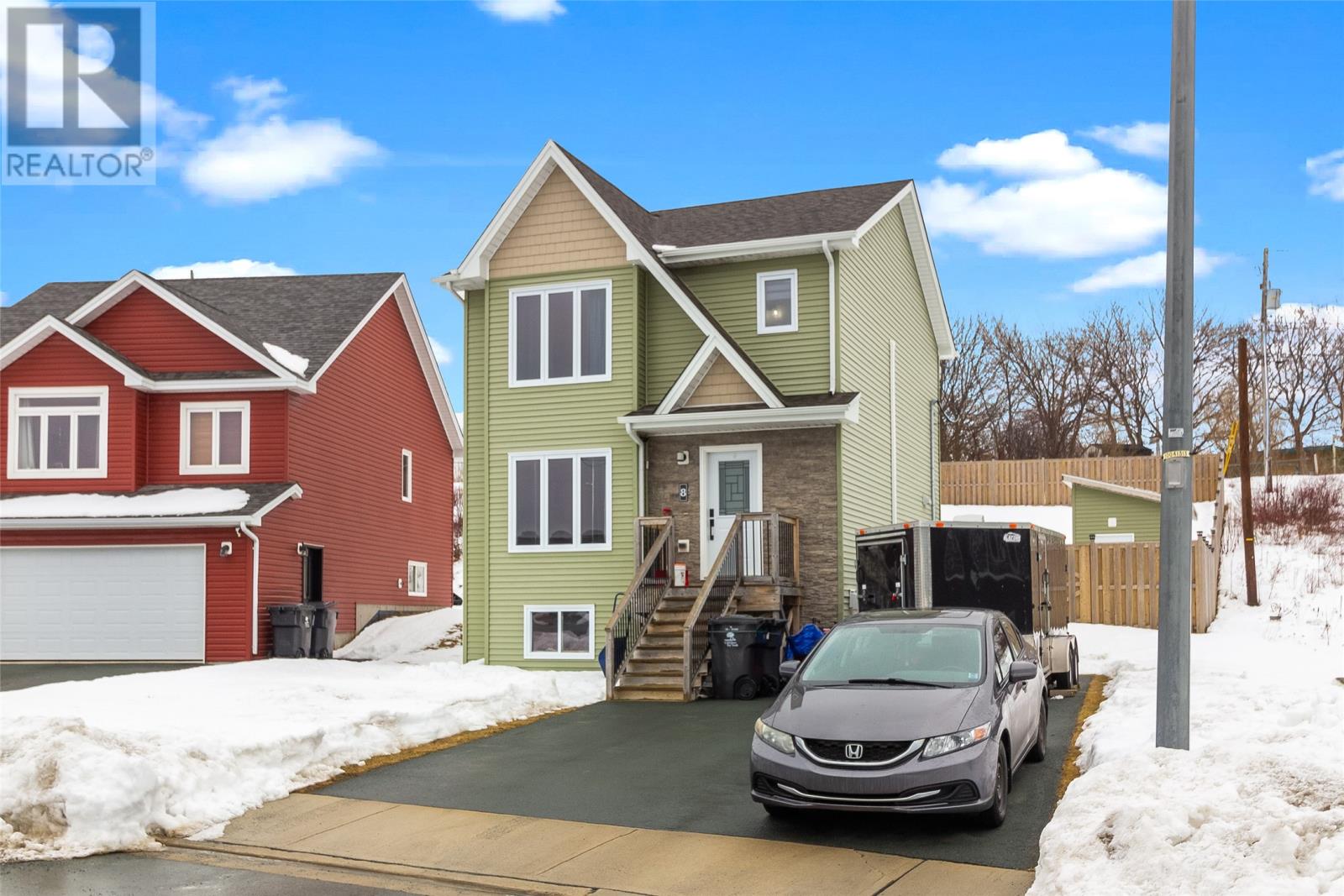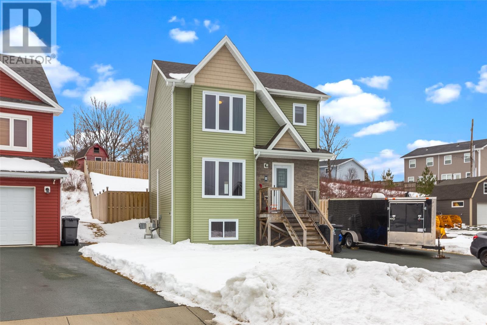 Welcome to 8 Rosegate Place in beautiful Chamberlains, CBS. This fully developed 3-bedroom, 3-bathroom home offers everything you need to live comfortably and maintenance-free for years to come. Situated on a fully fenced lot with a spacious backyard and storage shed, this property also boasts breathtaking views of Conception Bay. Step inside to a bright white kitchen featuring an open-concept layout, perfect for entertaining or keeping an eye on the family while you cook. A mini-split heat pump ensures efficient heating and cooling year-round, with an additional unit installed on the second floor for added comfort. Upstairs you will find three well-sized bedrooms, including a spacious primary suite complete with a walk-in closet and private ensuite. The lower level features a cozy rec room currently under construction and scheduled for completion prior to closing, offering additional living space for your growing family. Just steps from your front door, enjoy access to Conception Bay â ideal for kayaking enthusiasts or peaceful seaside walks. The Chamberlains walking trail is located at the foot of the road, perfect for trail walks with your furry companions or simply soaking in the fresh coastal air. This is an incredible opportunity to own in one of CBSâs most scenic and sought-after areas. Donât miss your chance to call 8 Rosegate Place home. There will be no conveyance of any written signed offers prior to 4:00 PM on Sunday, February 22, 2026. Offers to remain open until 9:00 PM on Sunday, February 22, 2026. (id:58149)
