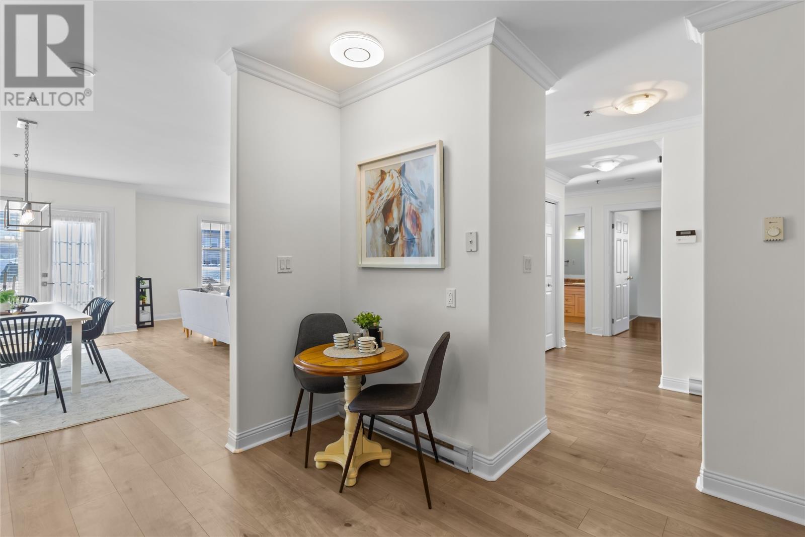 Are you done with snow? You should be! No more shovelling. No more scraping. Just easy living. Located in the heart of the highly sought-after Churchill Square neighbourhood, this ground-floor corner unit offers the perfect blend of convenience and comfort. Within walking distance to Memorial University, Health Sciences Centre, — plus shopping, restaurants, and beautiful nearby walking trails. Oversized windows fill the space with natural light, creating a bright and welcoming atmosphere. The well-designed layout features an eat-in kitchen that flows into the open-concept living and dining area — perfect for everyday living and entertaining. Unit Features: 2 bedrooms, Primary with ensuite, Full main bath, In-unit laundry with storage, Private exterior access, TWO underground garage parking spaces, Additional storage unit, Professionally managed by highly regarded condo corporation, Freshly painted and move-in ready. Enjoy all the benefits of condominium living. As per The Sellers Directive, there will be no conveyance of any written signed offers until Tuesday March 10th at 2pm and left open until 7pm Tuesday March 10th for acceptance. (id:58149)