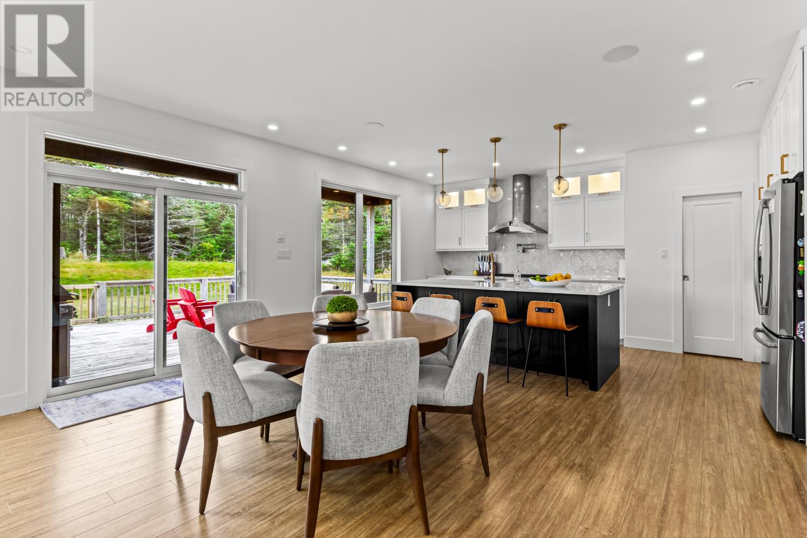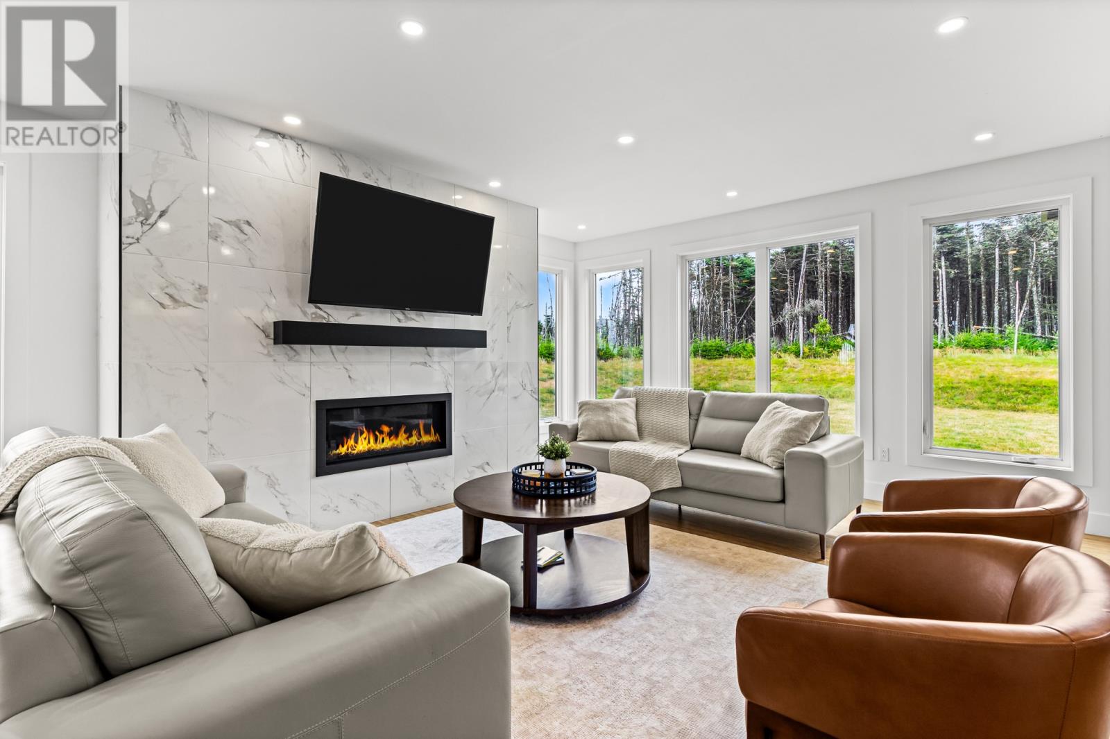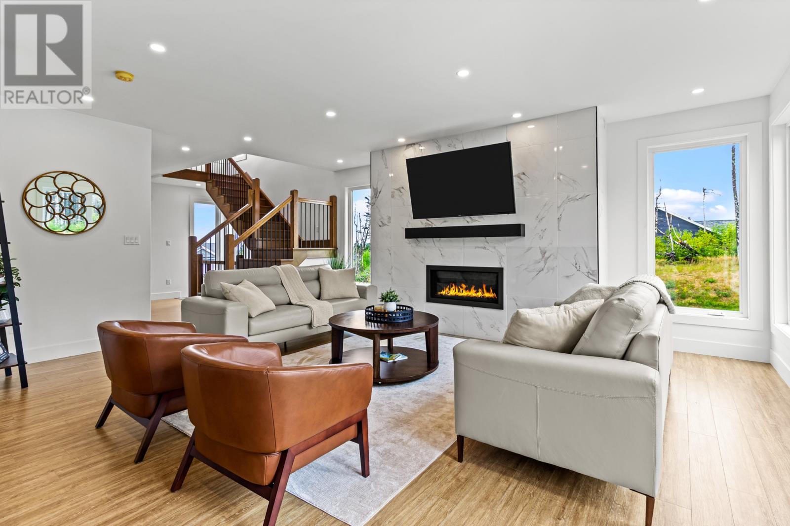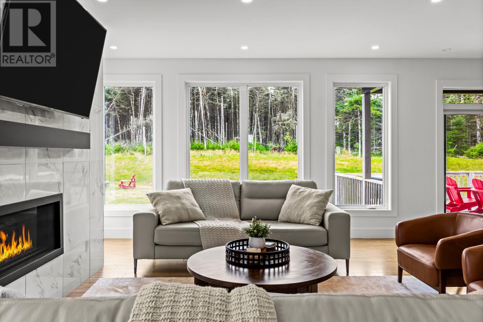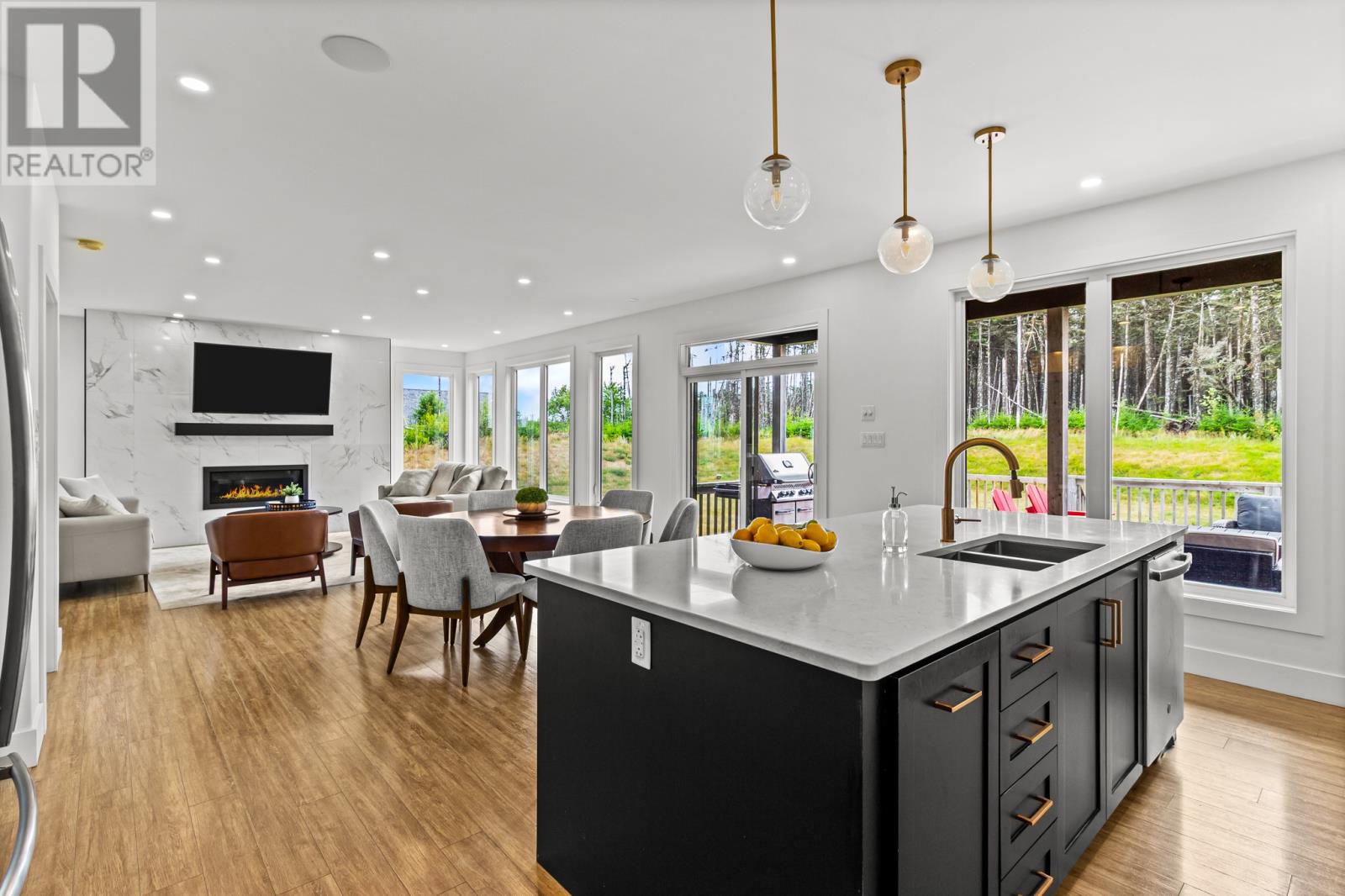 Welcome to your dream home nestled in the breathtaking surroundings of Outer Cove. Situated on a meticulously landscaped 1-acre lot, this executive 2-storey home offers the perfect blend of privacy, modern luxury, and thoughtful design. Step into a bright and airy foyer that leads to a stunning hardwood staircase and an open-concept main floor flooded with natural light from floor-to-ceiling windows. The spacious living and dining area is anchored by a striking tiled accent wall with a propane fireplace, creating a cozy yet elegant space for entertaining or relaxing. The chef-inspired kitchen is a showstopperâfeaturing quartz countertops, a large island with a double stainless-steel sink, integrated recycling and garbage pull-outs, a gas range, double wall ovens, and a walk-in pantry. A custom coffee and wine bar with glass display cabinetry and a built-in bar fridge completes the space. From here, step out to your private, partially covered deckâperfect for quiet mornings or evening gatherings. Upstairs, you`ll find three spacious bedrooms including a luxurious primary suite with a spa-like ensuite: enjoy a pedestal tub, a double tiled shower, and a walk-through custom closet designed for optimal organization. The fully finished basement offers even more living space with a large rec room warmed by a wood stove, a fourth bedroom with a walk-in closet, and a full bathroom. A private staircase leads to the double garage, which includes its own mini-split system and direct access to a mudroom and the back porchâan ideal setup for busy families or guests. This property is a rare find in Outer Coveâprivate, stylish, and packed with features for comfort and convenience. (id:58149)