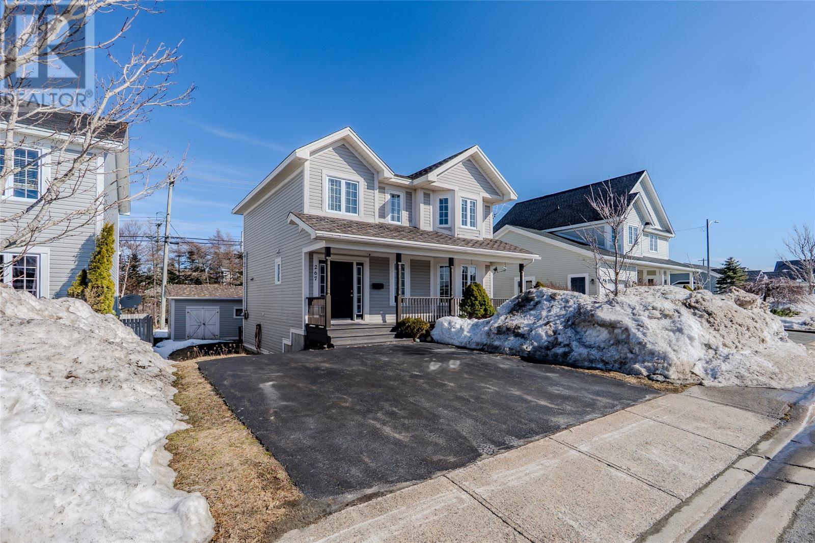 Welcome to 267 Stavanger Drive, a beautifully maintained two-storey home located in the highly sought-after Clovelly Estates in the east end of St. John’s. From the moment you arrive, the inviting curb appeal and cozy front porch create a warm and welcoming first impression. Step inside to discover gleaming hardwood floors throughout the main level and a bright, spacious living room that flows seamlessly into the open-concept kitchen and dining area. The beautiful kitchen features modern white cabinetry and stainless steel appliances, creating a stylish and functional space for everyday living and entertaining. Just off the dining area, you’ll find a cozy built-in electric fireplace, adding warmth and charm to the main living space. The main floor also offers the convenience of a laundry room and a powder room. Upstairs, you will find three generously sized bedrooms and the main bathroom. The spacious primary bedroom features a walk-in closet and a large ensuite complete with a separate shower and corner jacuzzi tub—perfect for relaxing and unwinding at the end of the day. The lower level provides additional living space with a large rec room, a bonus room, an unfinished bathroom with a new shower enclosure included, and a spacious utility room with access to the backyard. Outside, enjoy a great-sized patio, a 12x16 storage shed, and a backyard that backs onto a treed backdrop providing added privacy, making it a great place for BBQs, kids, pets, or quiet evenings at home. Conveniently located near shopping, golf course, schools, parks, walking trails, and bus routes, this beautiful home offers the perfect blend of comfort, functionality, and a fantastic location. As per Seller’s Direction, there will be no conveyance of offers until Wednesday, March 18 at 6:00 PM. Offers to remain open until 11:00 PM the same day. (id:58149)