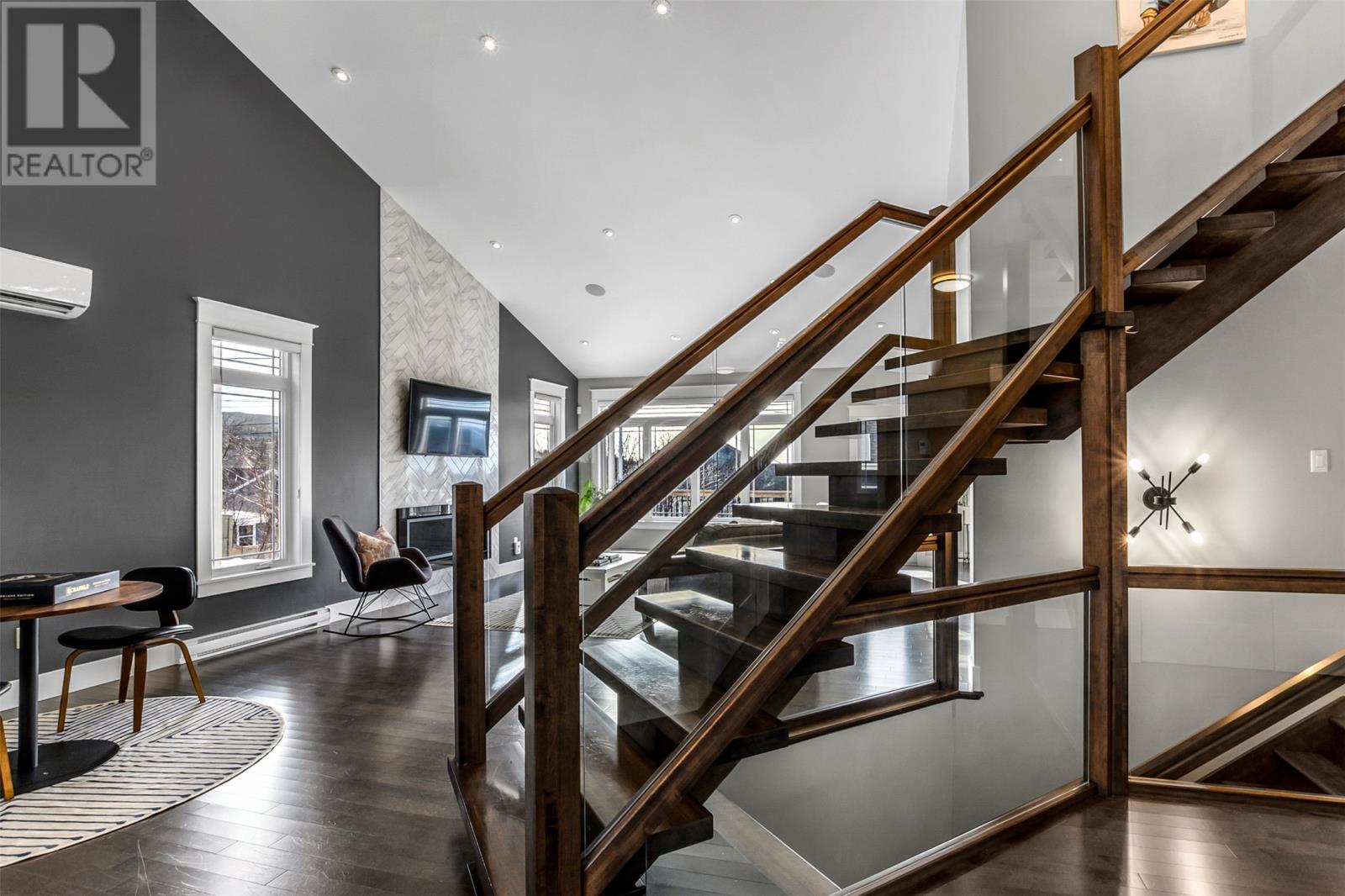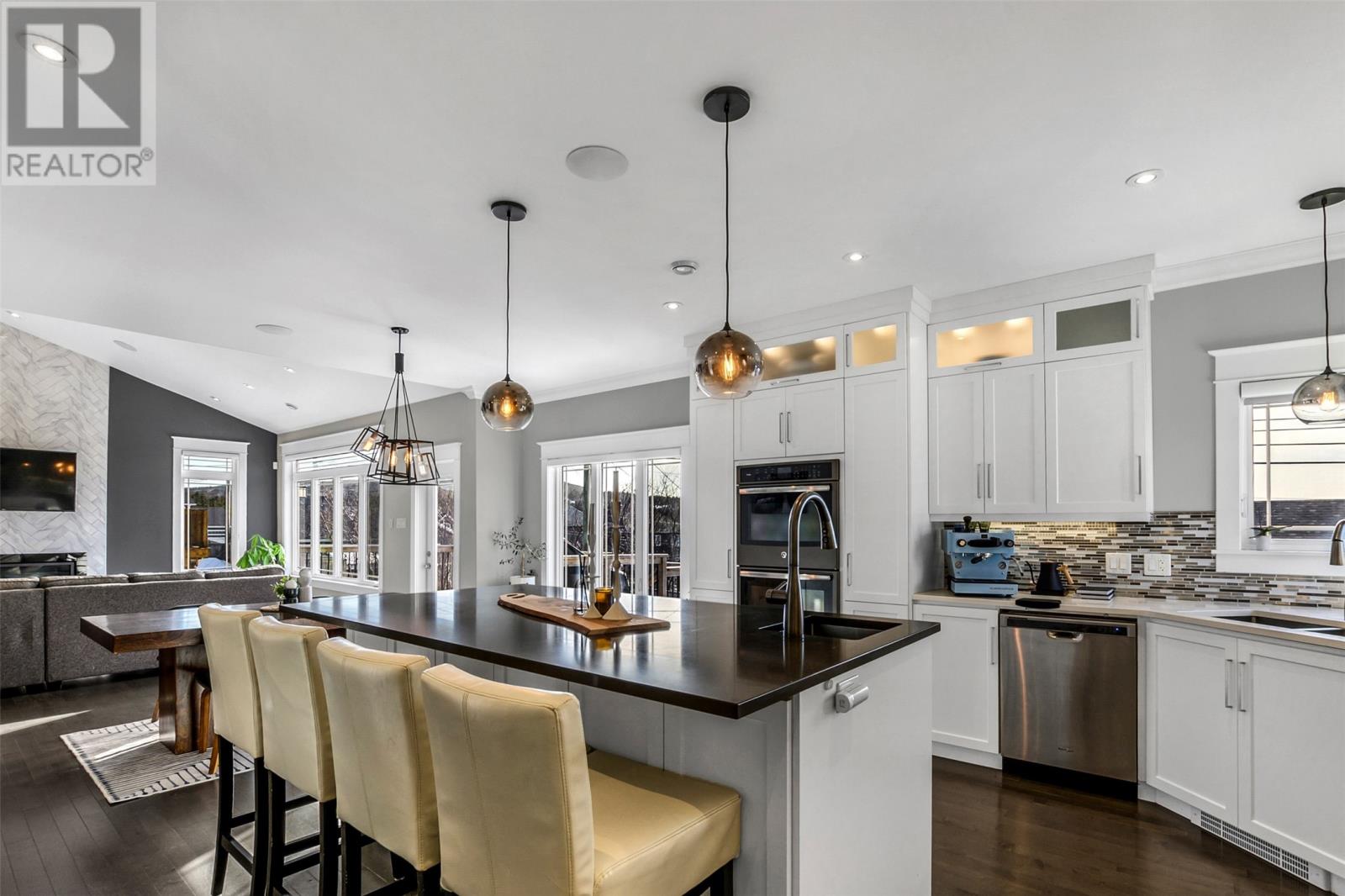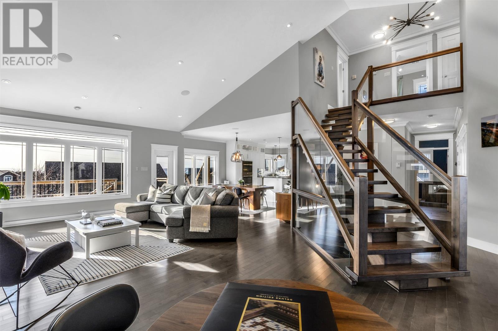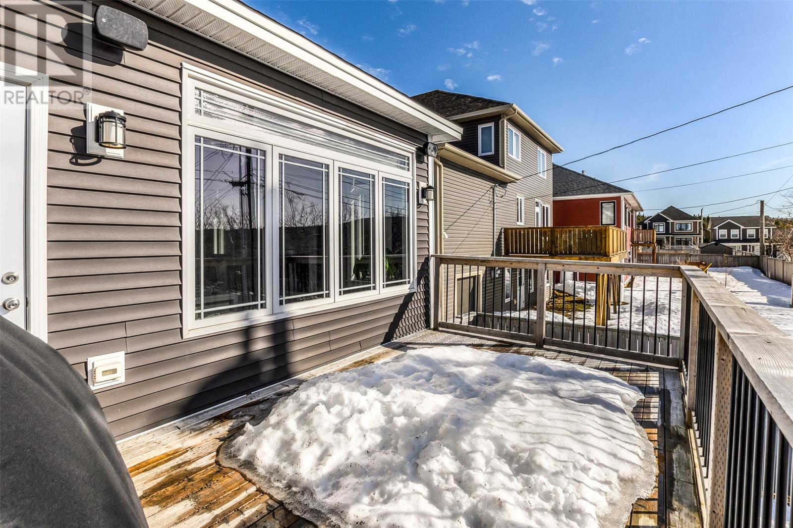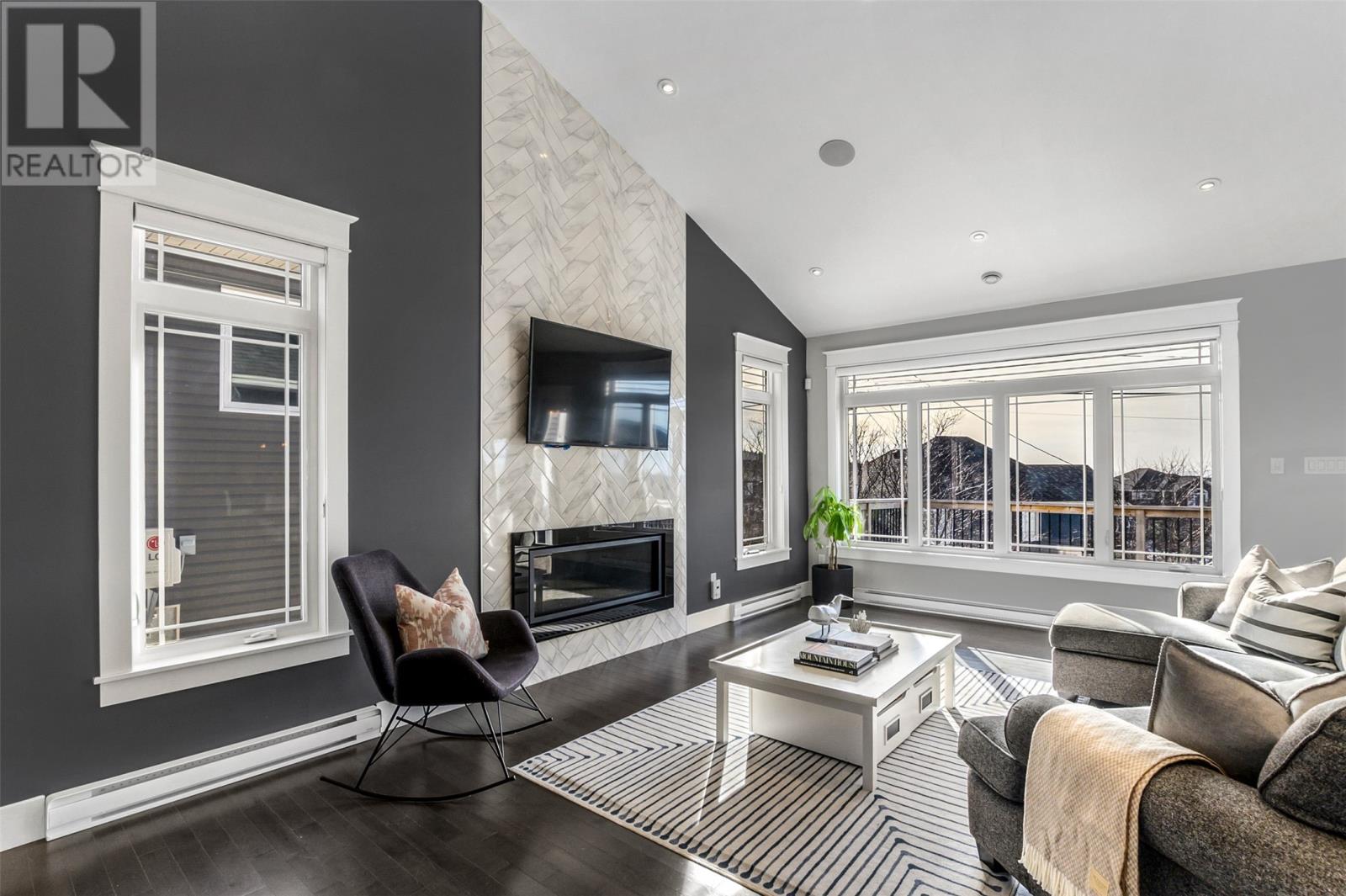 Absolutely stunning custom-built two-storey home with a two-car attached garage, located in Island View Estates and offering panoramic ocean views of Bell Island and Conception Bay. The bright main floor features vaulted ceilings and expansive windows that fill the space with an abundance of natural light. Designed with an open-concept layout, the main level includes a spacious living room with an elegant propane fireplace, a dining area, and a gourmet chefâs kitchen featuring ceiling-height cabinetry, quartz countertops, stainless steel appliances, a stylish backsplash, and a large island with access to the rear patio. A cozy den (currently used as a home office), powder room, and convenient laundry room with a custom tiled dog bath complete the main floor. An exquisite custom-built staircase leads to the upper level, which houses three spacious bedrooms and a main four-piece bathroom. The oversized primary retreat features a walk-in closet, a spa-inspired four-piece ensuite with double vanity and glass shower, and a private balcony to take in the incredible views. The fully developed, bright walk-out basement features large windows and includes a recreation room, sauna, fourth bedroom (currently used as a home gym), bonus room (currently used for storage), a four-piece bathroom, and ample storage space. This immaculate home is complete with two mini-split systems for efficient heating and cooling, heated flooring in the bathrooms, and custom-made Hunter Douglas window coverings throughout. Sure to impress! No conveyence of offers until Monday, March 23 @ 4:00pm and left open for acceptance unitl 9:00pm the same day (id:58149)