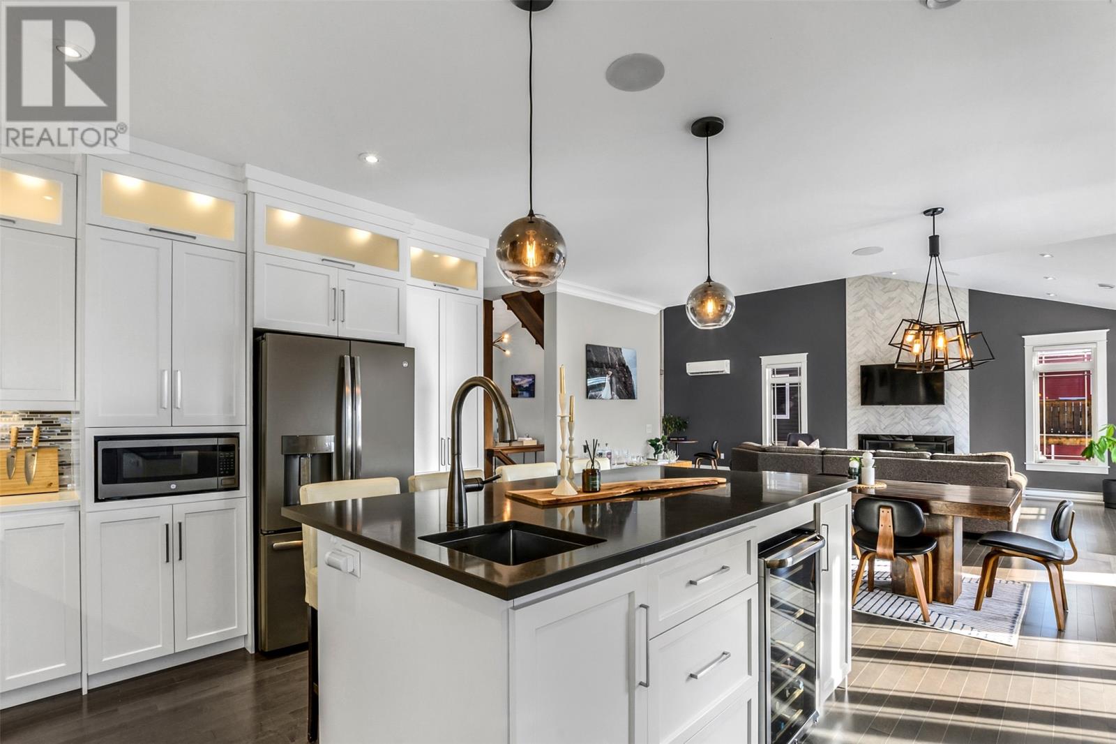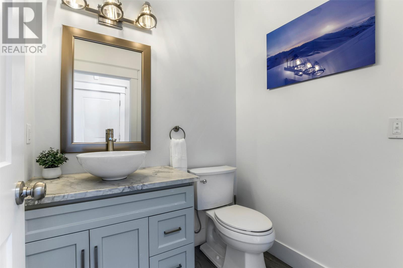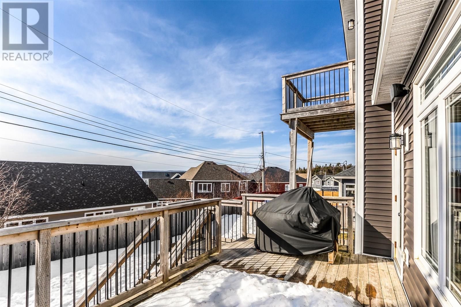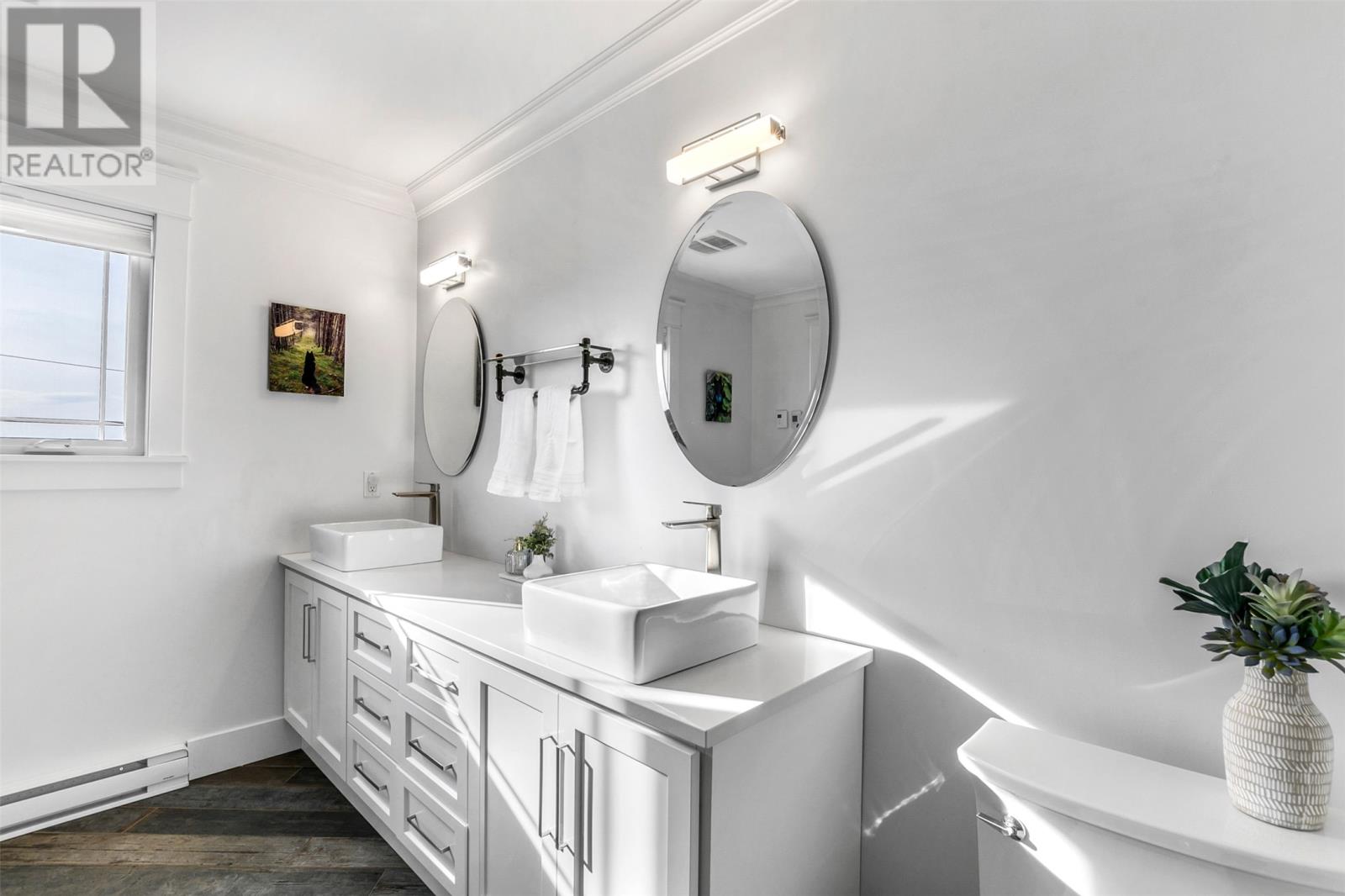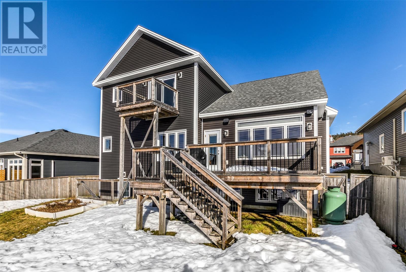 Absolutely stunning custom-built two-storey home with a two-car attached garage, located in Island View Estates and offering panoramic ocean views of Bell Island and Conception Bay. The bright main floor features vaulted ceilings and expansive windows that fill the space with an abundance of natural light. Designed with an open-concept layout, the main level includes a spacious living room with an elegant propane fireplace, a dining area, and a gourmet chefâs kitchen featuring ceiling-height cabinetry, quartz countertops, stainless steel appliances, a stylish backsplash, and a large island with access to the rear patio. A cozy den (currently used as a home office), powder room, and convenient laundry room with a custom tiled dog bath complete the main floor. An exquisite custom-built staircase leads to the upper level, which houses three spacious bedrooms and a main four-piece bathroom. The oversized primary retreat features a walk-in closet, a spa-inspired four-piece ensuite with double vanity and glass shower, and a private balcony to take in the incredible views. The fully developed, bright walk-out basement features large windows and includes a recreation room, sauna, fourth bedroom (currently used as a home gym), bonus room (currently used for storage), a four-piece bathroom, and ample storage space. This immaculate home is complete with two mini-split systems for efficient heating and cooling, heated flooring in the bathrooms, and custom-made Hunter Douglas window coverings throughout. Sure to impress! No conveyence of offers until Monday, March 23 @ 4:00pm and left open for acceptance unitl 9:00pm the same day (id:58149)