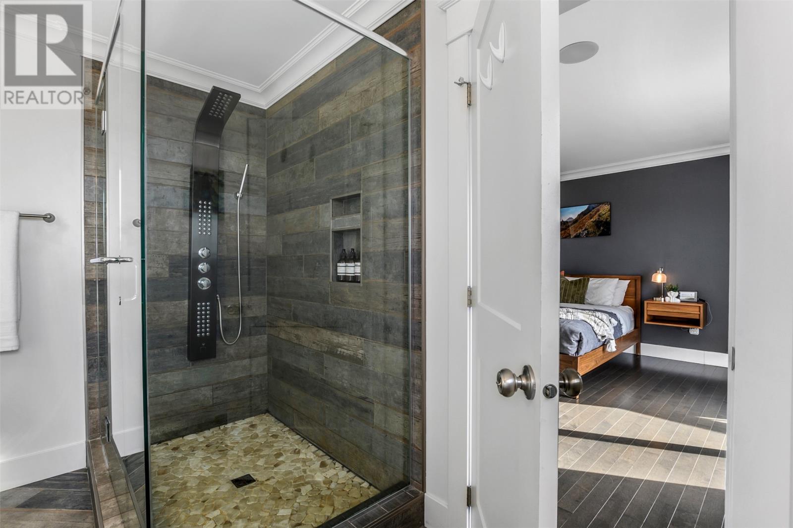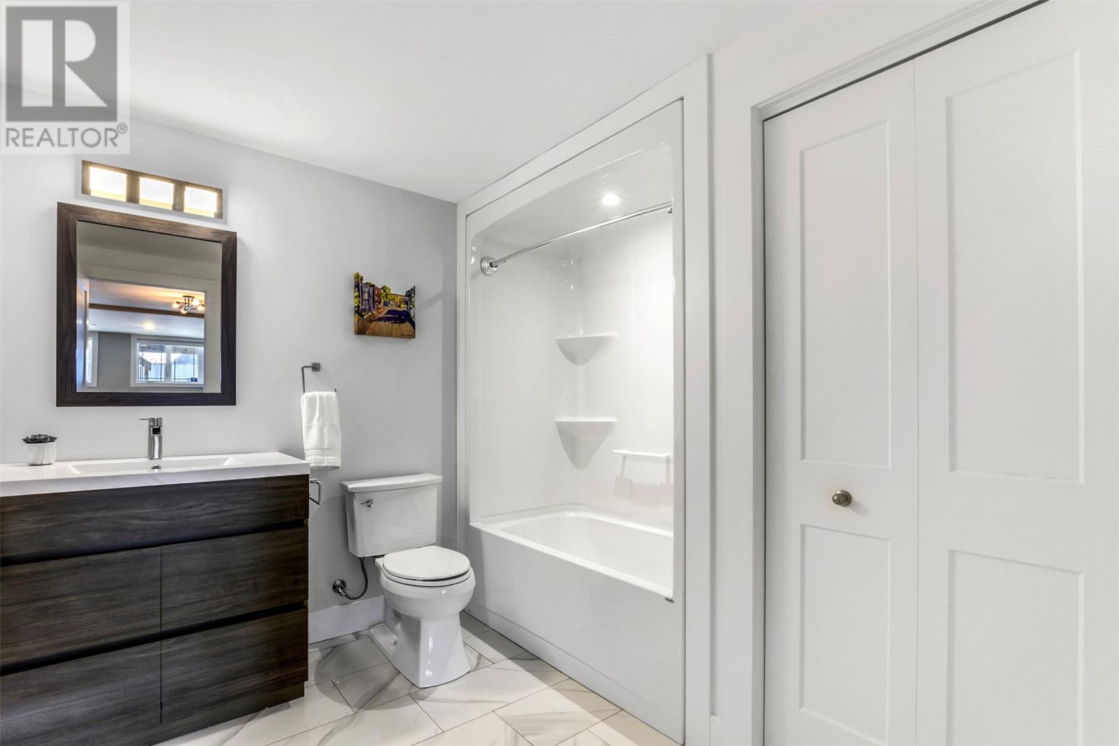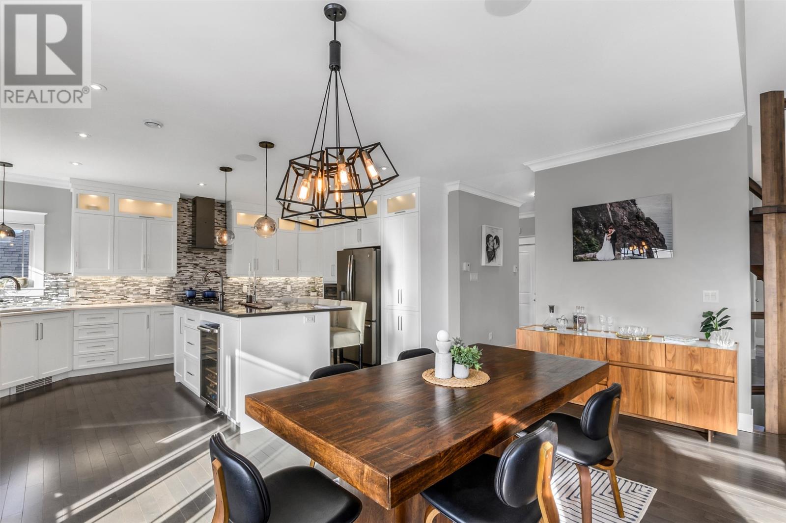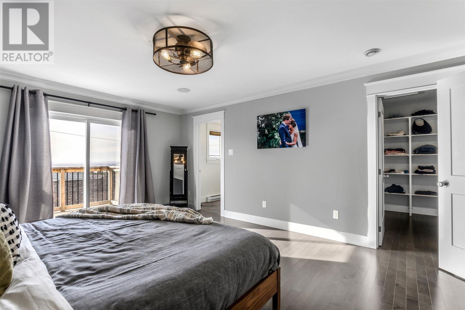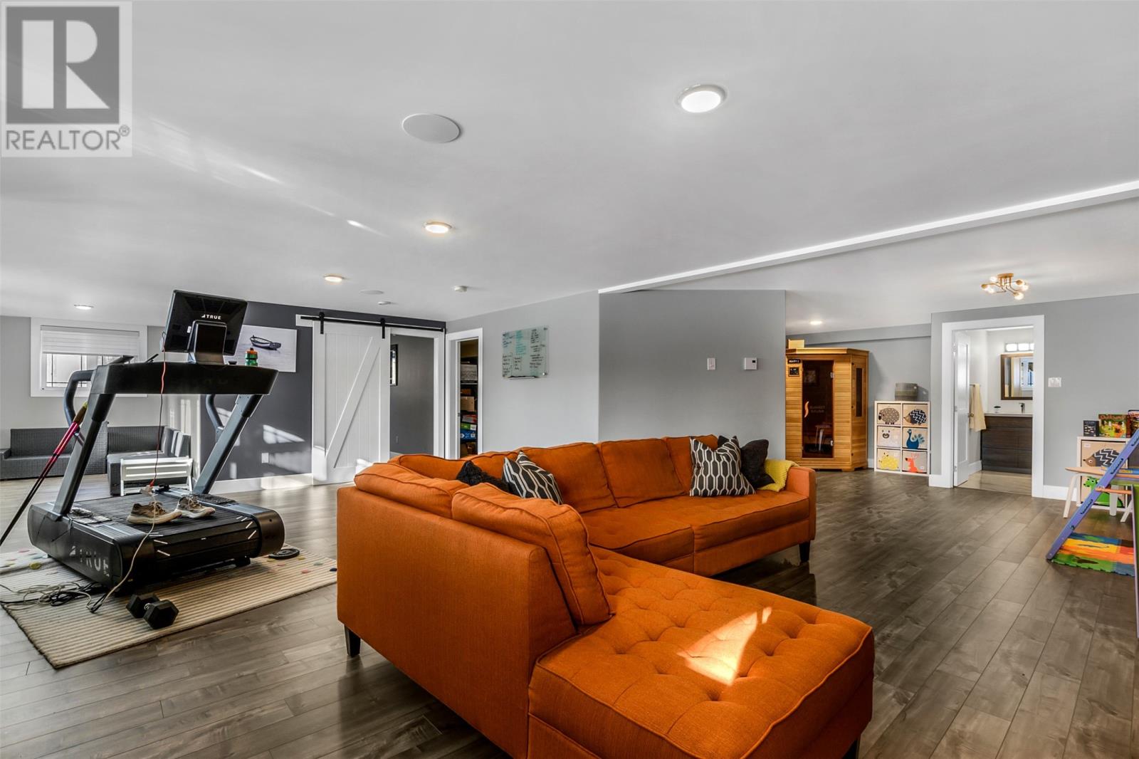 Absolutely stunning custom-built two-storey home with a two-car attached garage, located in Island View Estates and offering panoramic ocean views of Bell Island and Conception Bay. The bright main floor features vaulted ceilings and expansive windows that fill the space with an abundance of natural light. Designed with an open-concept layout, the main level includes a spacious living room with an elegant propane fireplace, a dining area, and a gourmet chefâs kitchen featuring ceiling-height cabinetry, quartz countertops, stainless steel appliances, a stylish backsplash, and a large island with access to the rear patio. A cozy den (currently used as a home office), powder room, and convenient laundry room with a custom tiled dog bath complete the main floor. An exquisite custom-built staircase leads to the upper level, which houses three spacious bedrooms and a main four-piece bathroom. The oversized primary retreat features a walk-in closet, a spa-inspired four-piece ensuite with double vanity and glass shower, and a private balcony to take in the incredible views. The fully developed, bright walk-out basement features large windows and includes a recreation room, sauna, fourth bedroom (currently used as a home gym), bonus room (currently used for storage), a four-piece bathroom, and ample storage space. This immaculate home is complete with two mini-split systems for efficient heating and cooling, heated flooring in the bathrooms, and custom-made Hunter Douglas window coverings throughout. Sure to impress! No conveyence of offers until Monday, March 23 @ 4:00pm and left open for acceptance unitl 9:00pm the same day (id:58149)