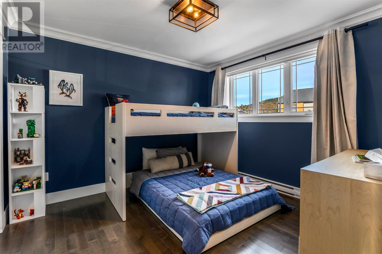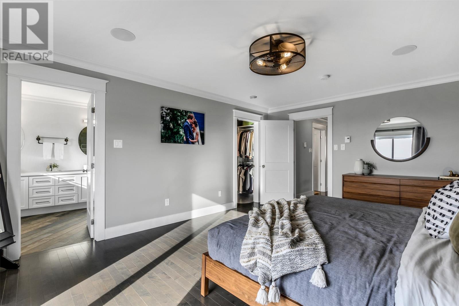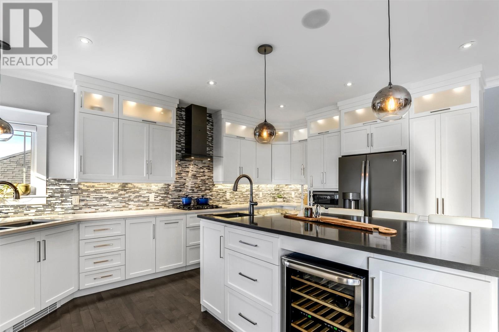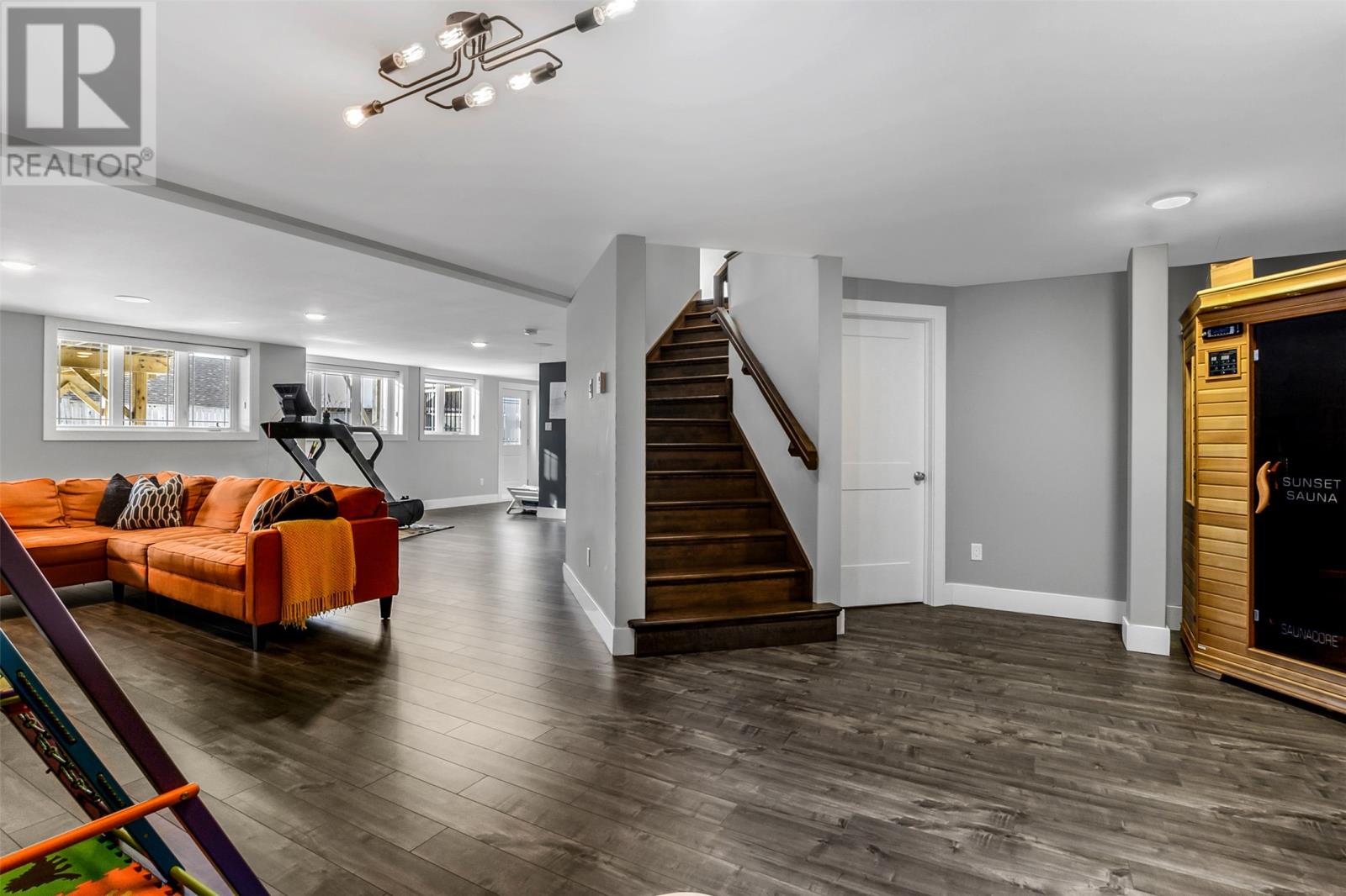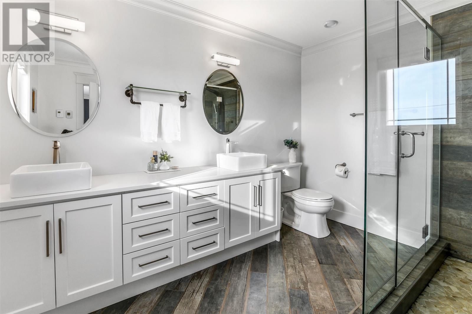 Absolutely stunning custom-built two-storey home with a two-car attached garage, located in Island View Estates and offering panoramic ocean views of Bell Island and Conception Bay. The bright main floor features vaulted ceilings and expansive windows that fill the space with an abundance of natural light. Designed with an open-concept layout, the main level includes a spacious living room with an elegant propane fireplace, a dining area, and a gourmet chefâs kitchen featuring ceiling-height cabinetry, quartz countertops, stainless steel appliances, a stylish backsplash, and a large island with access to the rear patio. A cozy den (currently used as a home office), powder room, and convenient laundry room with a custom tiled dog bath complete the main floor. An exquisite custom-built staircase leads to the upper level, which houses three spacious bedrooms and a main four-piece bathroom. The oversized primary retreat features a walk-in closet, a spa-inspired four-piece ensuite with double vanity and glass shower, and a private balcony to take in the incredible views. The fully developed, bright walk-out basement features large windows and includes a recreation room, sauna, fourth bedroom (currently used as a home gym), bonus room (currently used for storage), a four-piece bathroom, and ample storage space. This immaculate home is complete with two mini-split systems for efficient heating and cooling, heated flooring in the bathrooms, and custom-made Hunter Douglas window coverings throughout. Sure to impress! No conveyence of offers until Monday, March 23 @ 4:00pm and left open for acceptance unitl 9:00pm the same day (id:58149)