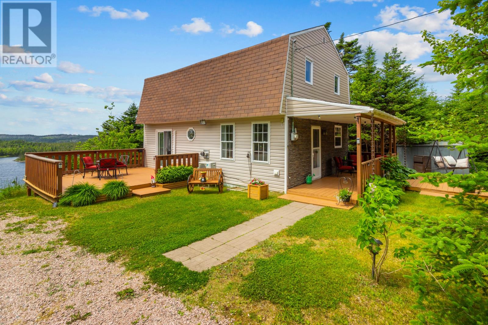 Beautiful waterfront property on Pioneer Line, Salmonier! This picturesque property, situated on an acre lot checks all the boxes! Beautiful lush grounds with plenty of privacy, stunning water views, and the ideal space for relaxation. Enjoy all this property has to offer year round, with snowmobiling across the pond & trails in the winter, to spending the summer days in the water swimming or boating. Offering a cozy living area with propane fireplace & mini split, fantastic kitchen, and dining room with double doors leading to the patio to take in the exceptional views of Hawco`s Pond. Also on the main is a spacious laundry / storage area, and full bath. Upstairs you`ll find 2 bedrooms, 1/2 bath and a great space to use as an additional living room or space for the kids to hang out. The property also offers an additional front patio surrounded by mature plants & trees; giving instant feelings of a peaceful retreat. At the waters edge there is a large party deck as well as an oversize dock. Ideal for year round living, vacaiton escape or rental income/air bnb. Recent upgrades will give buyers real peace of mind with the following; New well pump, all new water lines running from the well to the connection under the house /water tank. 30 ft heat trace with new electrical line. 60 gallon water pressure tank, Spray foam insulation underneath the cabin, Mini split serviced and replaced fan board, New Hot water heater. Don`t miss this rare opportunity! (id:58149)
