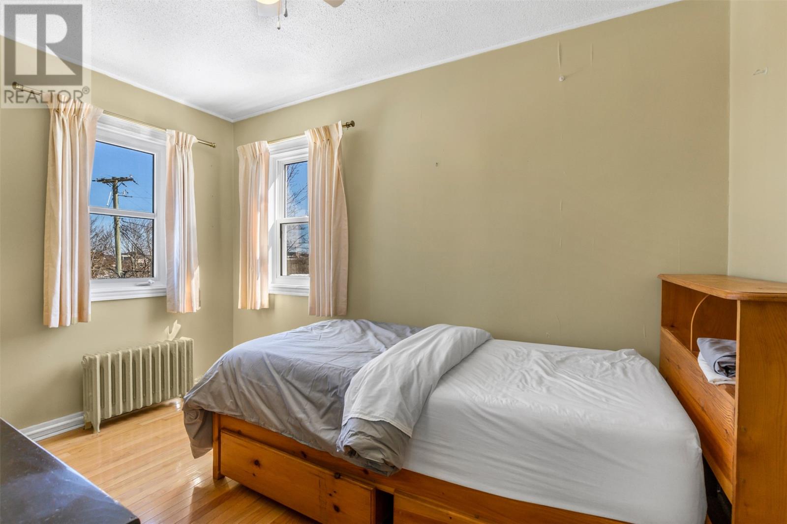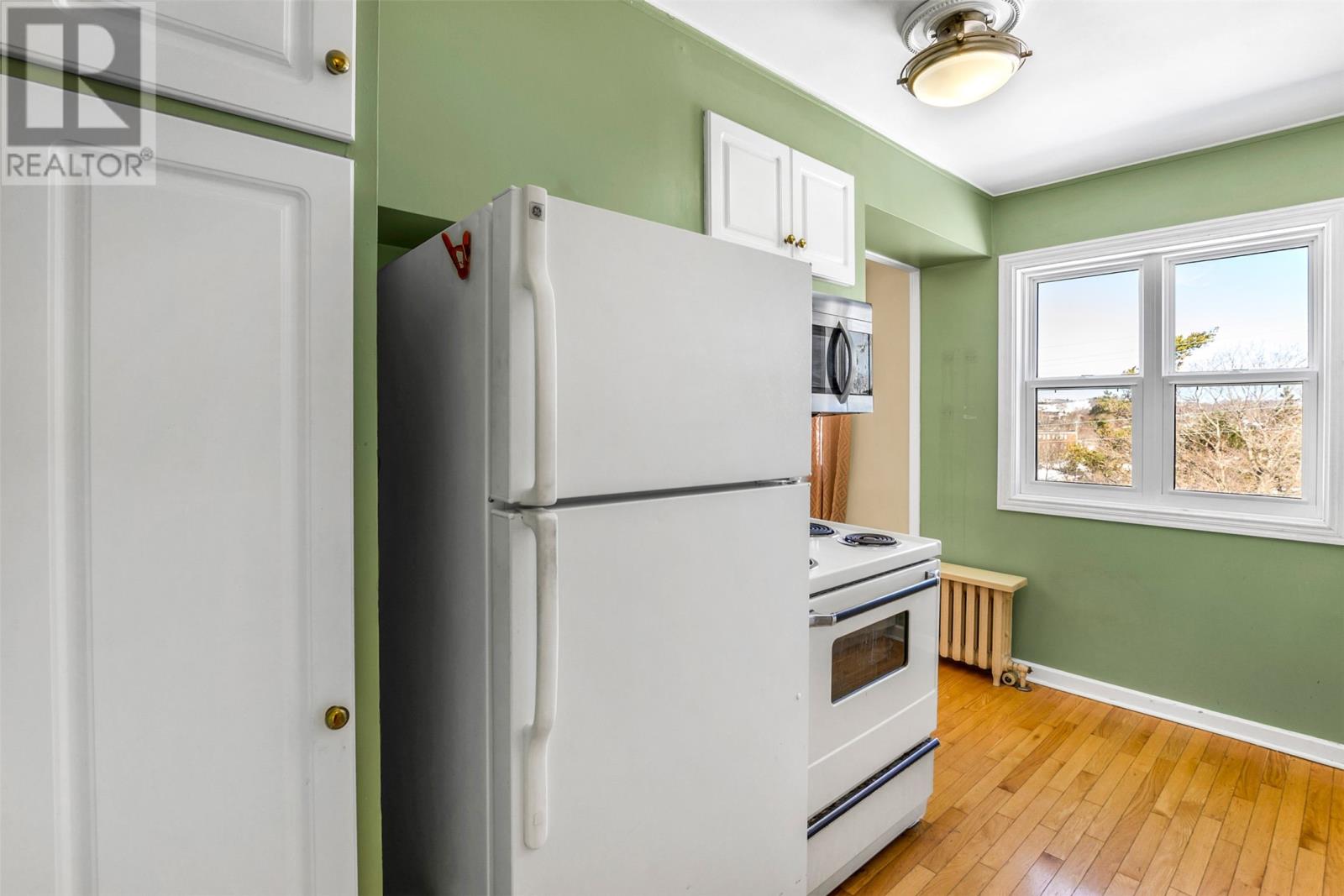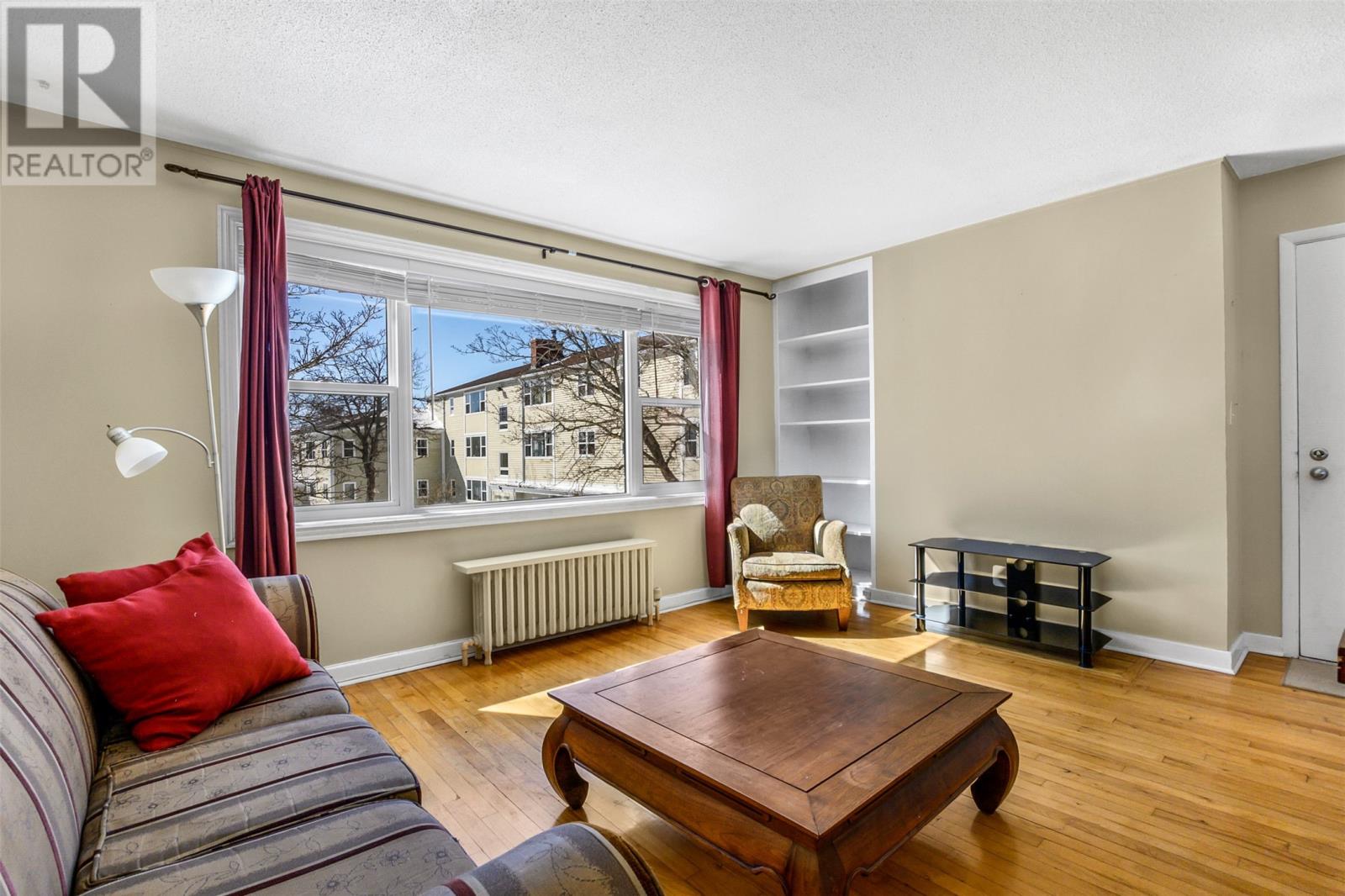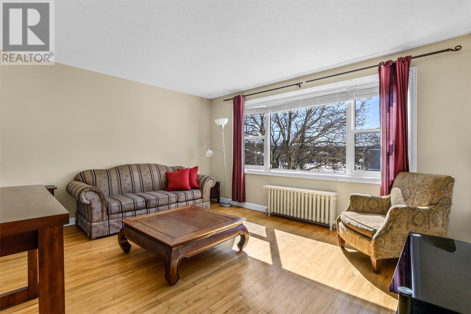 Located at the end of a quiet side street in the heart of Churchill Square, this spacious and exceptionally bright corner-unit condominium presents a rare opportunity to own in one of the cityâs most sought-after neighbourhoodsâat an attractive price point. Situated on the upper level, the unit is flooded with natural light thanks to large windows on three sides, creating a warm and inviting atmosphere throughout. The interior features beautiful hardwood flooring, a timeless white kitchen, a dedicated dining area, and an oversized living room ideal for both relaxing and entertaining. The layout is completed by two well-proportioned bedrooms and a four-piece bathroom. Additional highlights include a convenient and secure 10x12 private storage unit located in the basement, as well as access to on-site laundry facilities. Comfortable hot water radiation heating is included in the condominium fees, offering both efficiency and peace of mind. Perfectly positioned within walking distance to Memorial University, the Health Sciences Centre, the Confederation Building, and the downtown core, this condo is surrounded by scenic walking trails and green spaces. Residents will also enjoy immediate access to all the amenities of Churchill Square, including banking, medical clinics, shopping, and a variety of restaurantsâmaking this an ideal combination of comfort, convenience, and value. No conveyence of offers until Tuesday, April 7 @ 12:00pm (noon) and left open for acceptance until 5:00pm the same day. (id:58149)