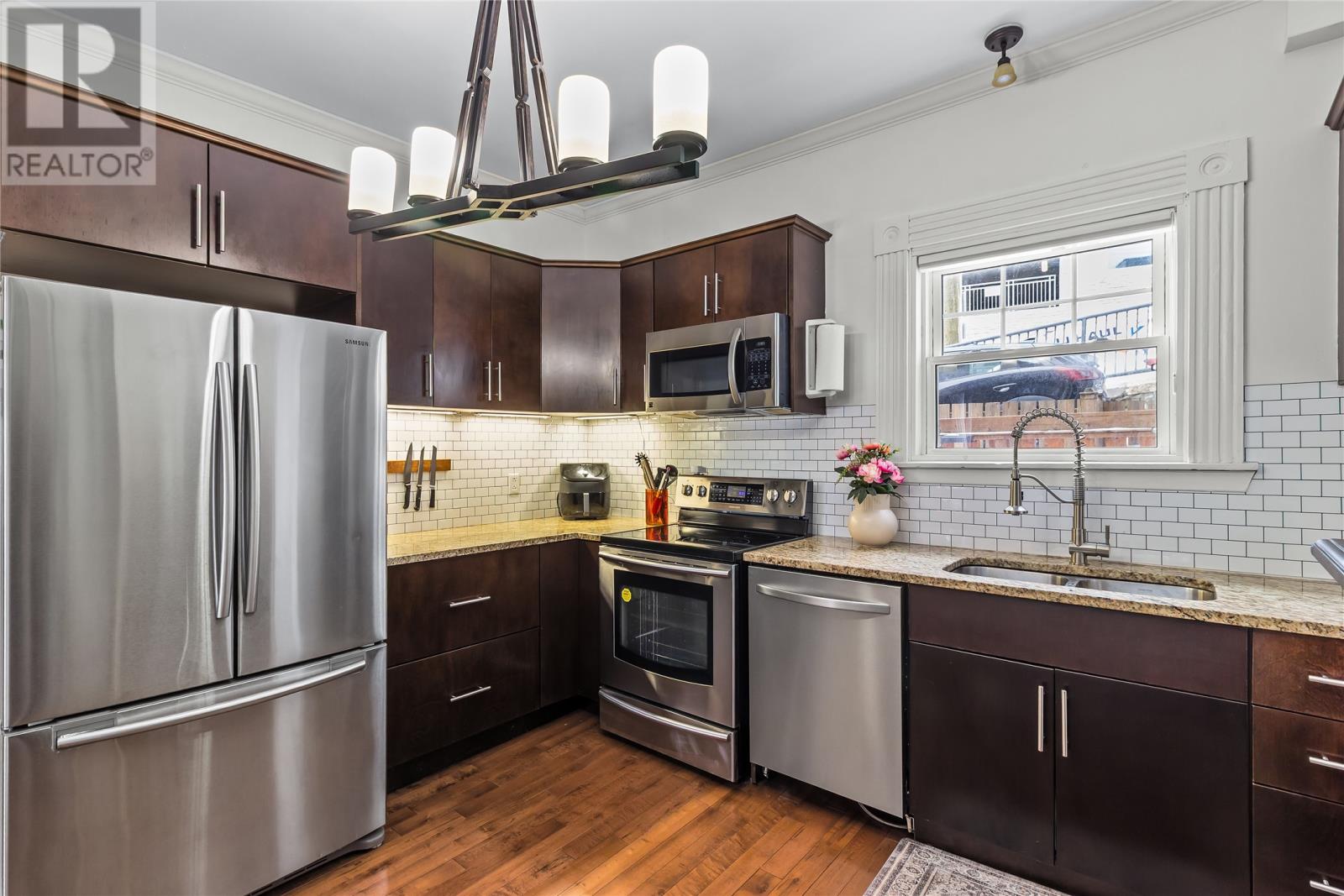 Stunning downtown home located on City Terrace overlooking Duckworth Street. This 4 bedroom, 2.5 bathroom home has hardwood floors, granite kitchen counters, and offstreet parking for 3 vehicles. The mainfloor features a bright living room and dining room, a powder room, and a spacious kitchen. The 2nd floor has two spacious bedrooms and a full bathroom. The 3rd floor has another two good sized bedrooms and a 2nd full bathroom. The basement has concrete floors with a large storage room and a tidy laundry room. Out back there is a small fenced in yard with patio. In the heart of Downtown St. John`s, this property would make a lovely home or a very attractive short-term rental. As per Sellers Directions No Presentation of Offers Until Tuesday April 14th at 12:00pm with offers to remain open until 5pm same day. (id:58149)