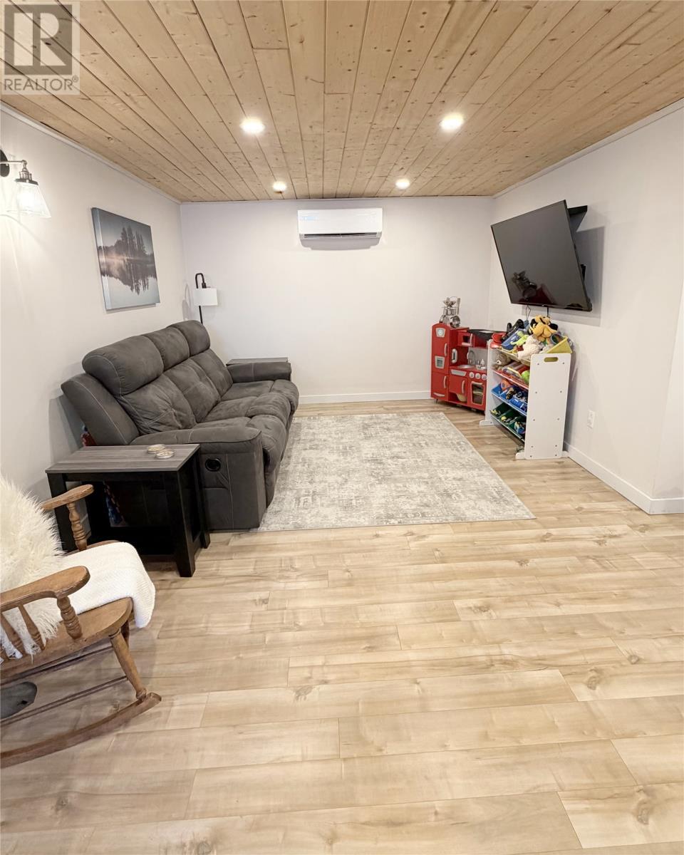 Welcome to this charming and well-updated 2+1-bedroom home, perfectly situated in a family-friendly location next to Gander Academy and one of Gander`s main playgrounds and splash pad. This property offers the ideal blend of comfort, functionality, and character. Step inside to find brand new flooring throughout both the main level, upstairs and downstairs, creating a fresh and modern feel. The living room has a beautiful addition of an electric shiplap fireplace. The home has seen thoughtful upgrades, including improved plumbing and new faucets and light fixtures in parts of the home, many new moldings, fresh paint, and 2 mini split heat pumps. The kitchen is both practical and inviting, featuring an updated island counterâperfect for meal prep or casual dining. Downstairs, youâll appreciate the new addition of a 3-piece bathroom, adding convenience and extra living flexibility. Also downstairs you can cozy up during cooler months with the peace of mind of a WETT-inspected wood stove. The electrical panel was upgraded to a 200 amp in 2018. Outside, enjoy a fully fenced, beautifully maintained mature lotâideal for kids, pets, or simply relaxing in your own private outdoor space. The covered front porch with a porch swing adds the perfect touch of charm, making it a great spot to unwind. A large detached garage is already set up as a fantastic weekend entertaining space with plenty of storage and a mini split heat pump, as well as an additional storage shed providing even more room for tools and outdoor equipment. With a spacious four-car driveway and a prime location close to schools and amenities, this home is ready to welcome its next owners. As per Seller`s Direction, no offers will be presented until 5PM on April 15th, 2026. Please leave all offers open until 10PM the same day. (id:58149)
