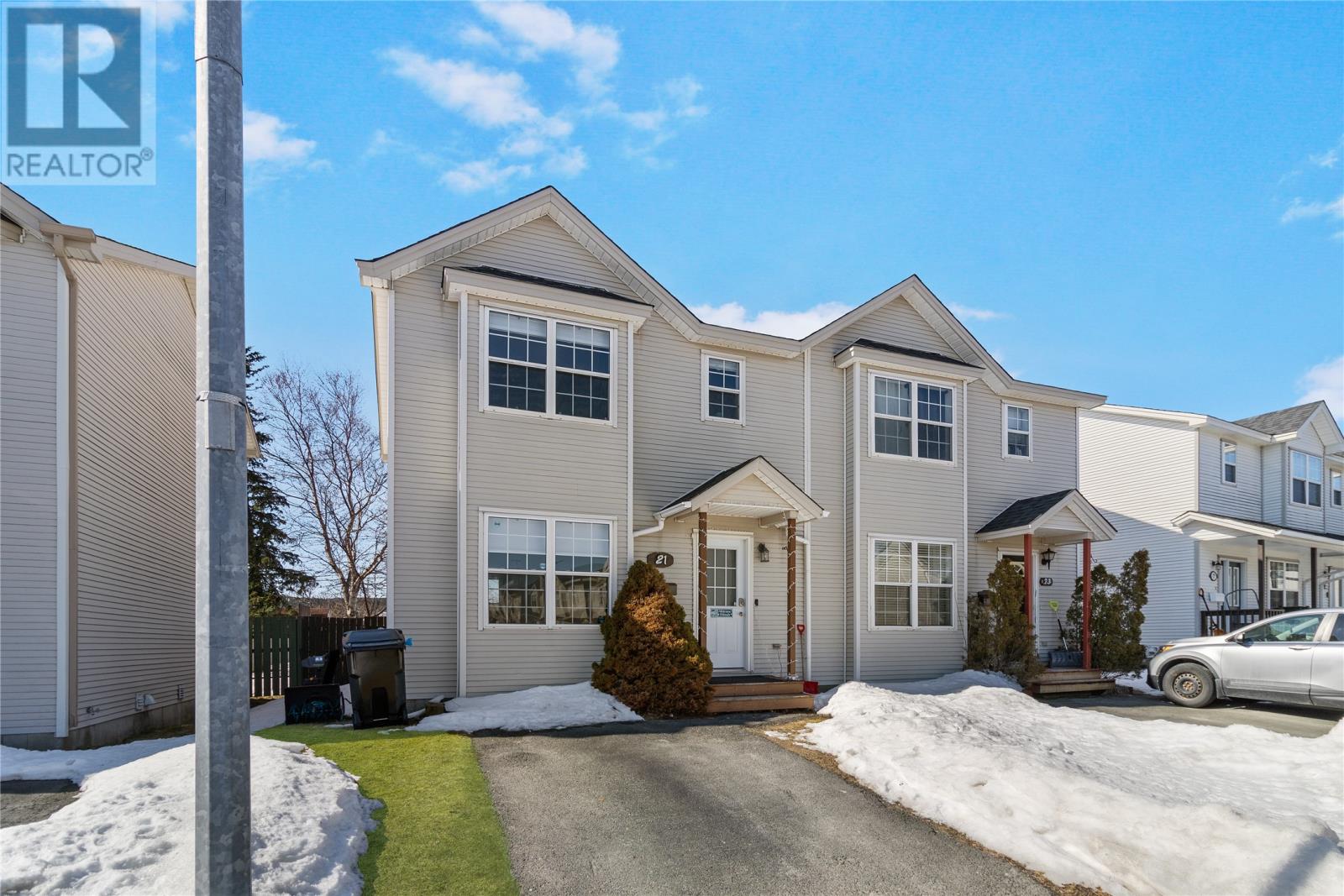 Welcome to 21 Moss Heather Driveâan exceptional opportunity for first-time buyers, growing families, or investors looking to be in one of the cityâs most convenient locations. Situated just minutes from MUN, the Avalon Mall, and the Health Science Centre, this home offers access to shopping, dining, transit, and everyday essentials. This well-maintained semi-detached duplex combines comfort and functionality throughout. The main floor features a bright and spacious kitchen with a dining area, alongside a warm and inviting living room complete with beautiful hardwood flooring. Upstairs, youâll find three generously sized bedrooms and a full bathroom, offering plenty of space for family living. The fully developed lower level adds even more versatility, with a second full bathroom, laundry area, and two additional rooms currently used as home offices. A mini split heat pump ensures year-round comfort with efficient heating in the winter and cooling in the summer. Outside, the fully fenced backyard provides privacy and a great space for kids, pets, or relaxing evenings. This property checks all the boxes with space, flexibility, and an unbeatable location. Donât miss your chance to make this fantastic home yours! (id:58149)