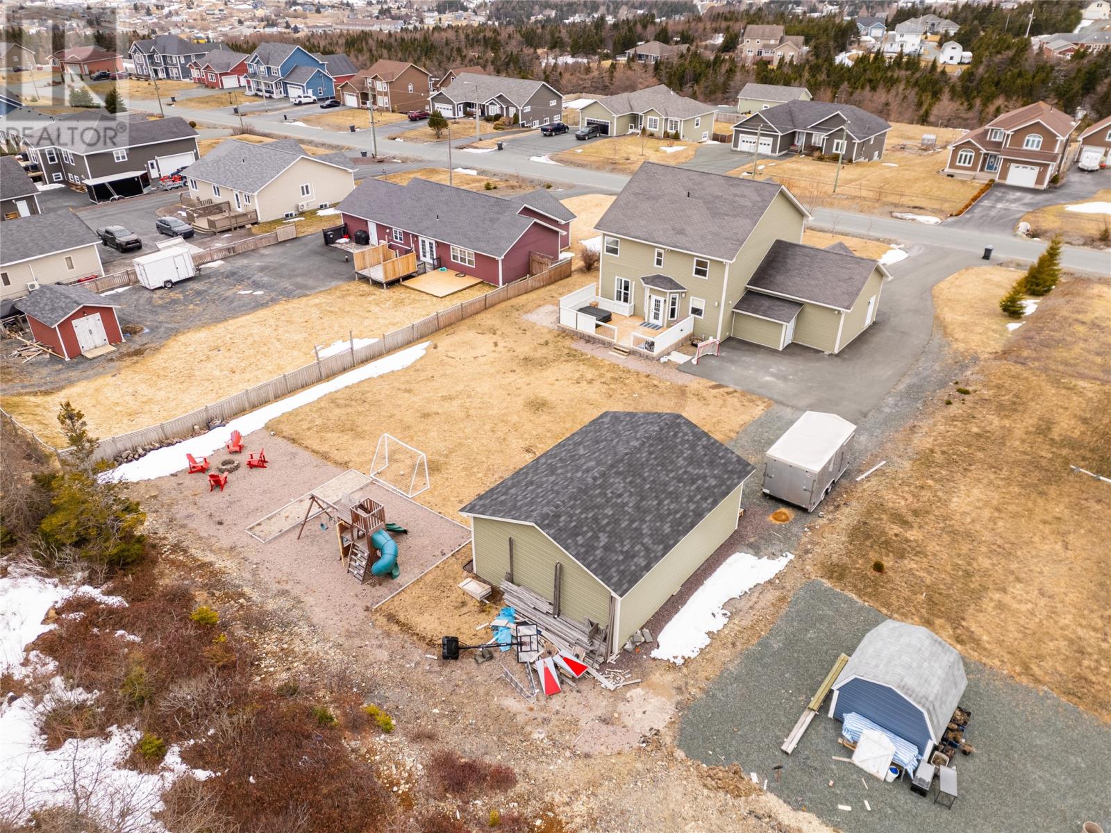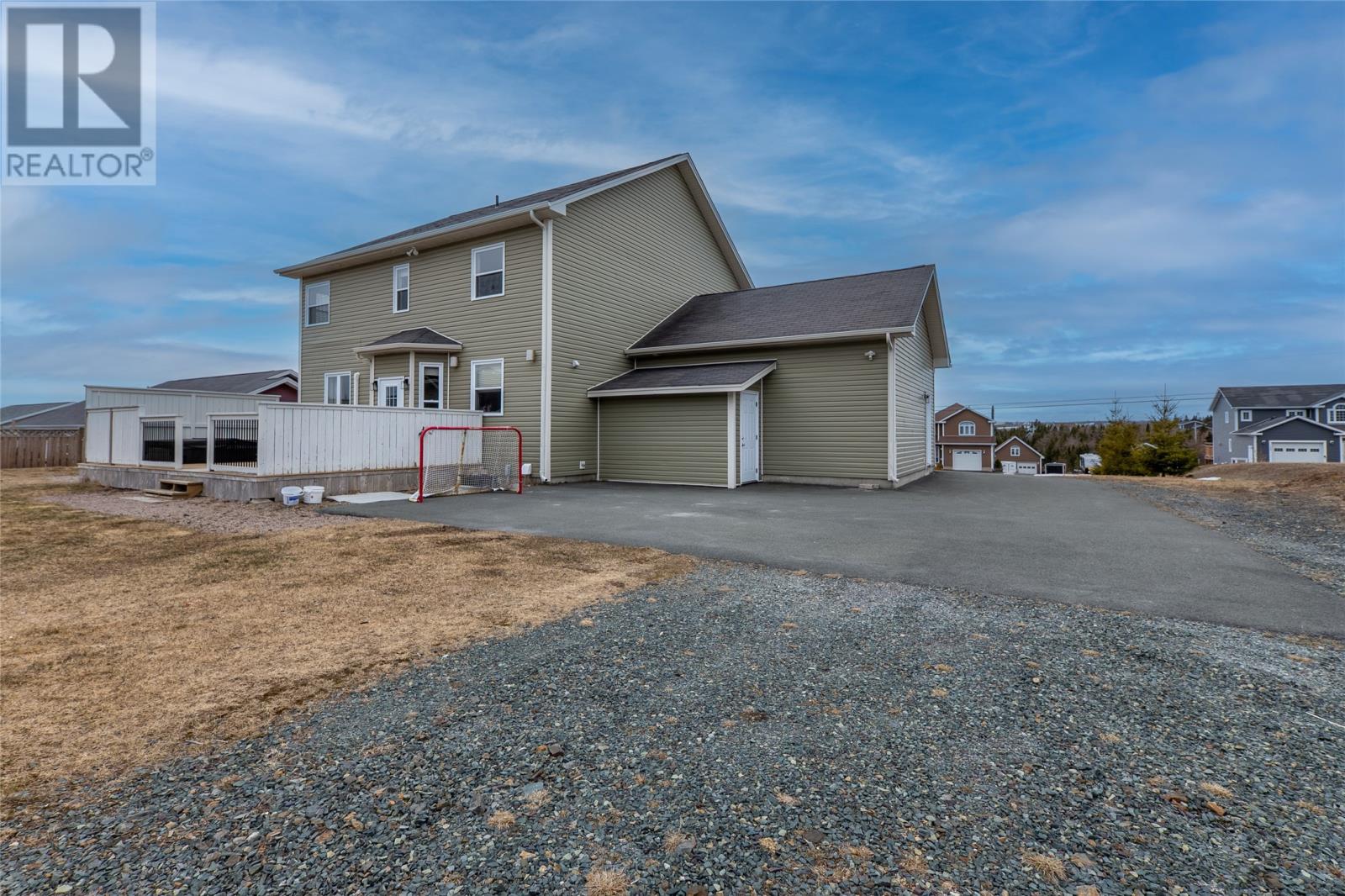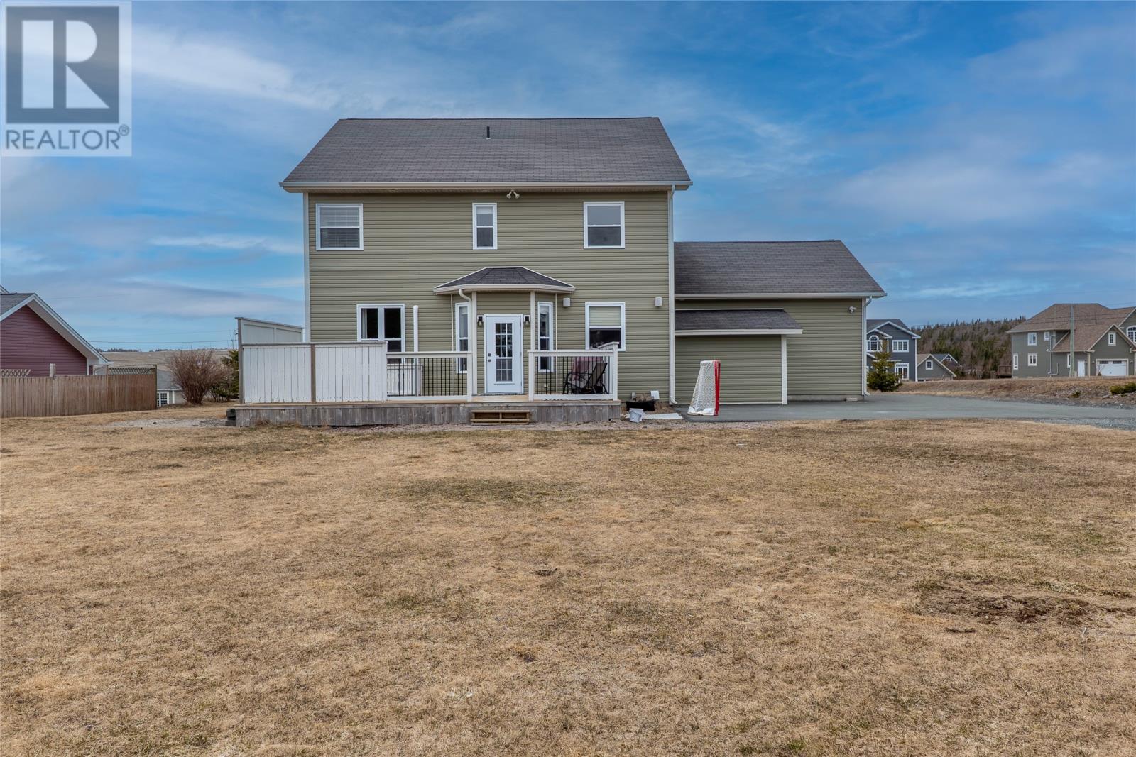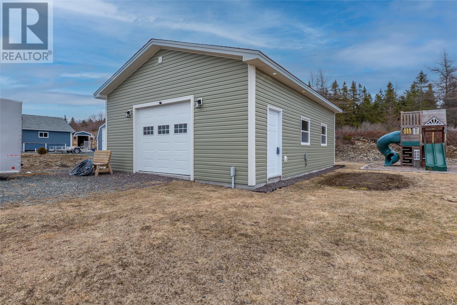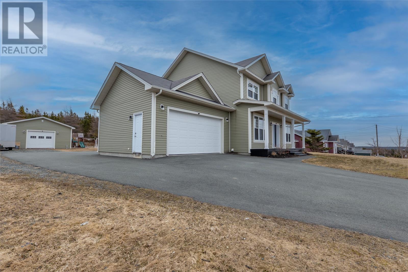 Welcome to this well-appointed 2-storey home located on family-friendly Sheldon Drive in Bay Bulls. This property offers 3 bedrooms, 2.5 bathrooms, dual mini splits, an attached 22x22 garage, and an additional 24x32 detached garage with 10 foot ceilingsâideal for storage, recreational vehicles, or workshop use. The main floor features a bright foyer with open staircase, 9-foot ceilings, and a functional open-concept layout. The kitchen, dining, and living areas flow seamlessly and are highlighted by an electric fireplace. An additional room off the main living area provides flexibility for a formal dining space, den, or entertainment room. Also on the main level are a dedicated office space, half bathroom, and laundry room. Upstairs includes two spacious secondary bedrooms, a full main bathroom, and a large primary suite complete with his & her closets and a private ensuite featuring a corner Jacuzzi tub and separate shower. The backyard is designed for outdoor enjoyment with direct access to nearby trails, making it ideal for ATV or snowmobile enthusiasts. The backyard is also perfect for a winter skating rink, where the parents can watch from their hot tub which was purchased new in 2022, and has capacity for seven adults. Situated in a desirable, family-oriented neighbourhood, this home combines functional interior living space with excellent outdoor lifestyle opportunities! (id:58149)