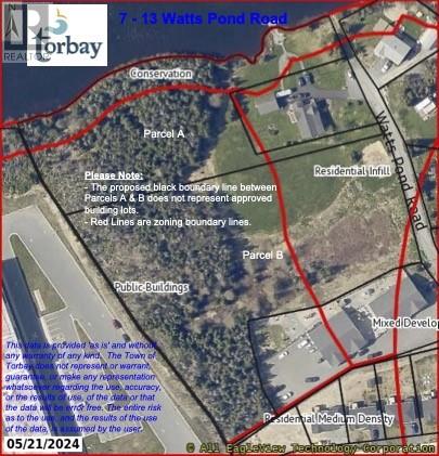 Approx. 5-acre pond-front parcel on Watts Pond Road in Torbay offering excellent development potential. The property features ~67 ft of road frontage and 258 ft of water frontage on Watts Pond, with relatively flat terrain and great access. Residential zoning at the road allows for a private home or possible subdivision, while the wooded rear portion borders Juniper Ridge Intermediate School, offering privacy and potential for community-oriented use. With mixed zoning, this property offers flexibility for a variety of uses, making it an attractive option for investors, developers, or those seeking a large, private lot in a picturesque setting. (Note: Survey shows Parcel A & B but lot has not been subdivide). (id:58149)